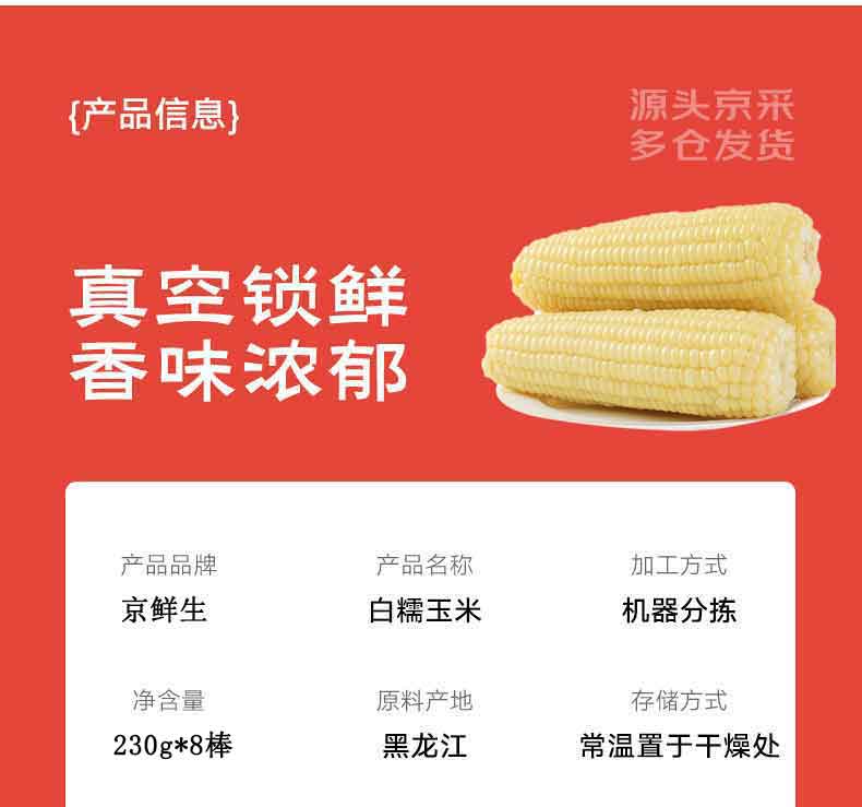 京鲜生 东北白糯玉米230g*8棒 新鲜甜糯玉米棒真空包装粘玉米 源头直发