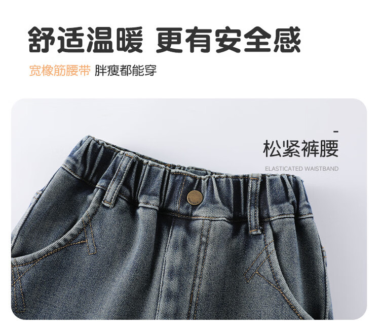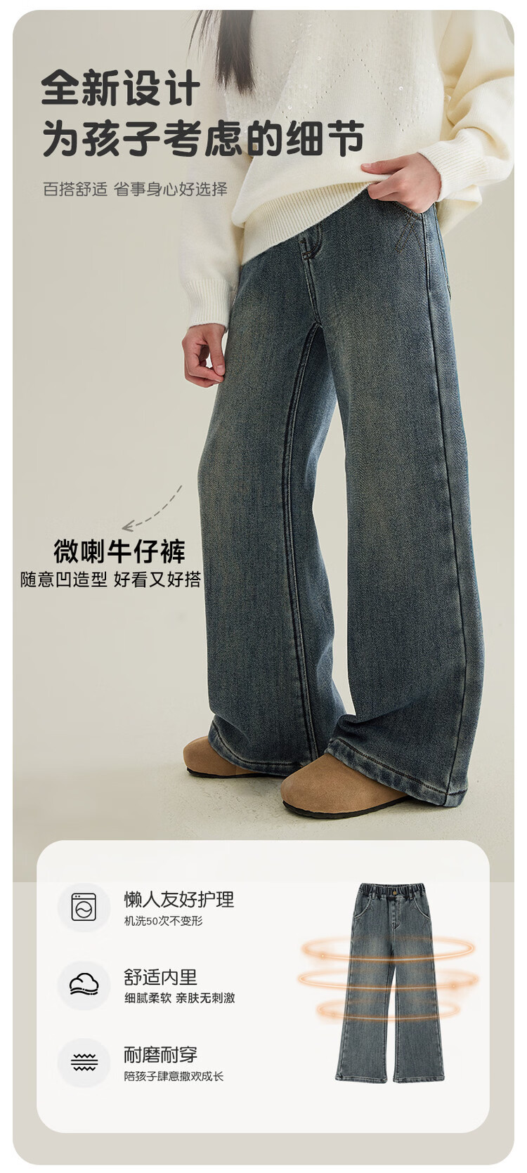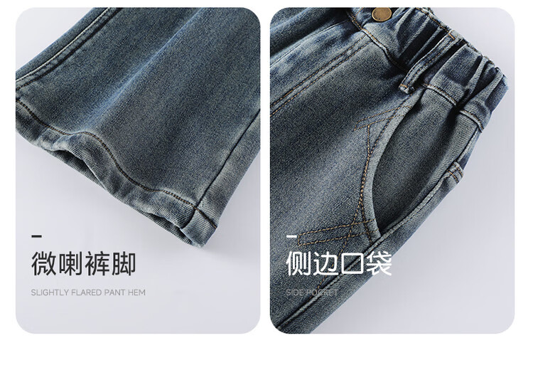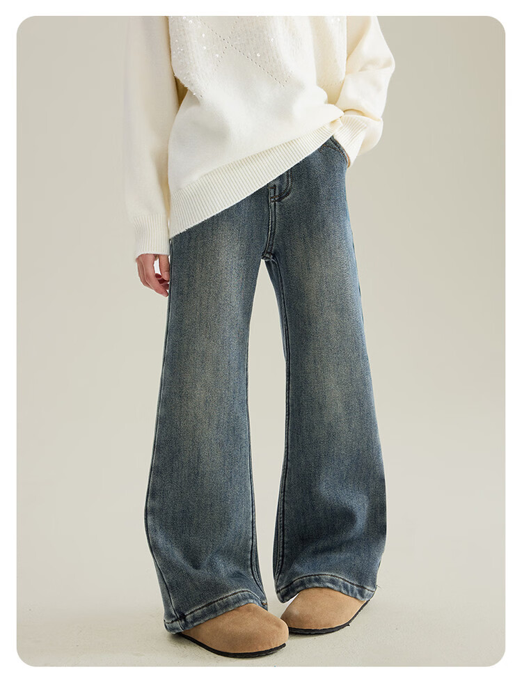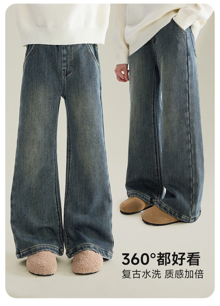 媛媛公主女童加绒牛仔裤冬新款儿童裤子中大童加厚阔腿裤百搭保暖直筒长裤 牛仔蓝 110