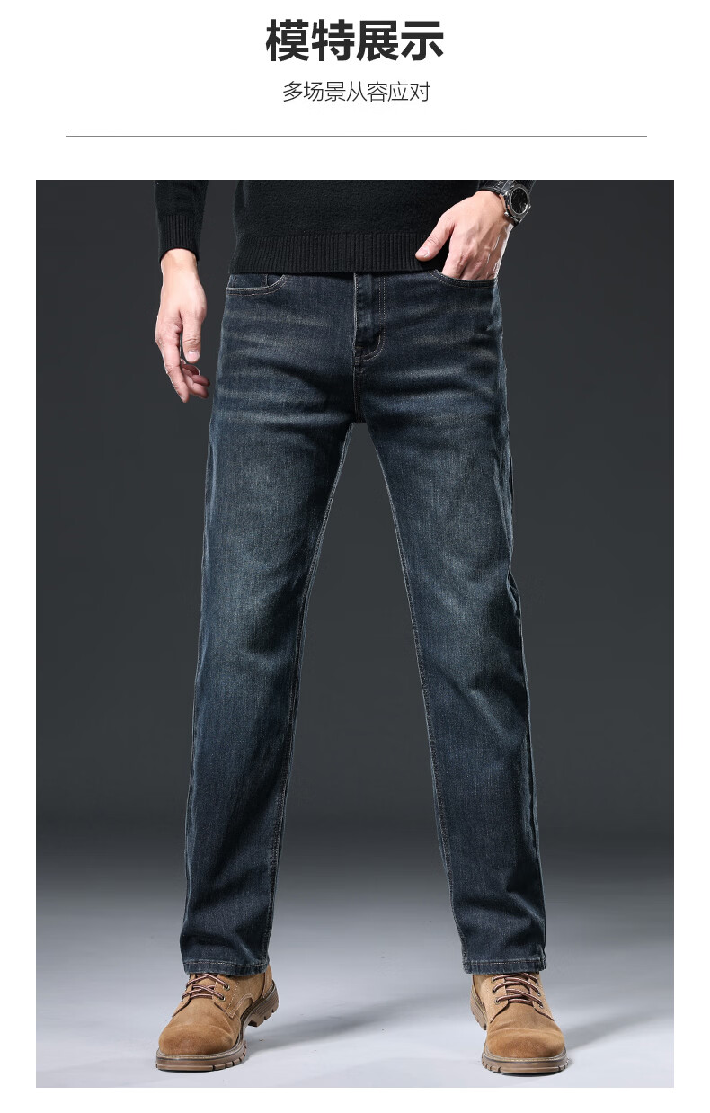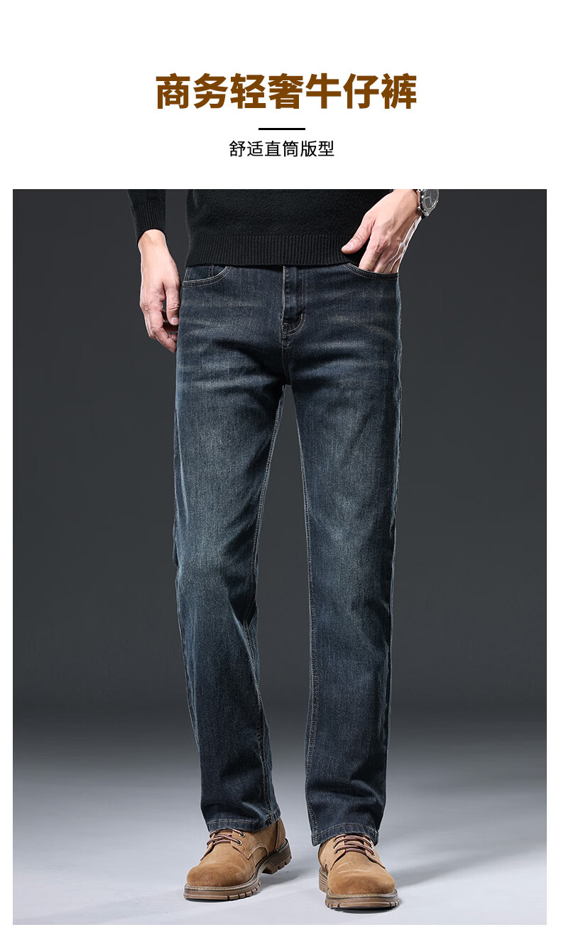 真维斯(Jeanswest)牛仔裤男士宽松直筒裤男2026新款秋冬季中年爸爸加绒加厚裤子男 水墨蓝【品牌专版】 29
