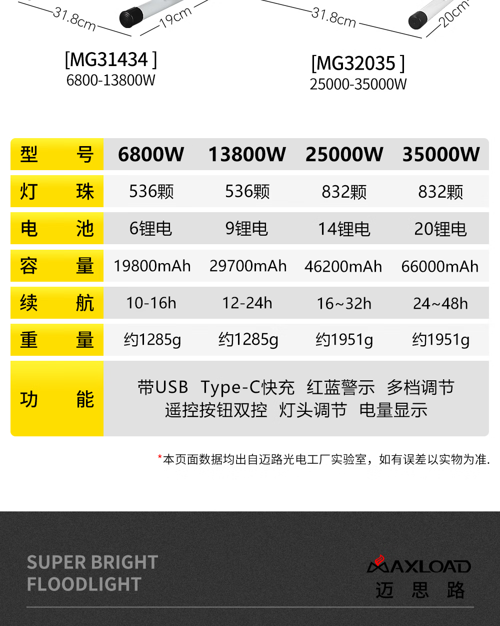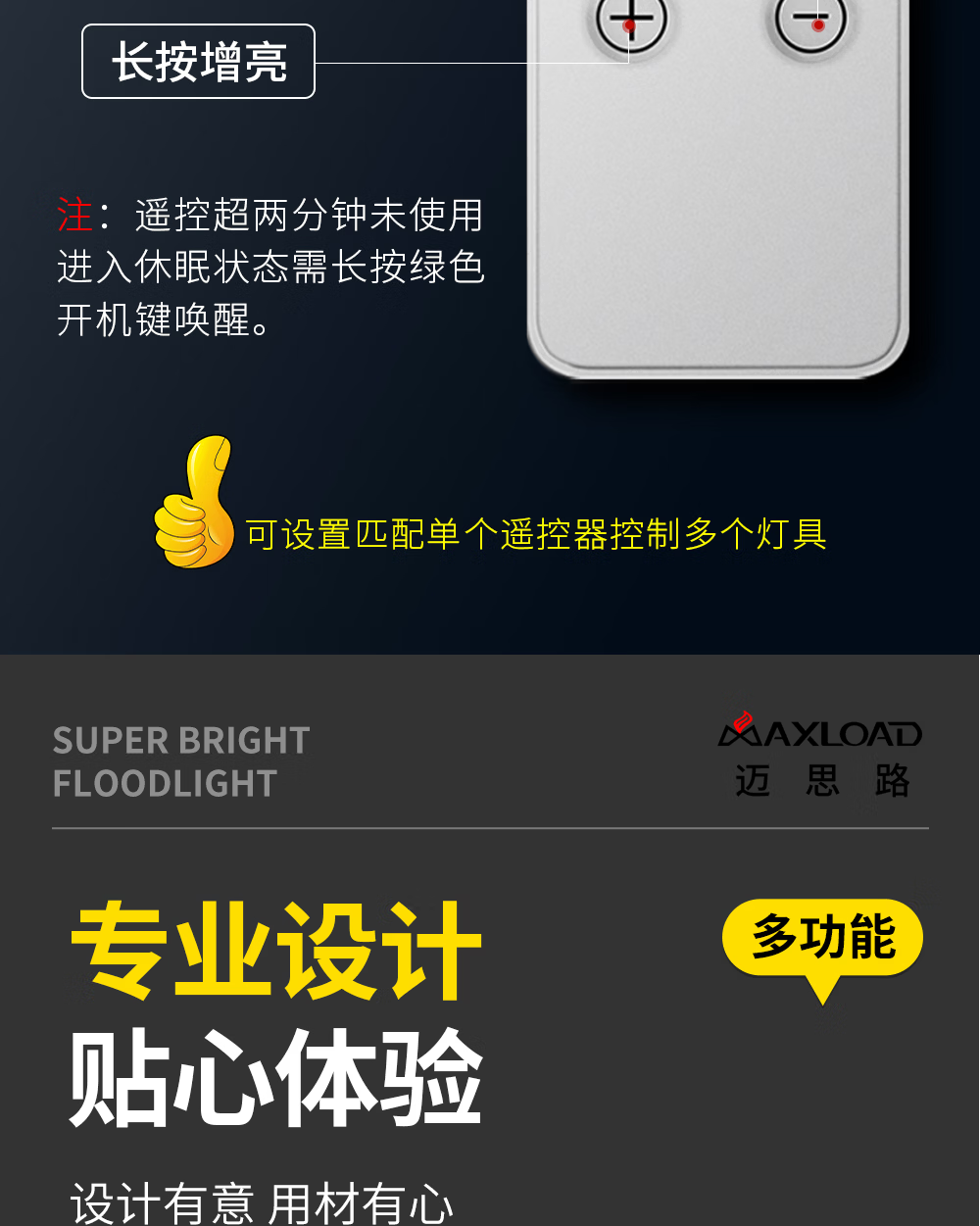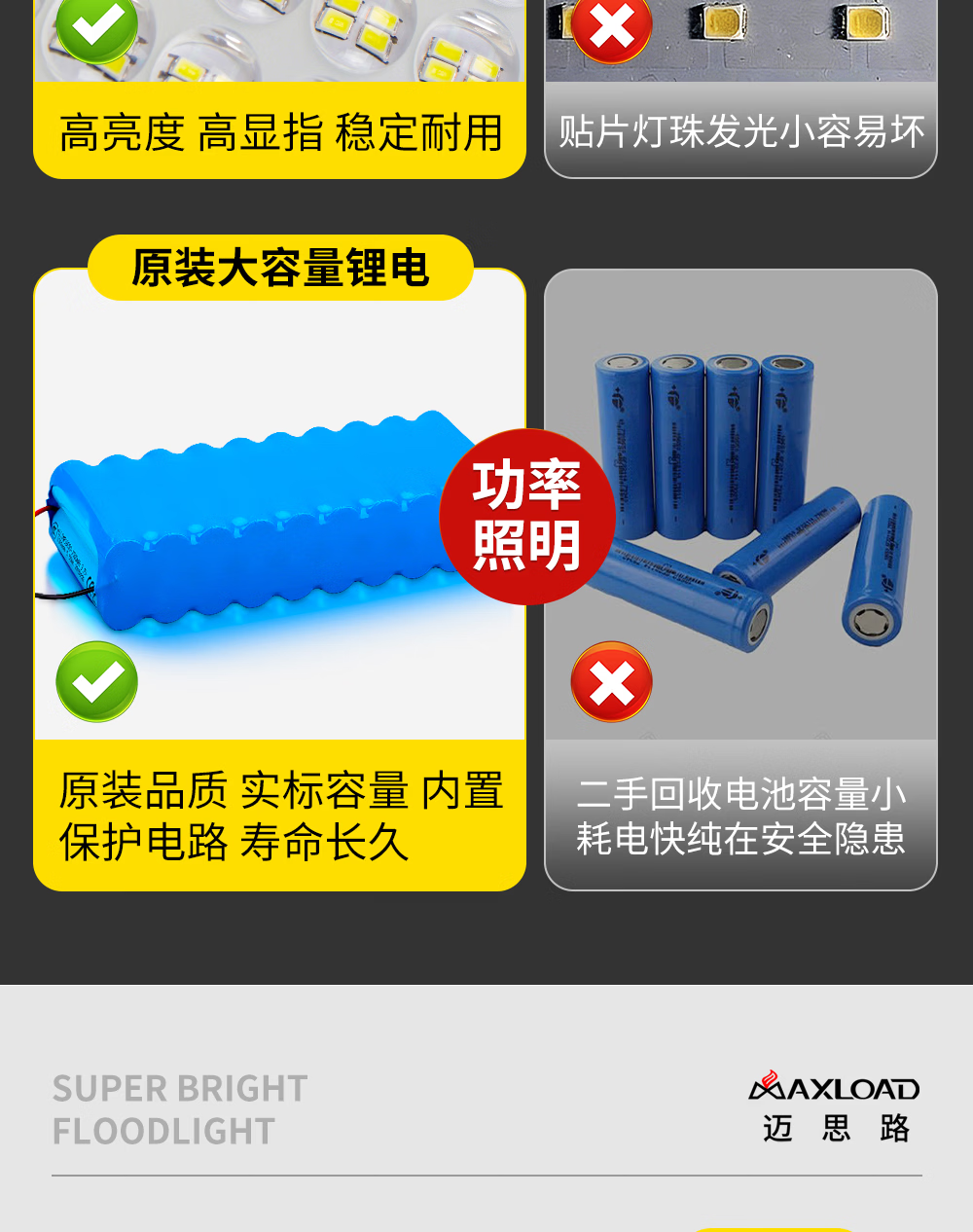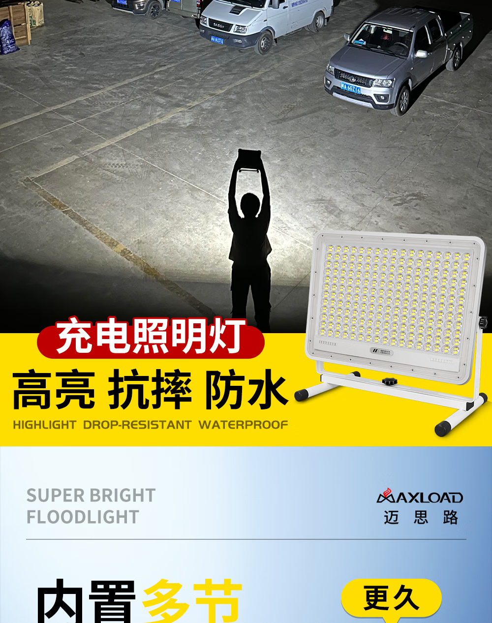 迈思路(MAX LOAD)LED充电户外照明灯超亮强光移动便携式露营野营灯防水摆摊投光灯 二锂电1500W灯珠168颗 续航6-8H