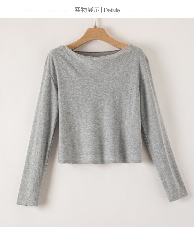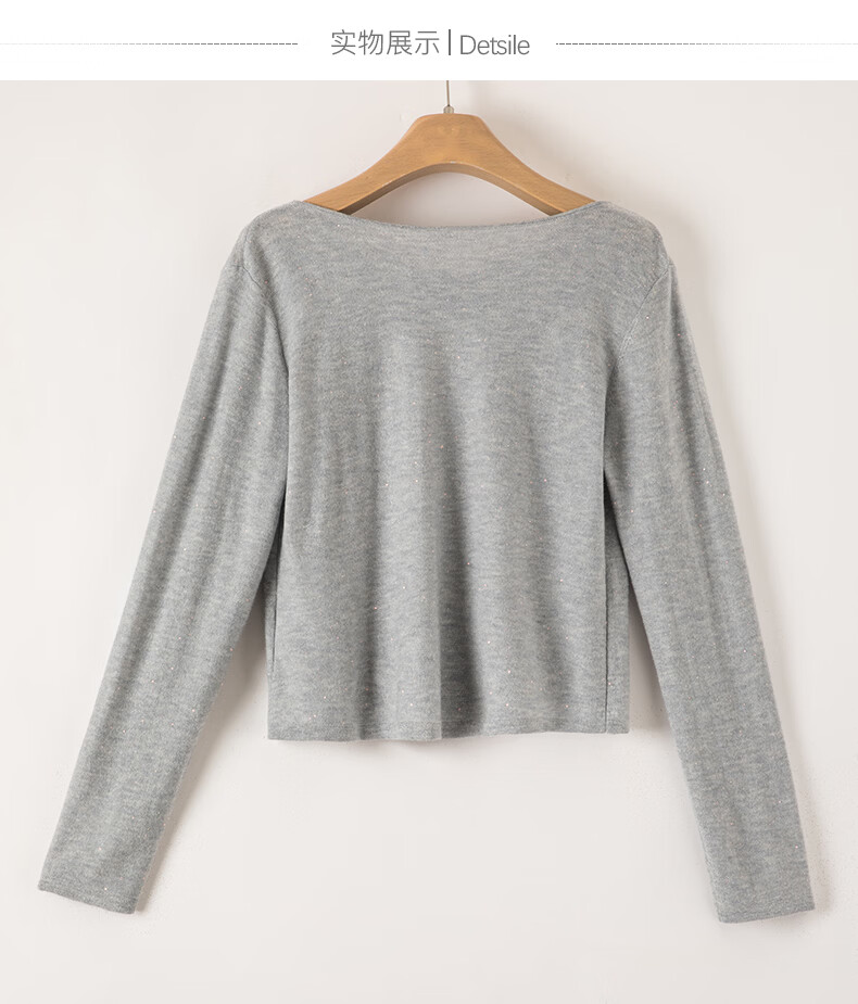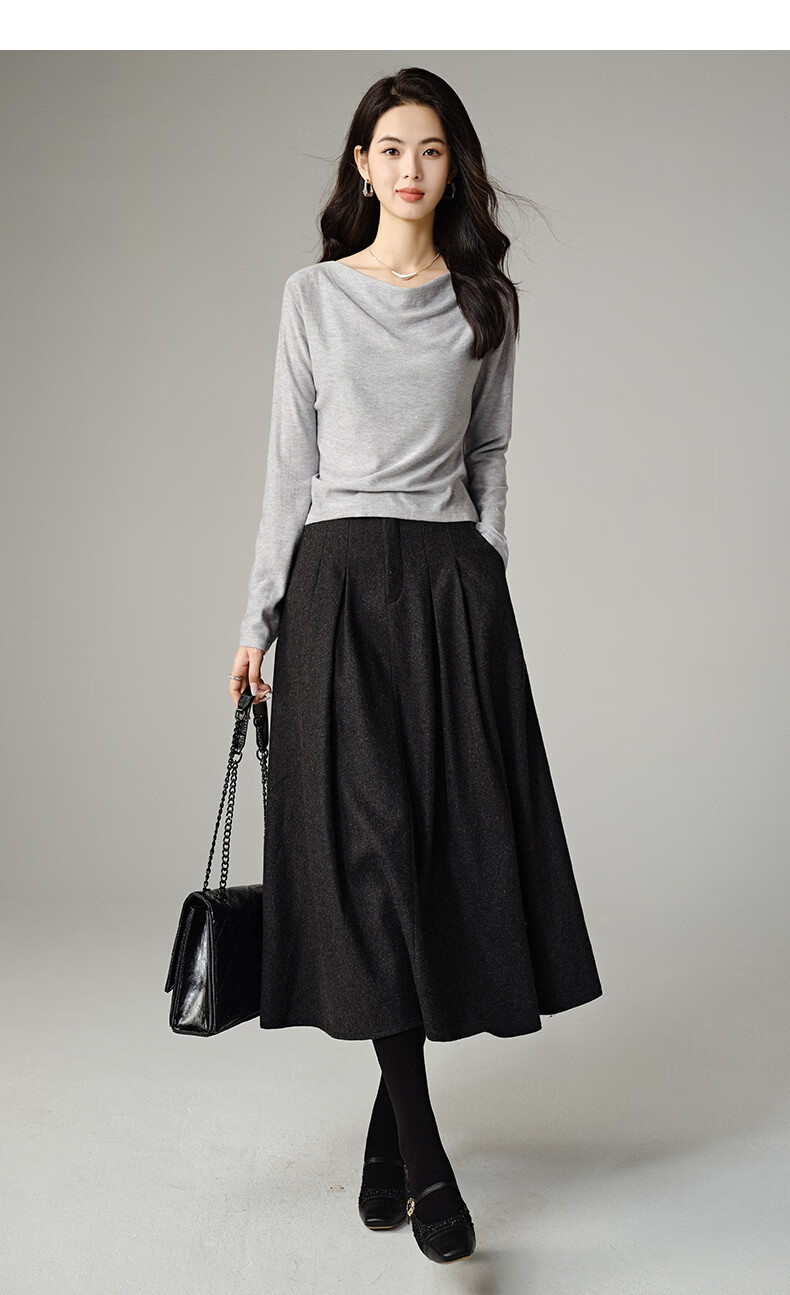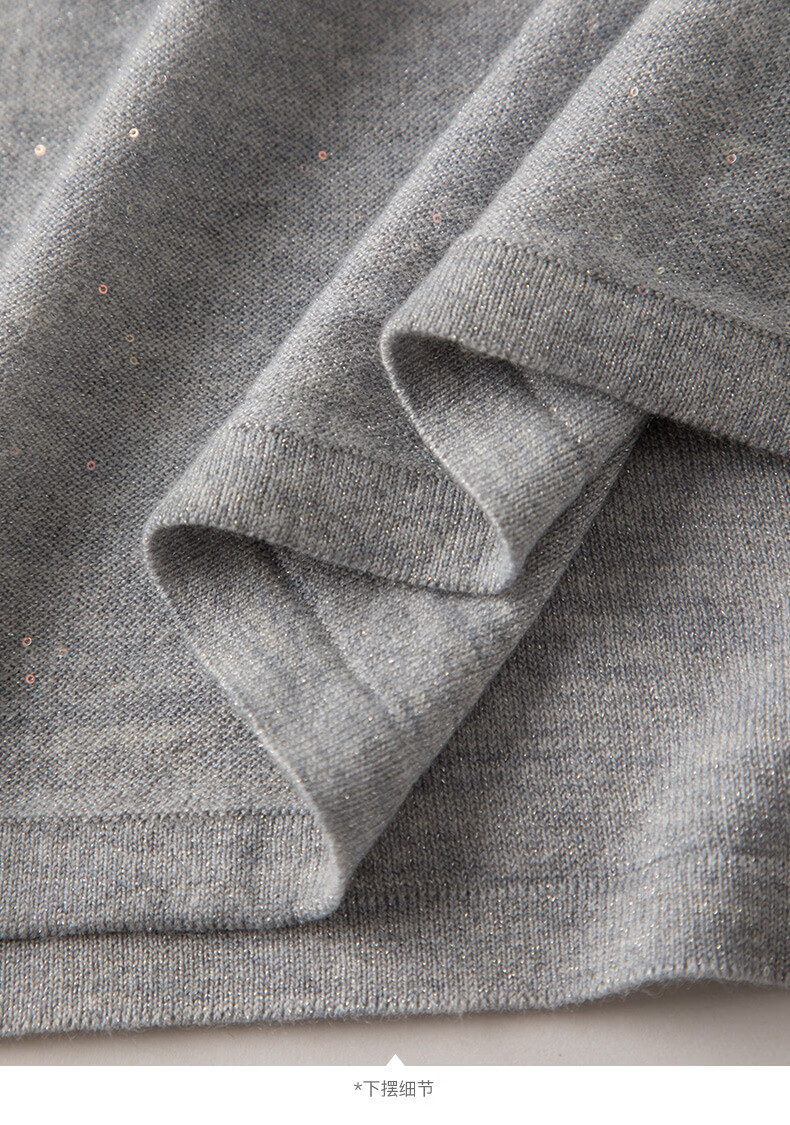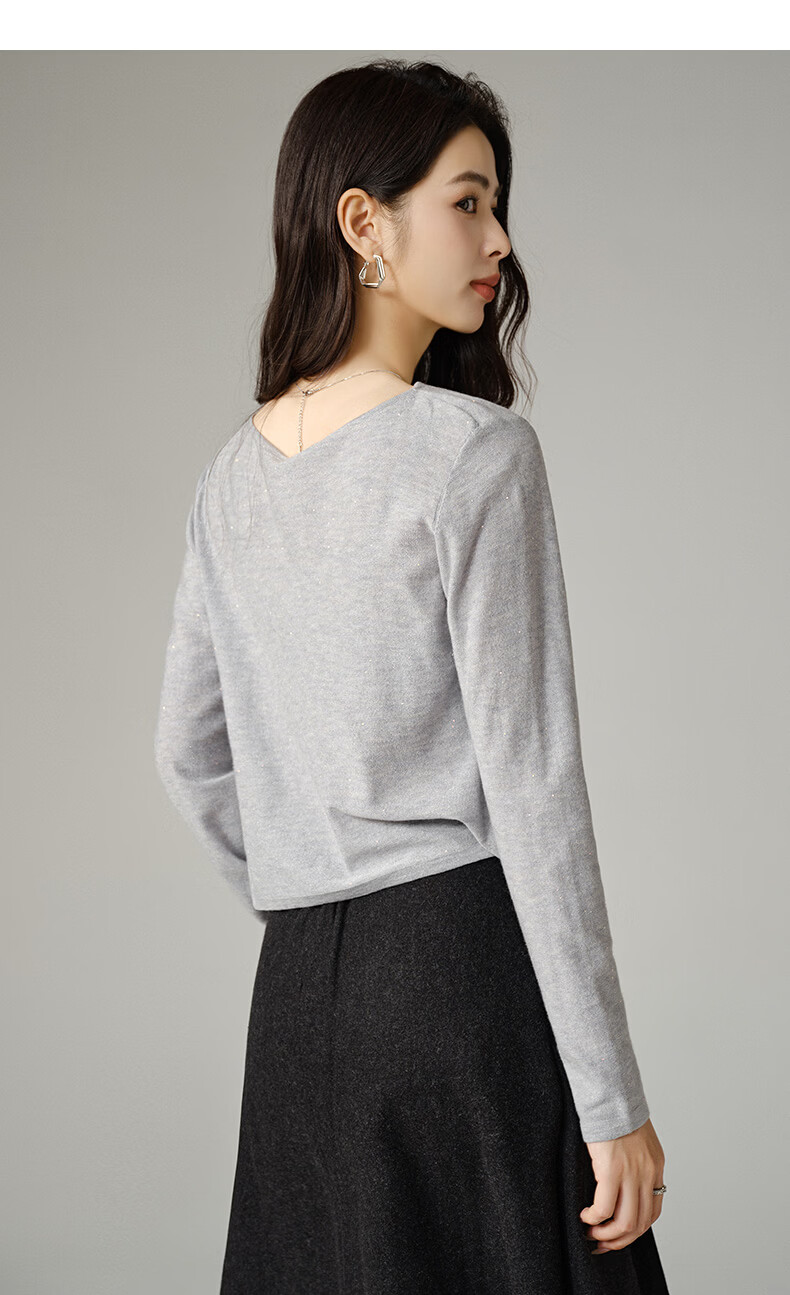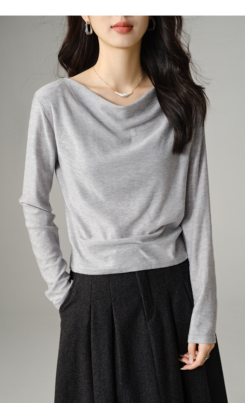 晚白【断码清仓】2026春款时尚优雅荡领毛衣亲肤柔软修身舒适针织衫女 灰色 M
