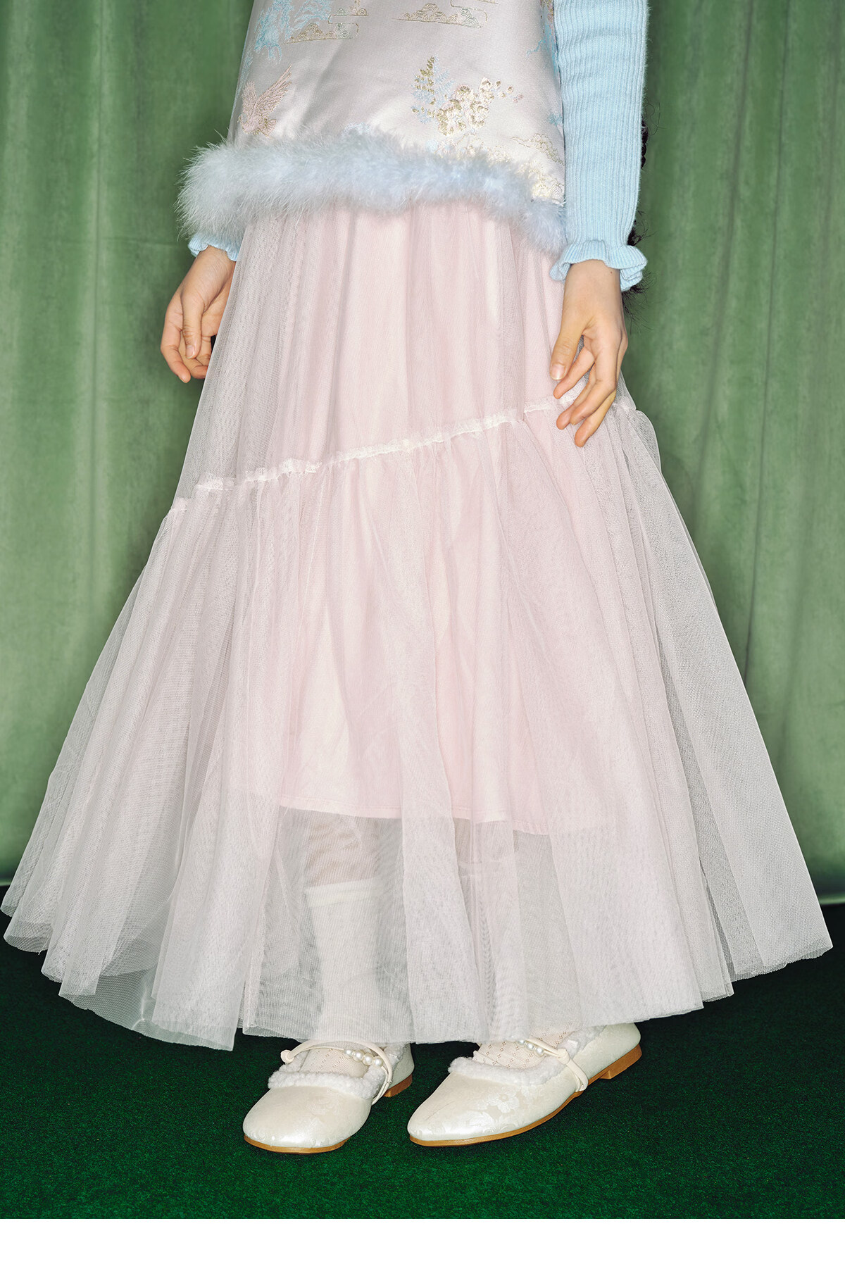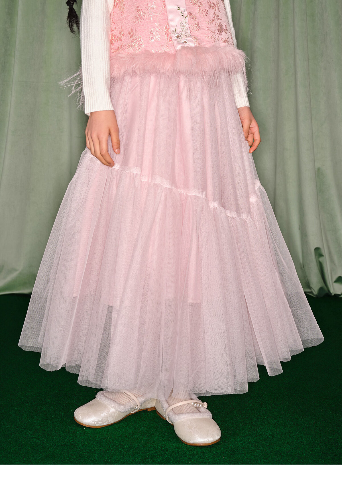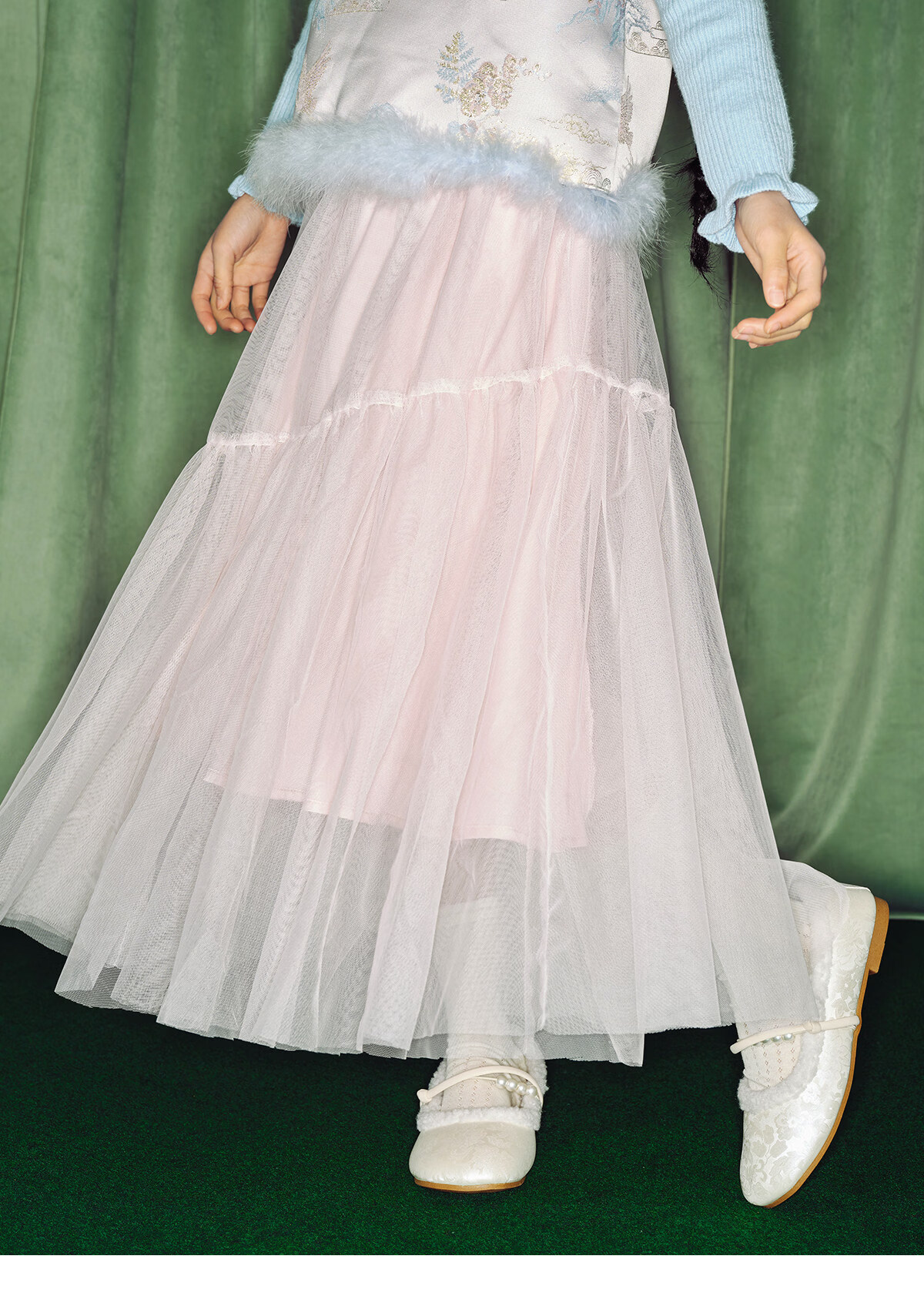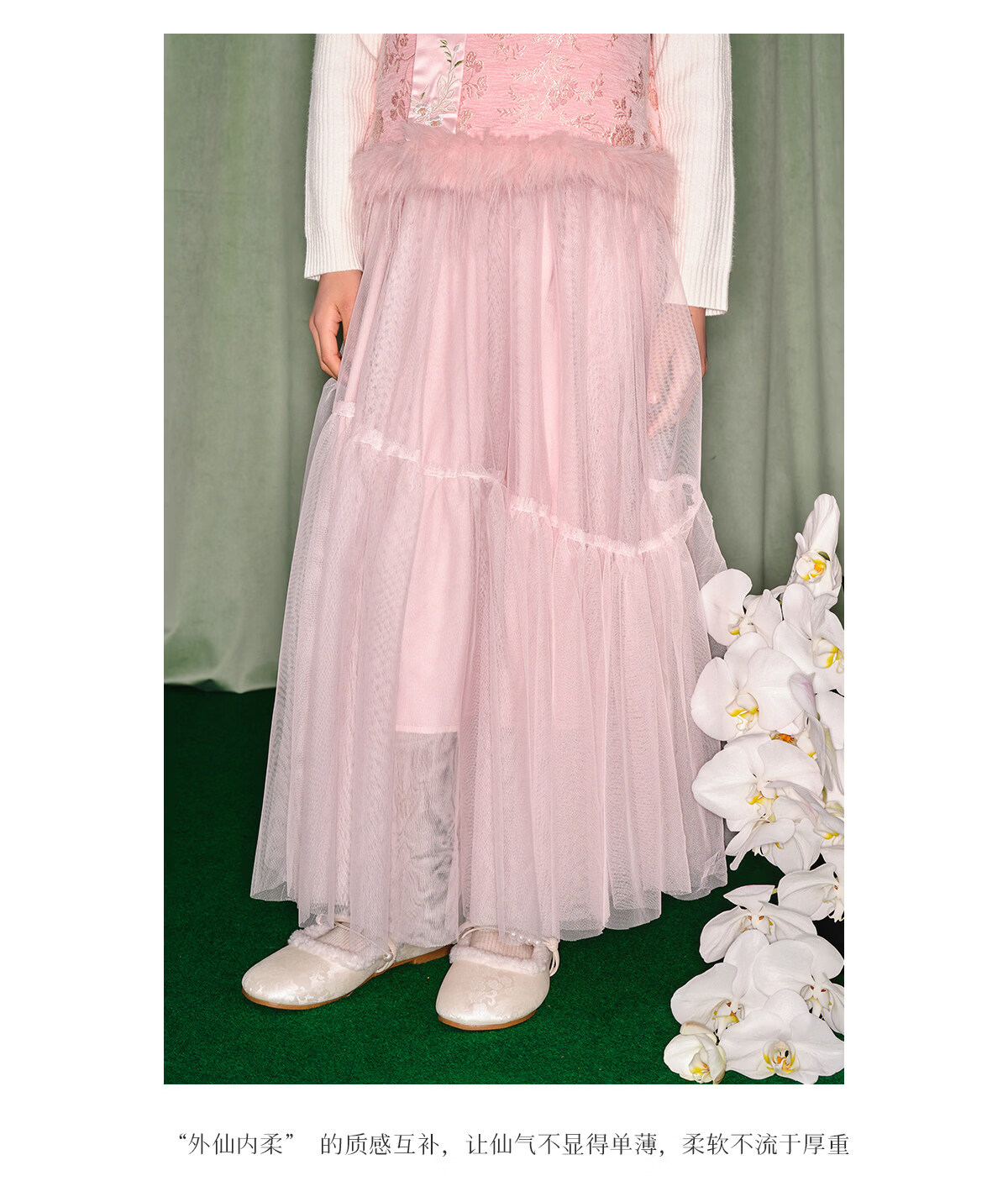 淘町女童半身裙女童秋冬新款A字长裙纱裙大童女孩公主风国风裙子 粉色 流动网纱仙女裙 170 /L|105-120斤