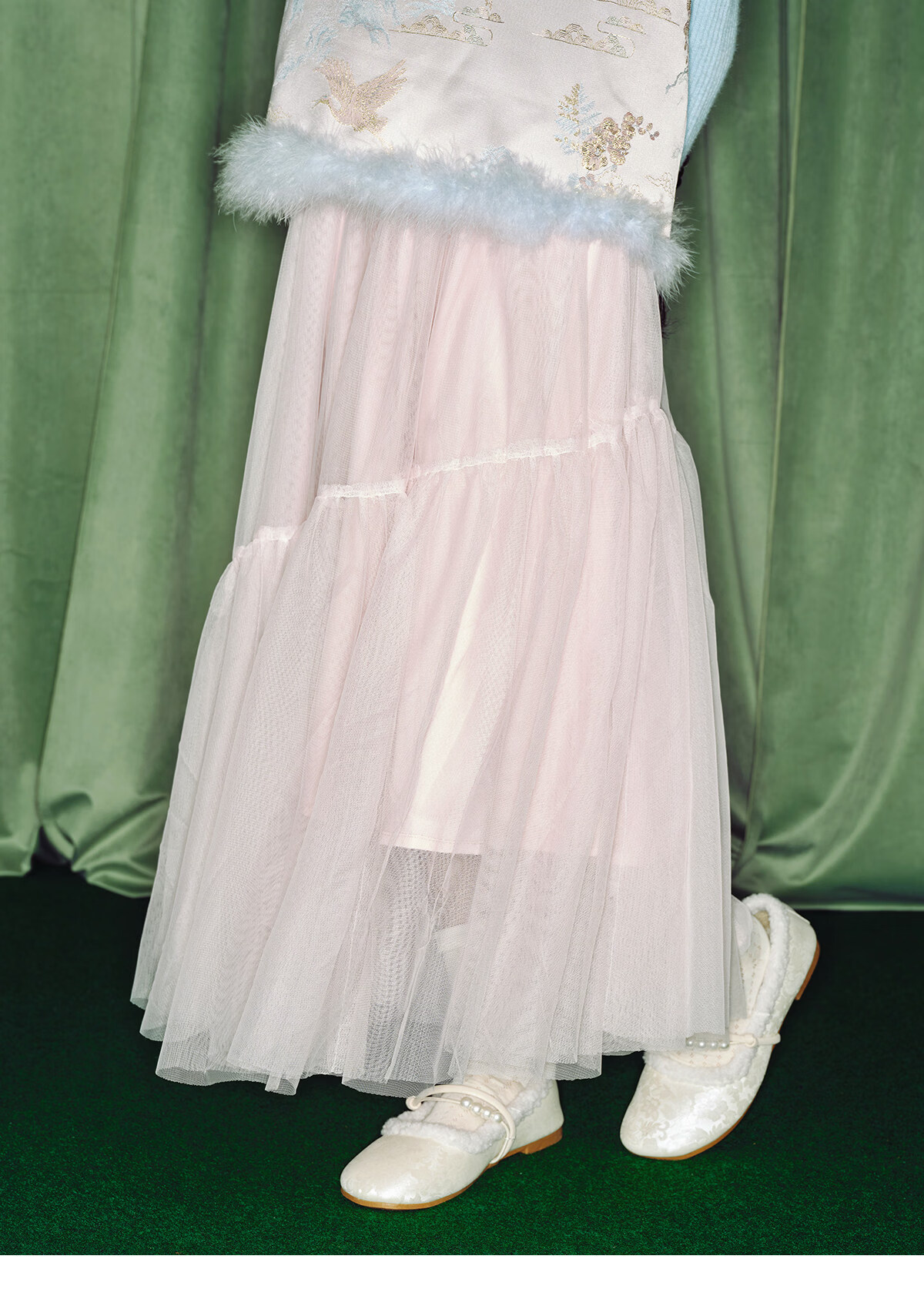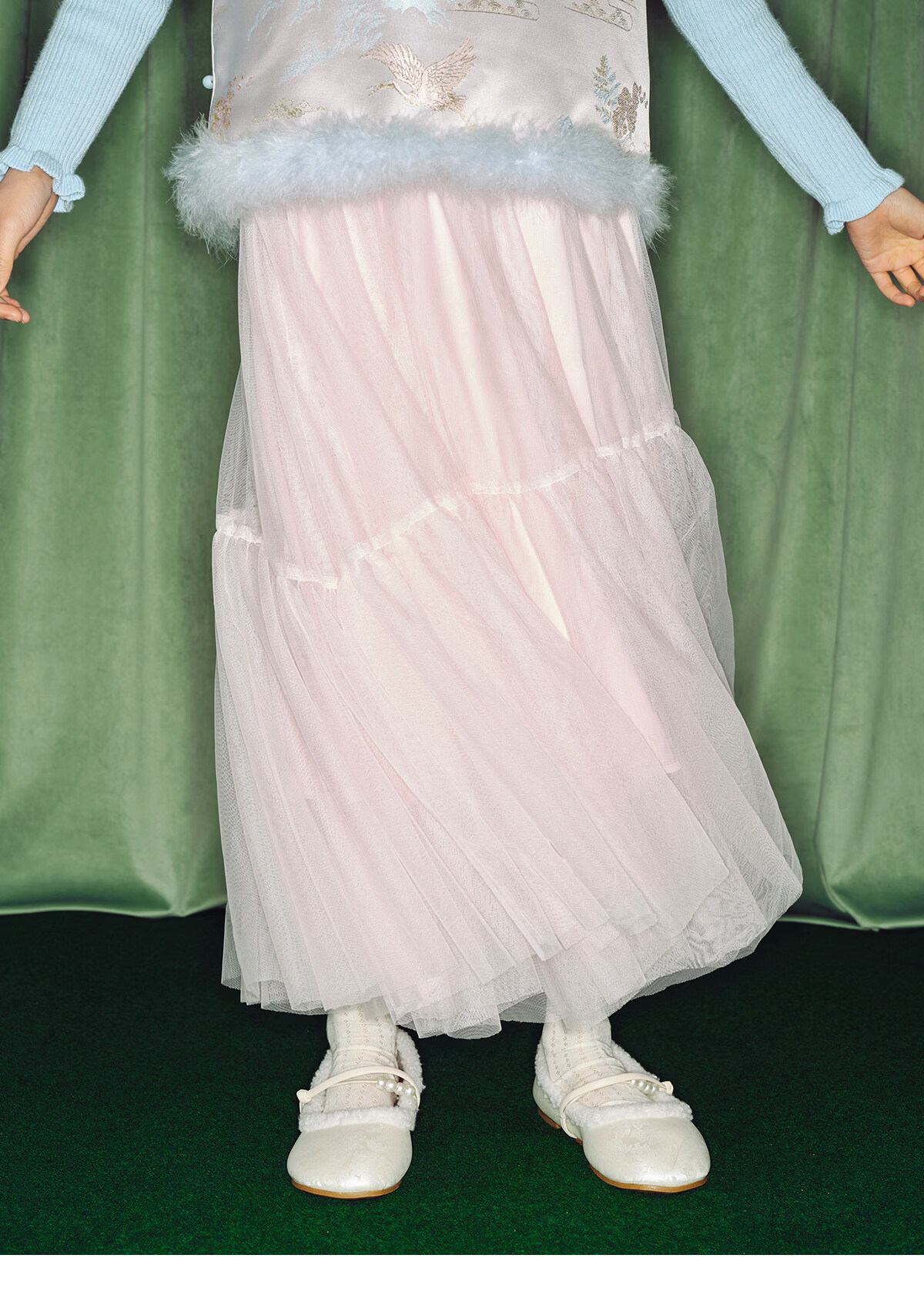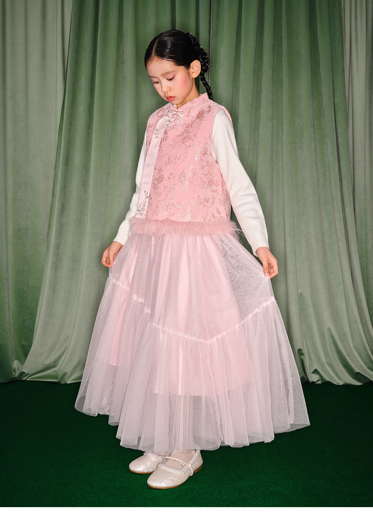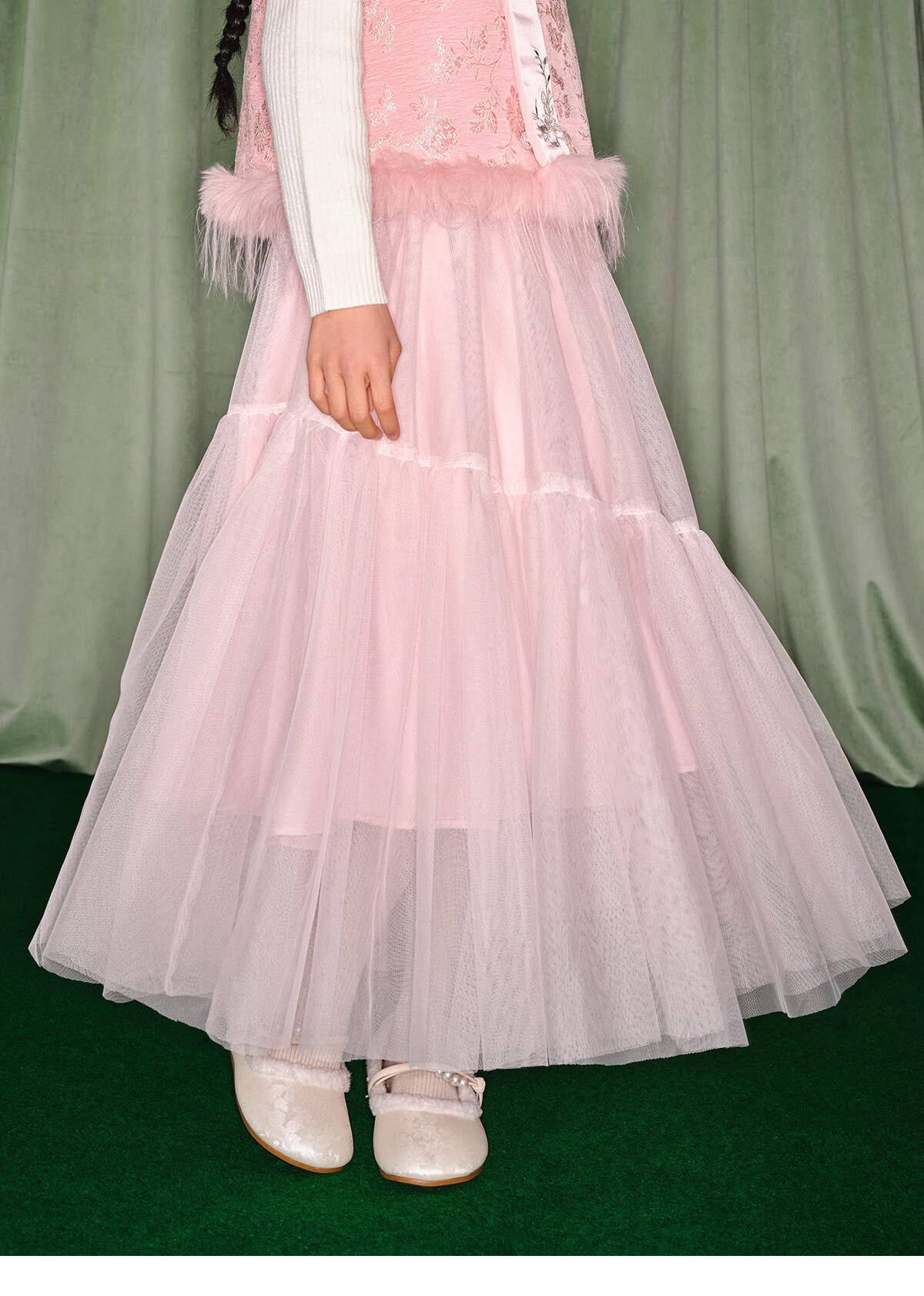 淘町女童半身裙女童秋冬新款A字长裙纱裙大童女孩公主风国风裙子 粉色 流动网纱仙女裙 170 /L|105-120斤