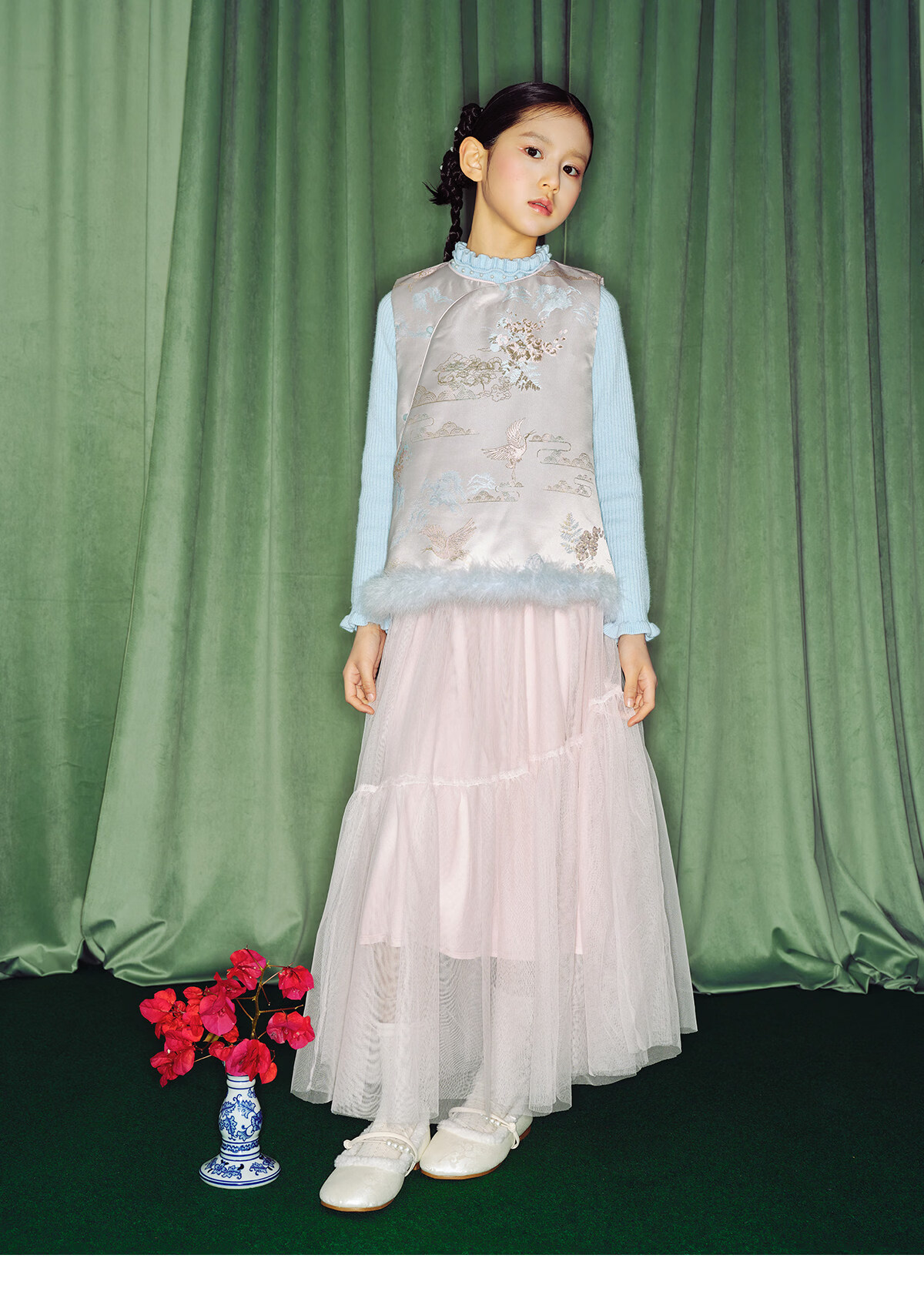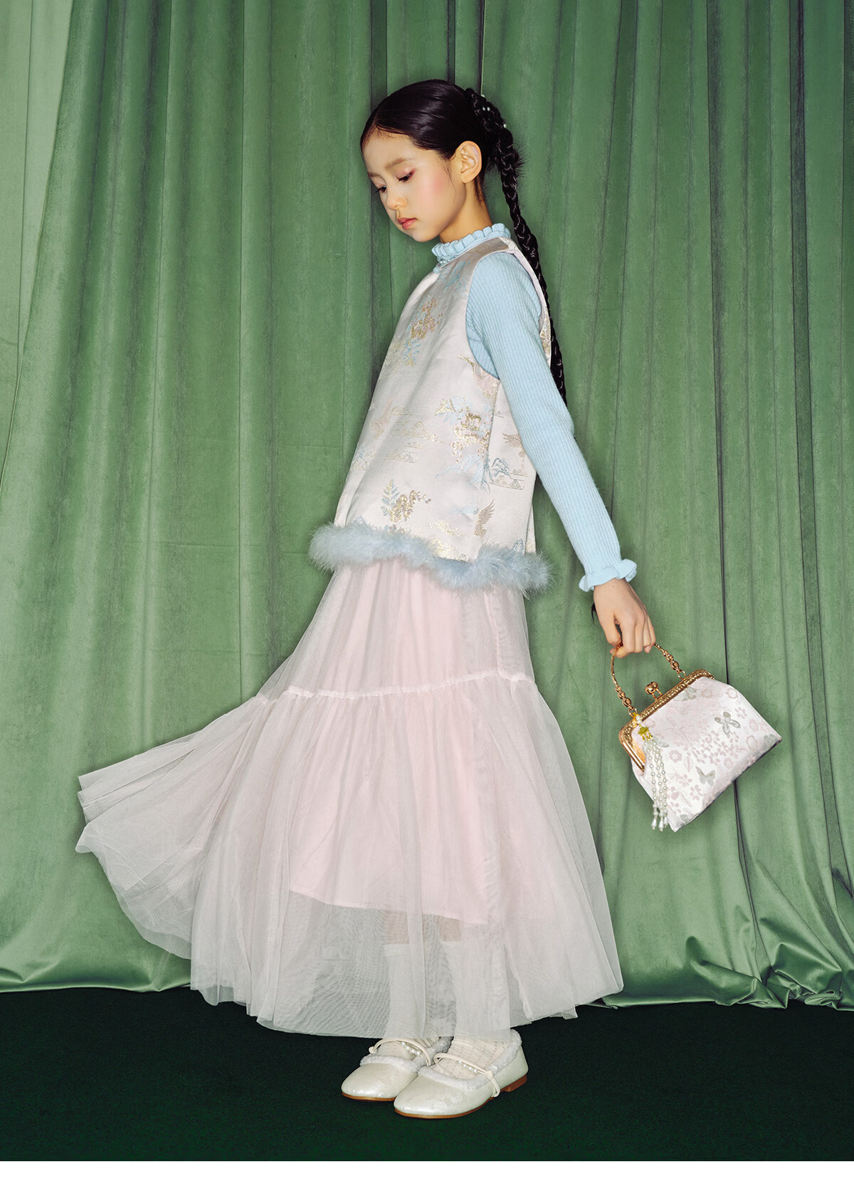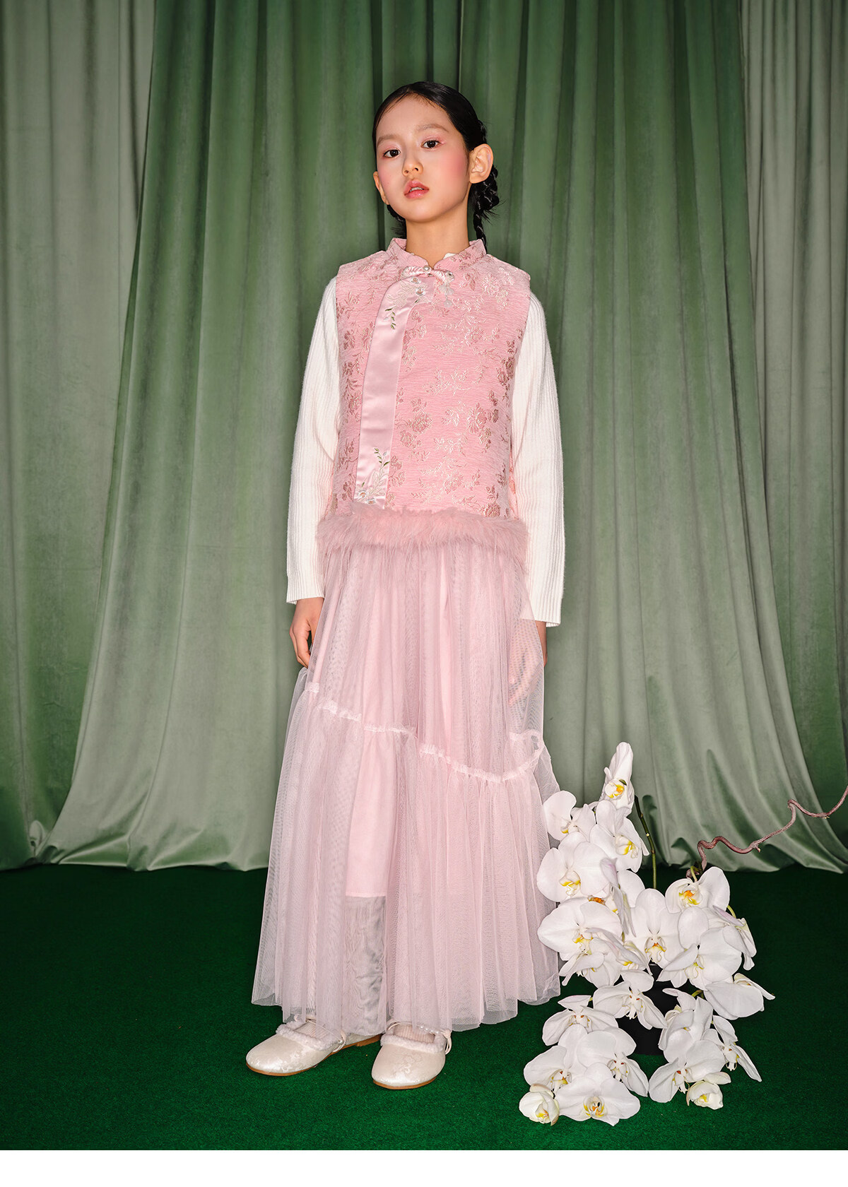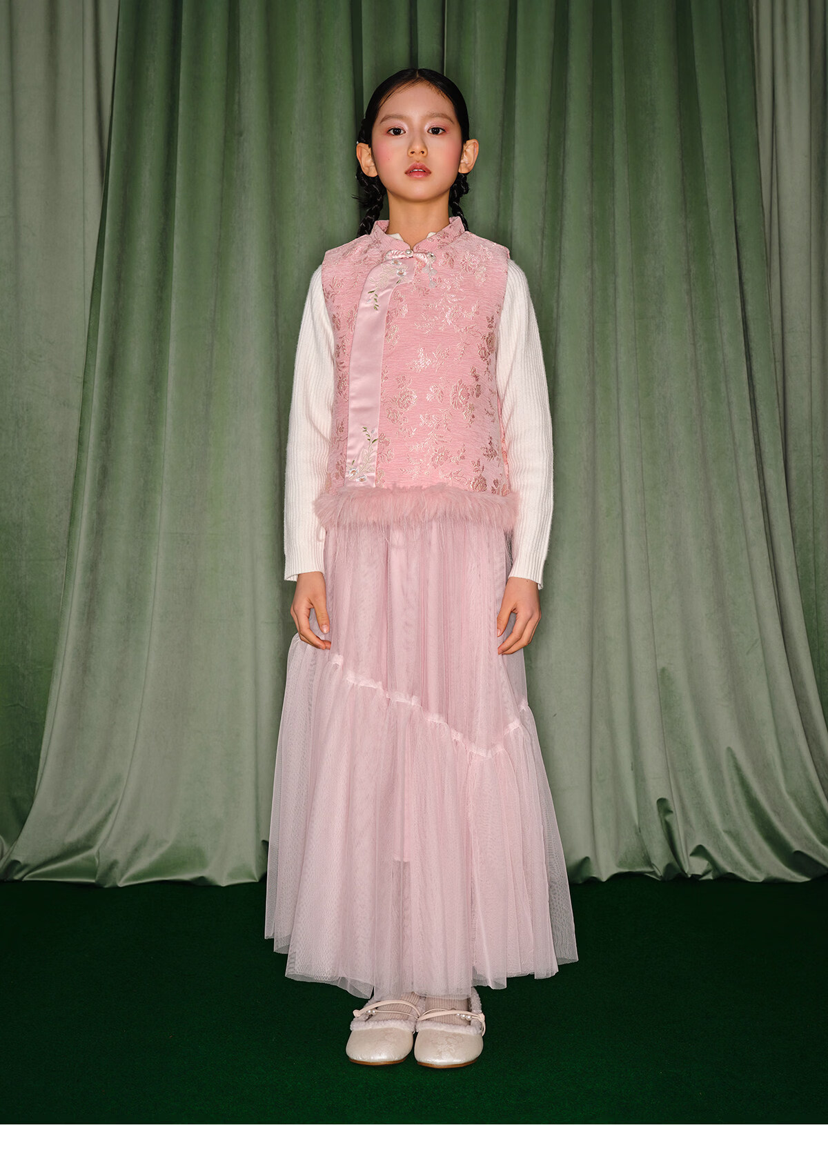 淘町女童半身裙女童秋冬新款A字长裙纱裙大童女孩公主风国风裙子 粉色 流动网纱仙女裙 170 /L|105-120斤