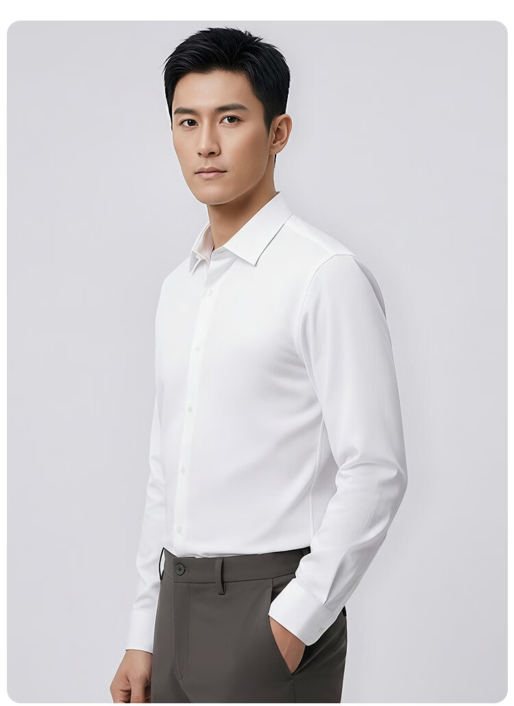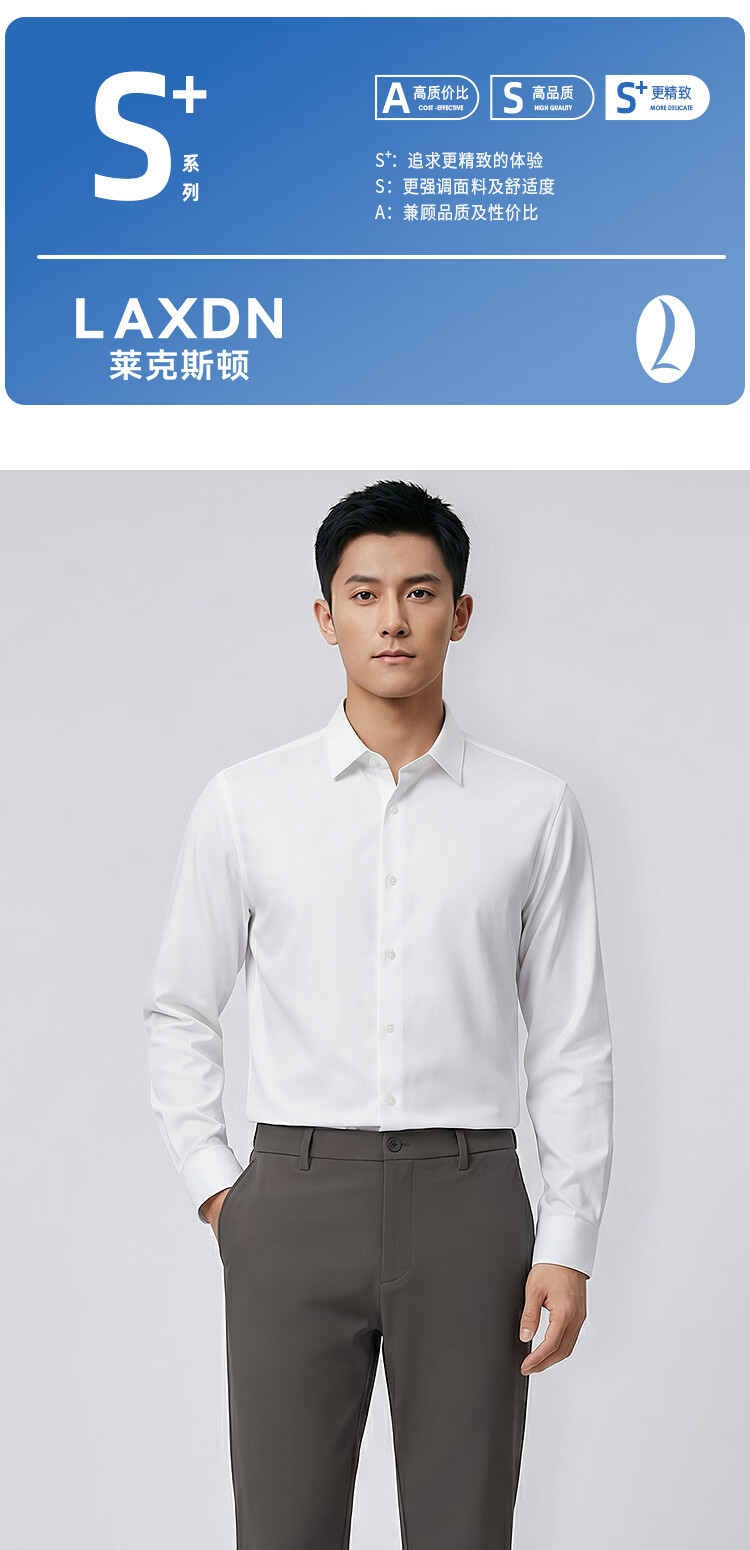 莱克斯顿(laxdn)长袖衬衫男春秋正装纯棉免烫工艺抗皱易打理柔和亲肤商务衬衫男 本白 S