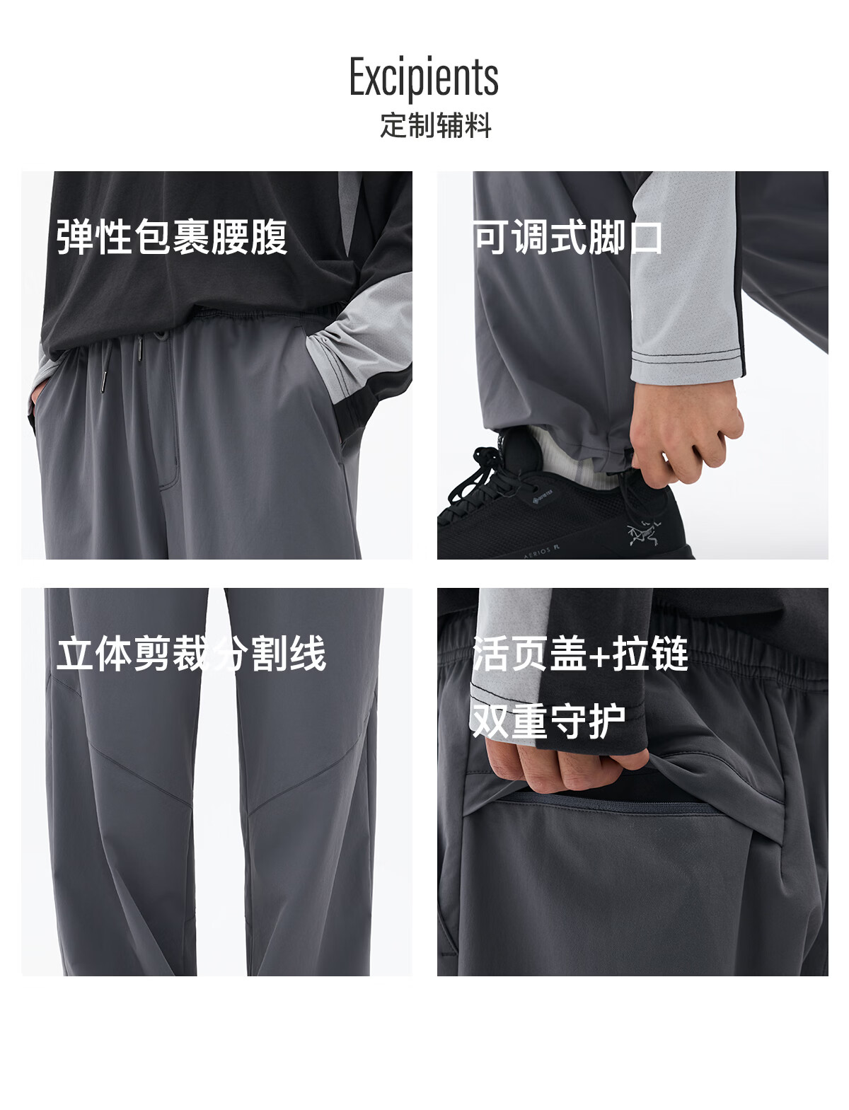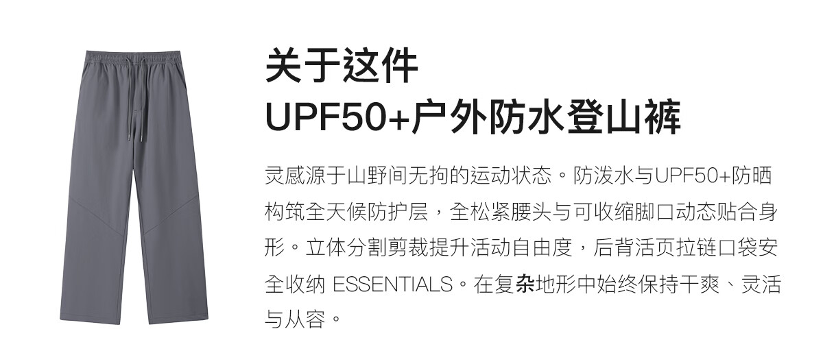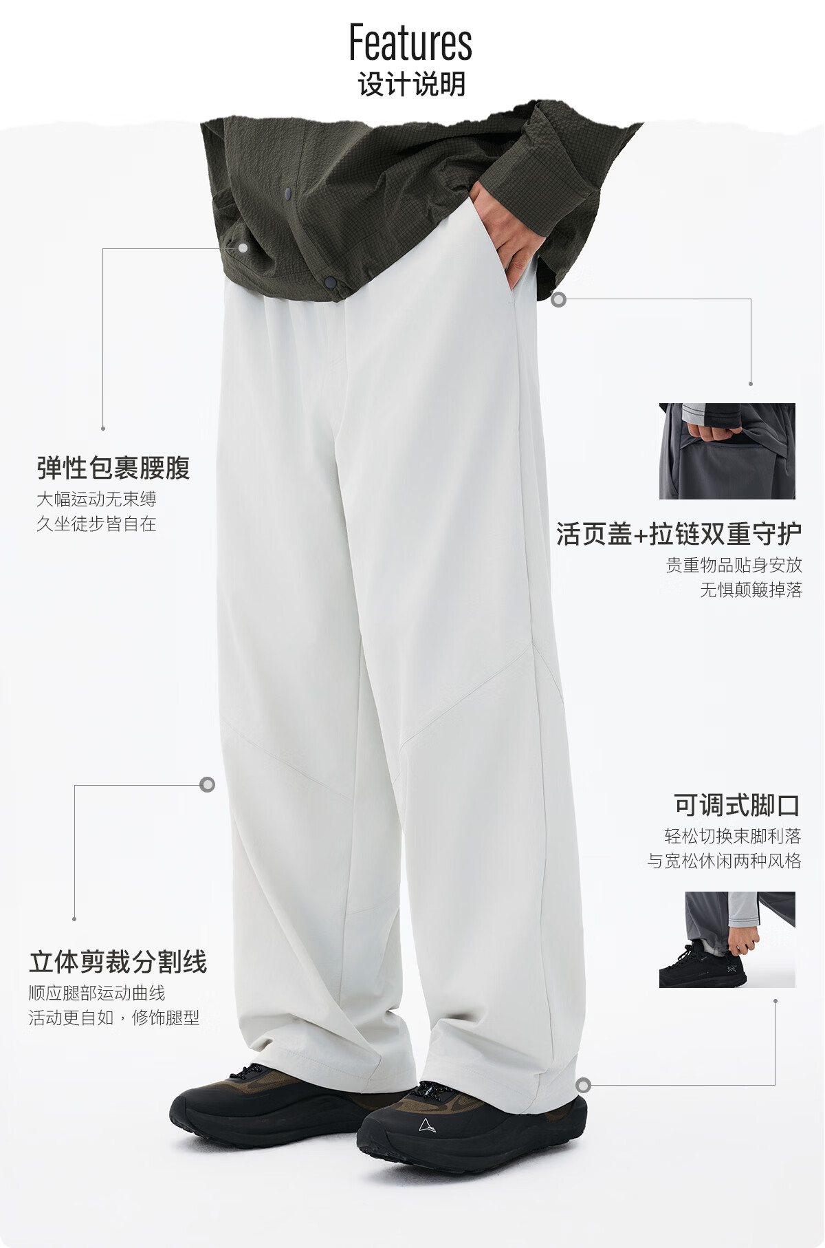 熊猫·本(ben.panda)防泼水休闲裤男百搭宽松长裤分割休闲户外登山裤直筒裤子 白桦色 M