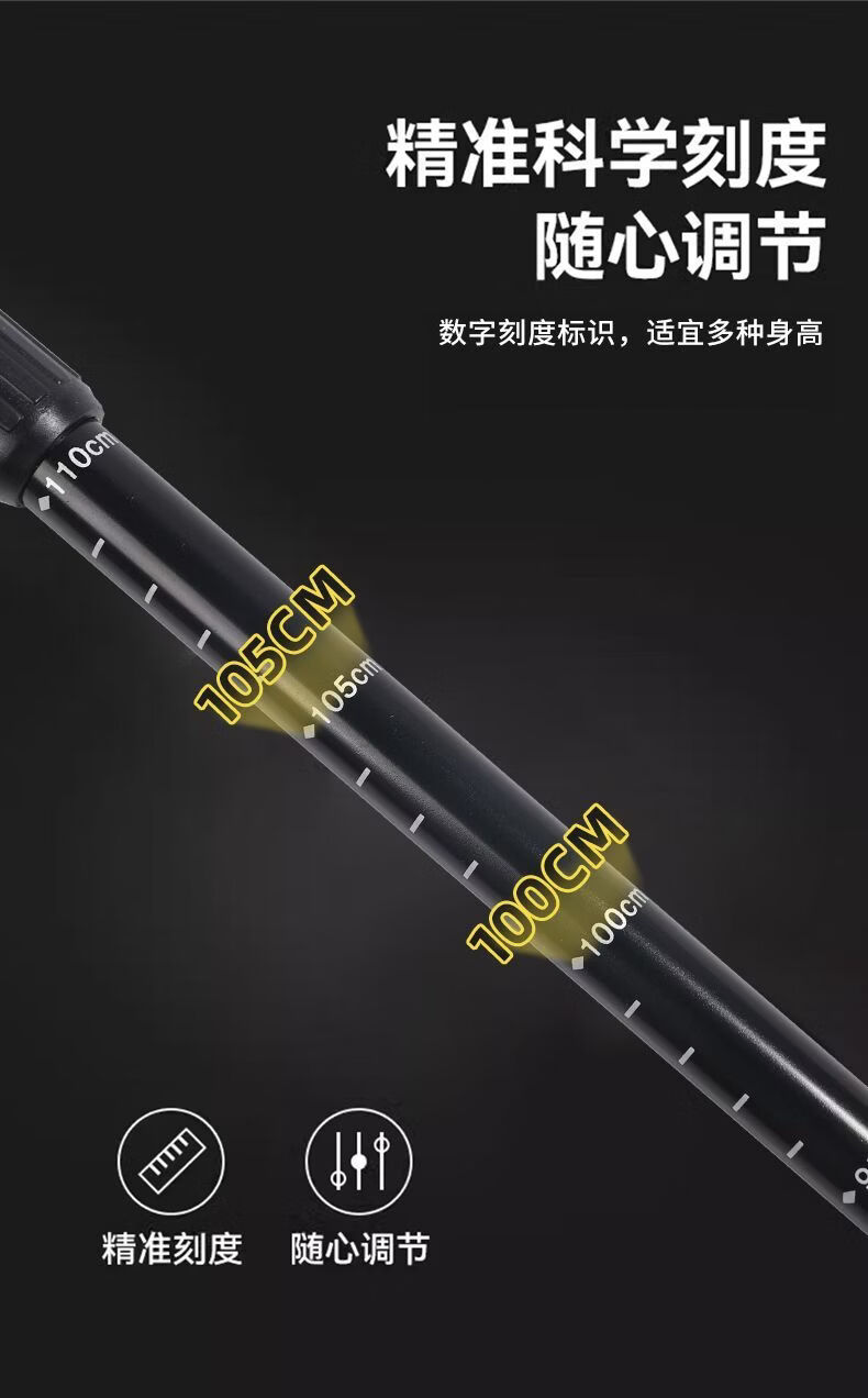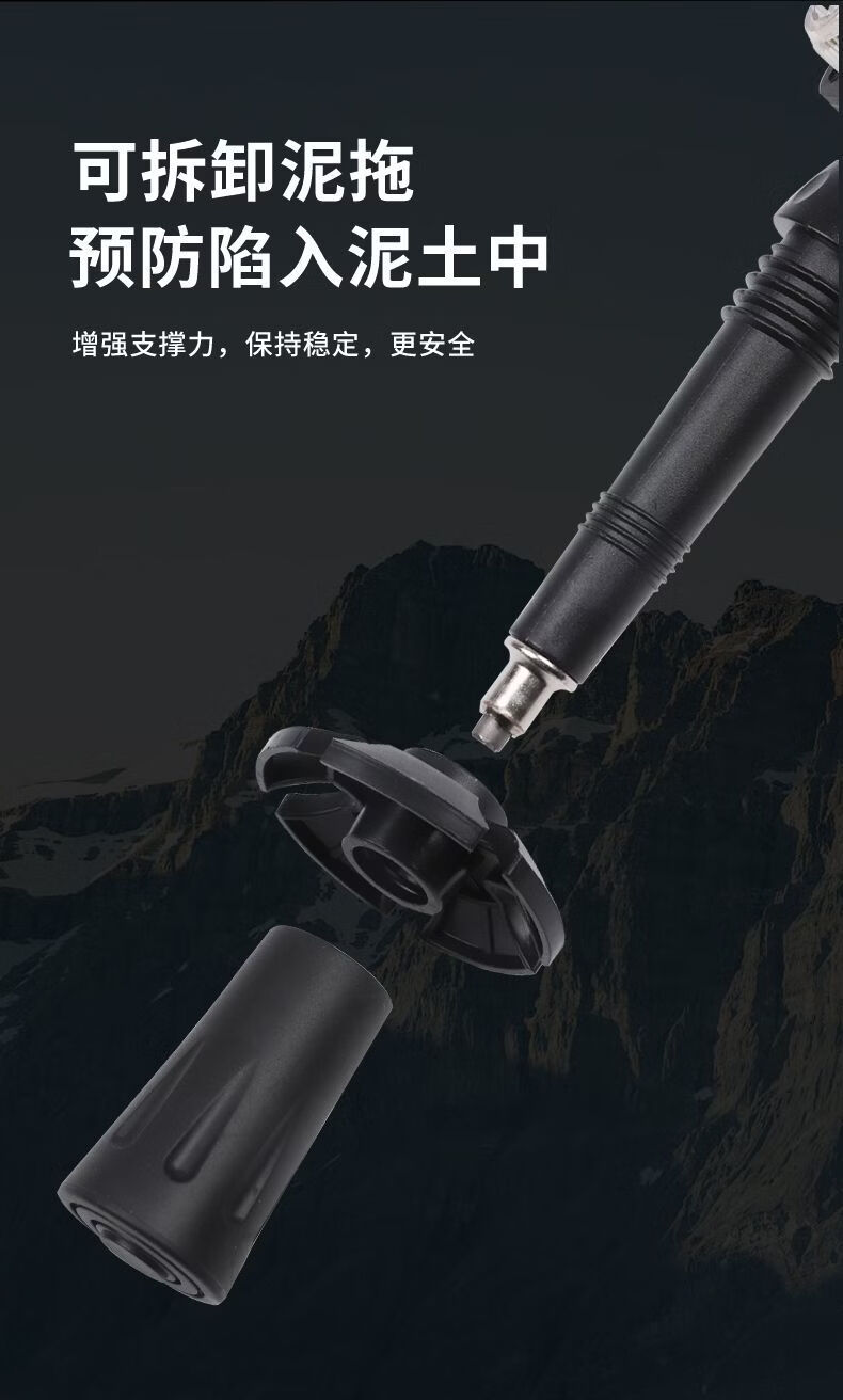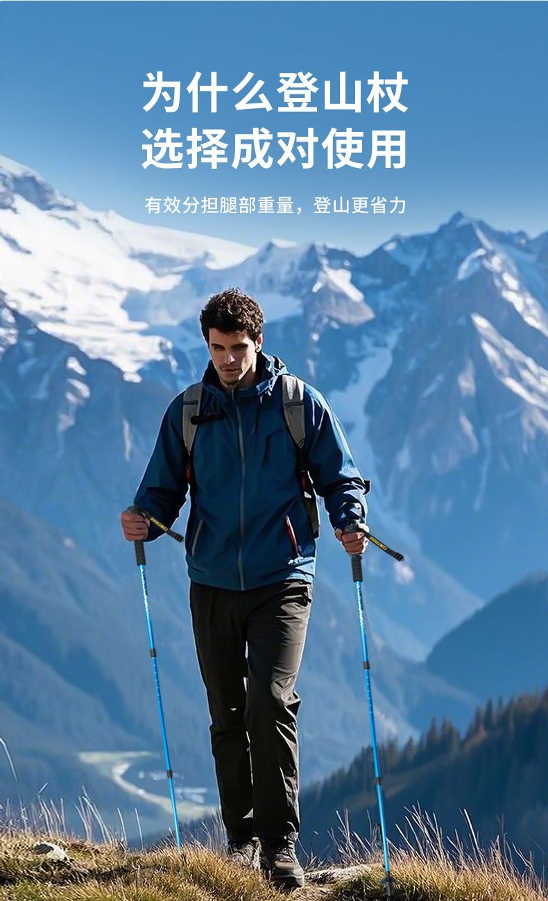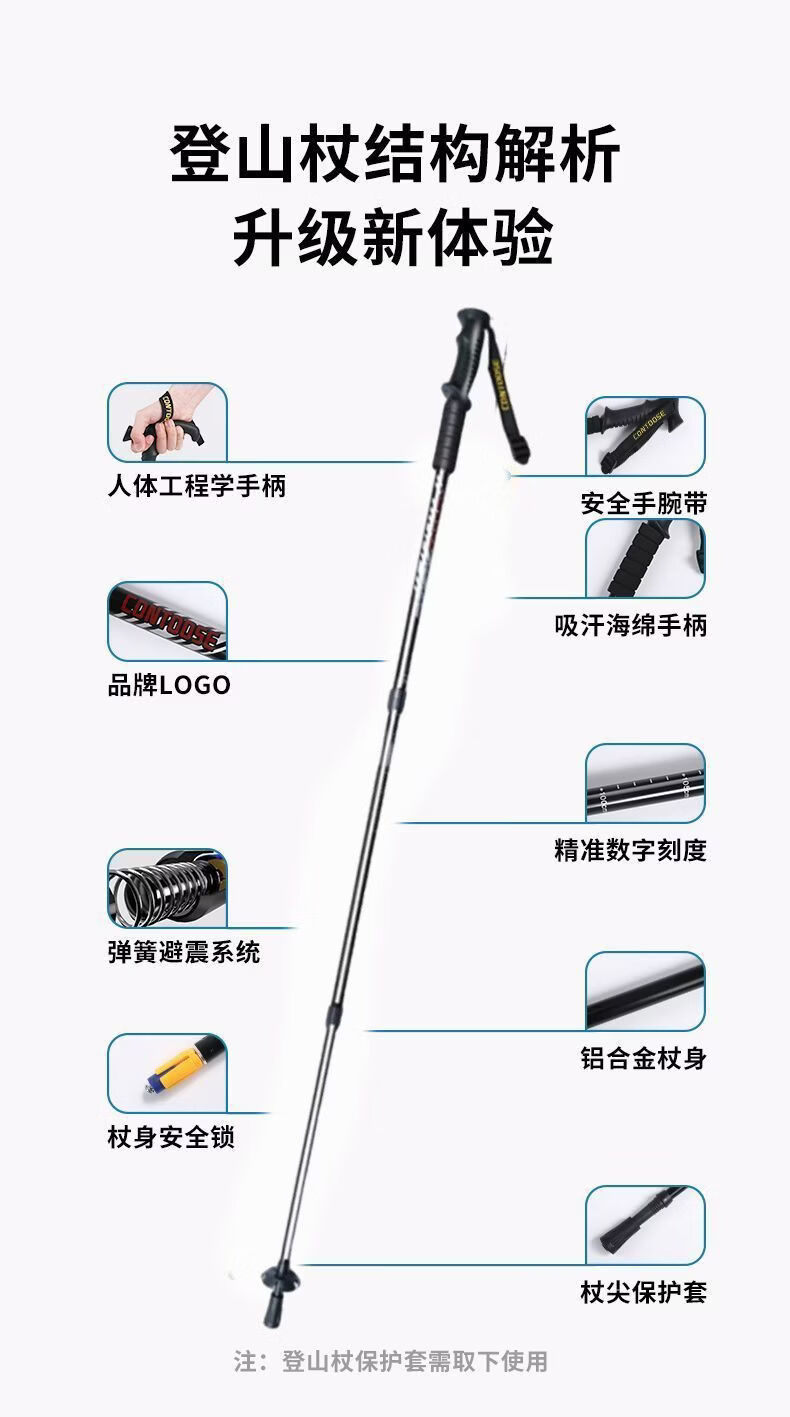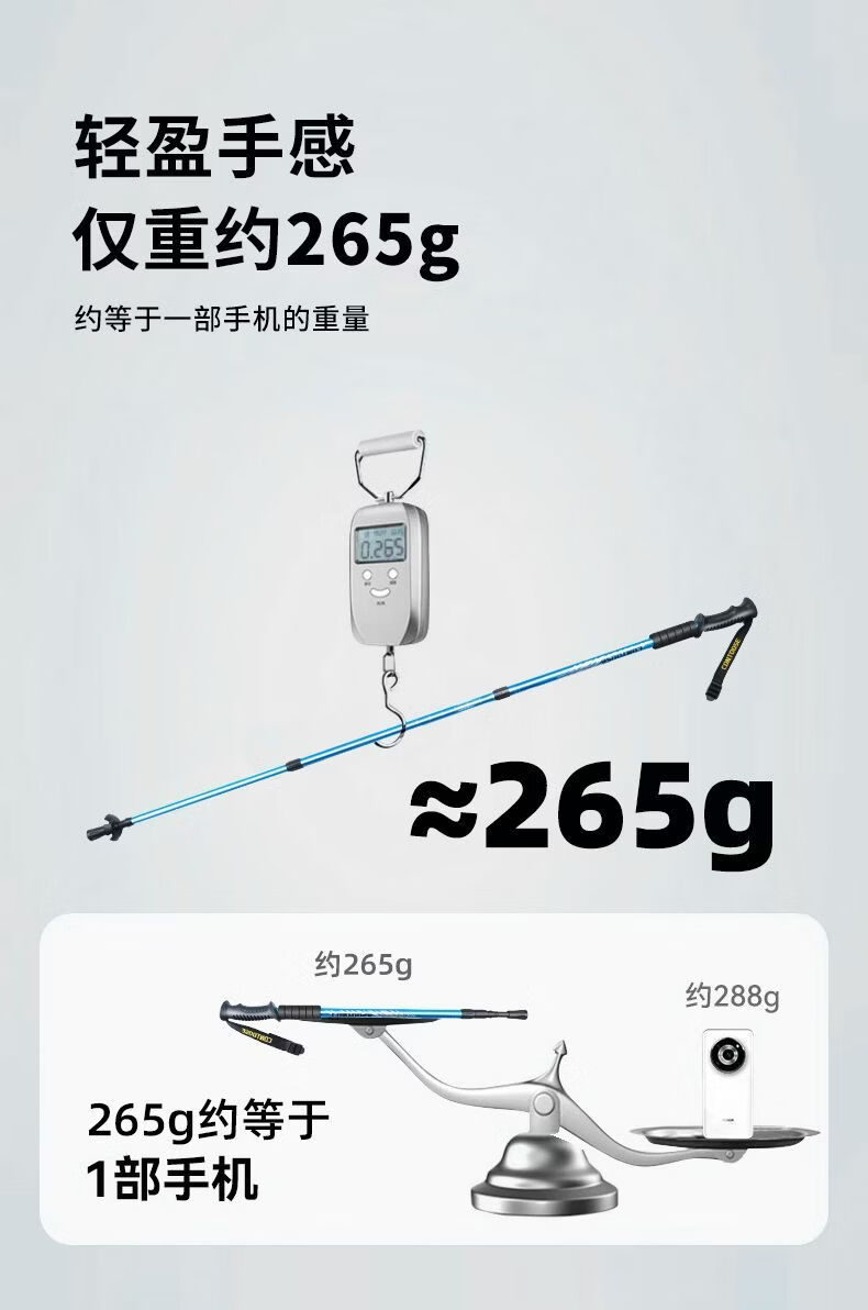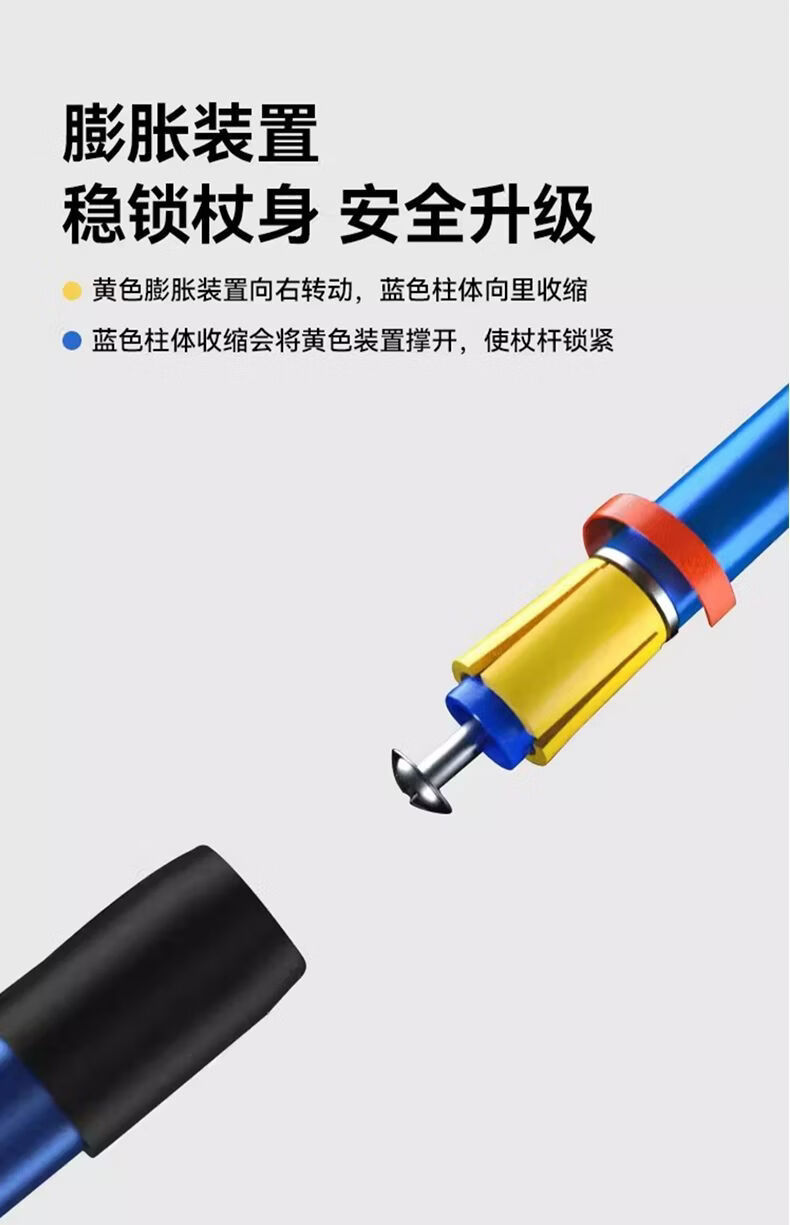 微笑鲨 登山杖铝合金手杖超轻折叠伸缩便携拐杖专业户外徒步装备爬山棍 风暴蓝【三节伸缩丨弹簧减震】