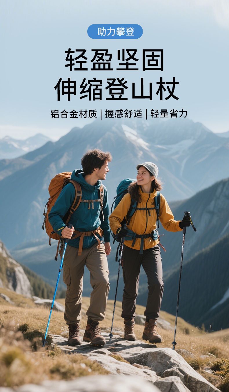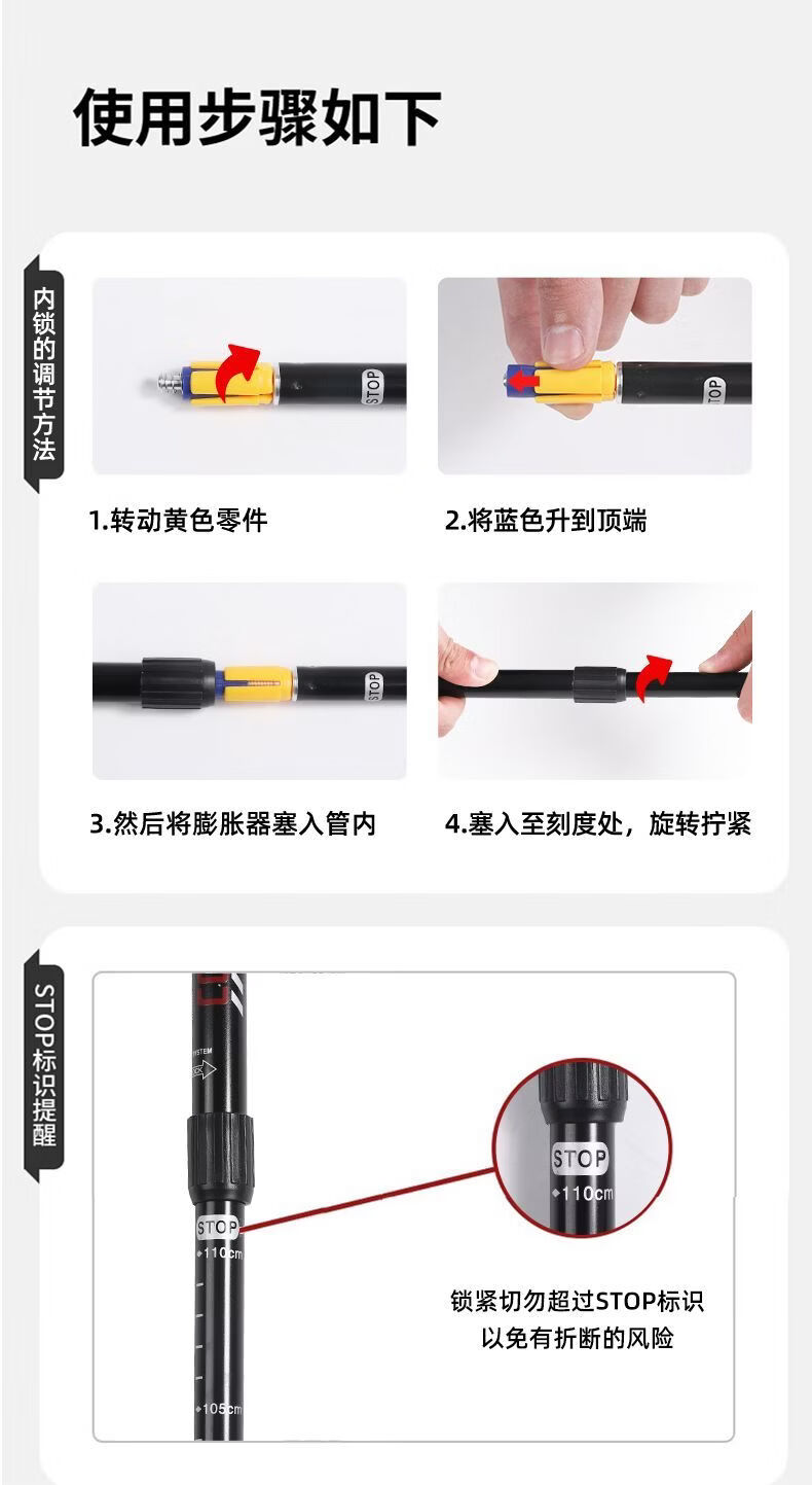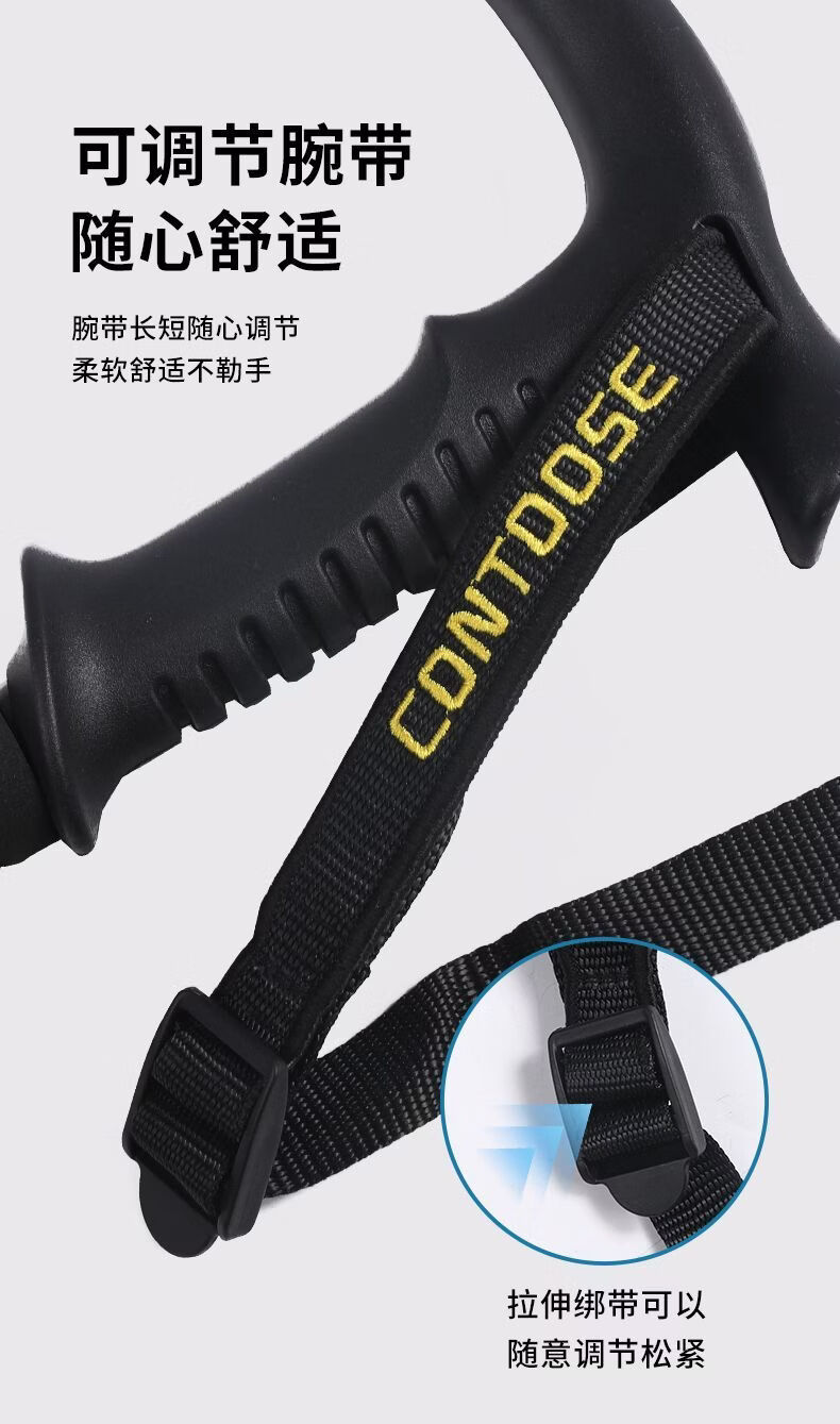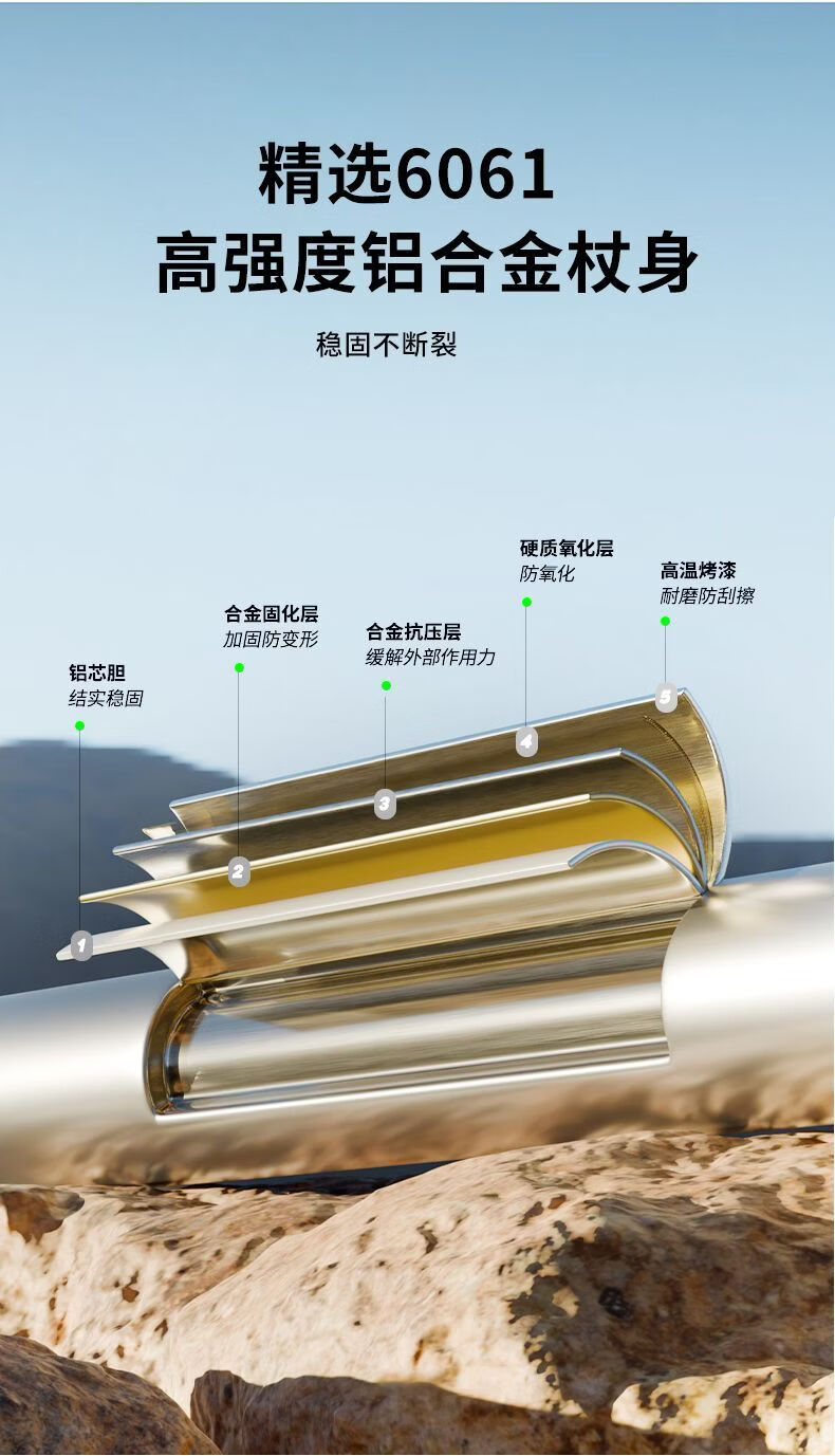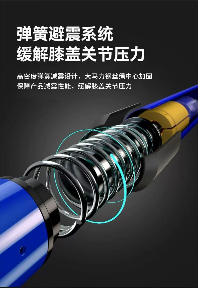 微笑鲨 登山杖铝合金手杖超轻折叠伸缩便携拐杖专业户外徒步装备爬山棍 风暴蓝【三节伸缩丨弹簧减震】