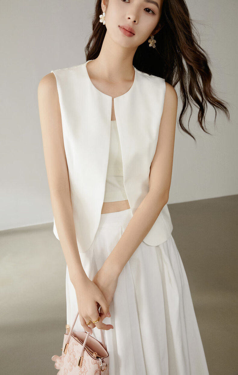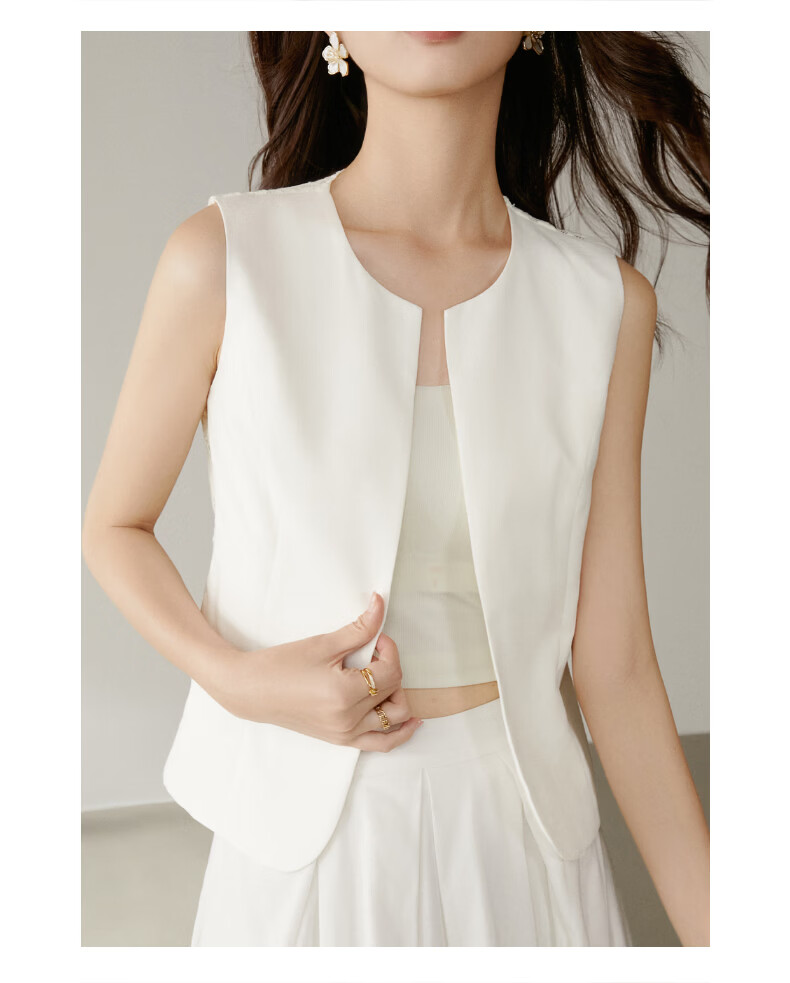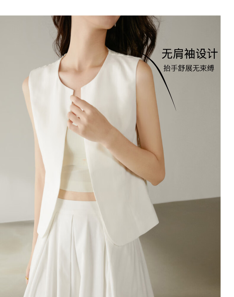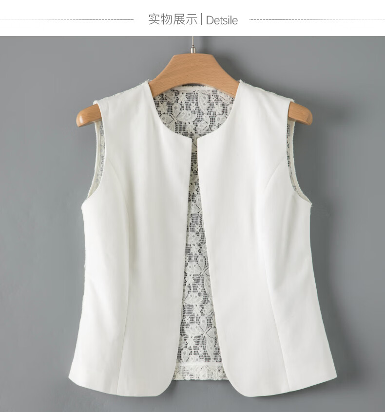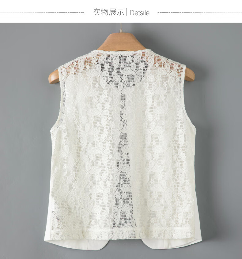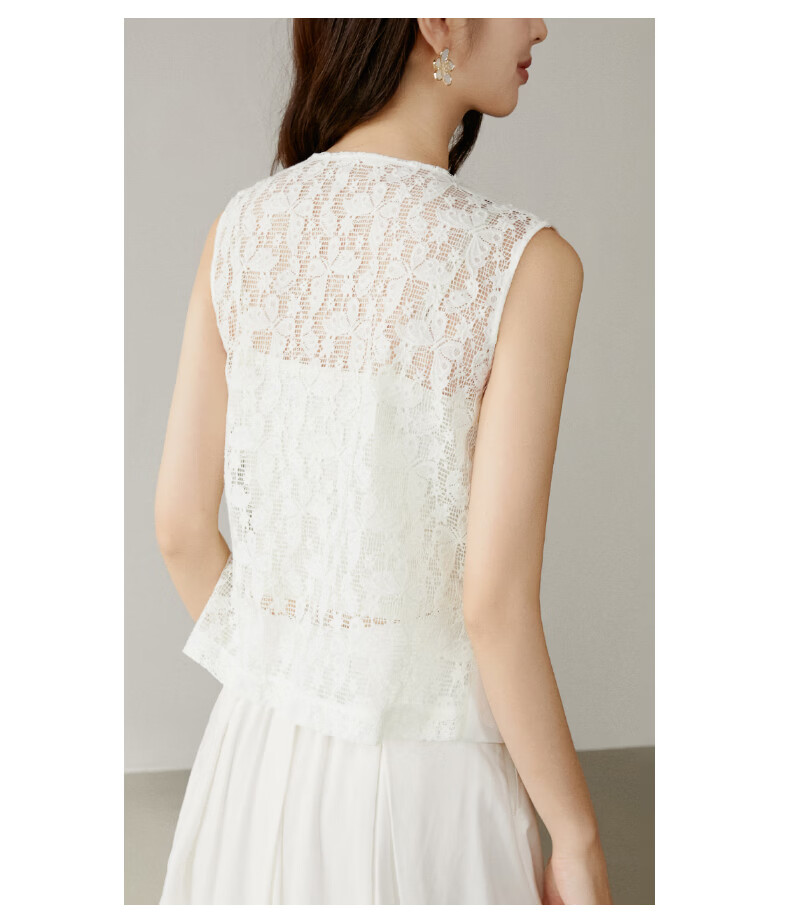 晚白【新品】2026年春款时尚休闲上衣设计感背部蕾丝纯色马甲女 米白色 M