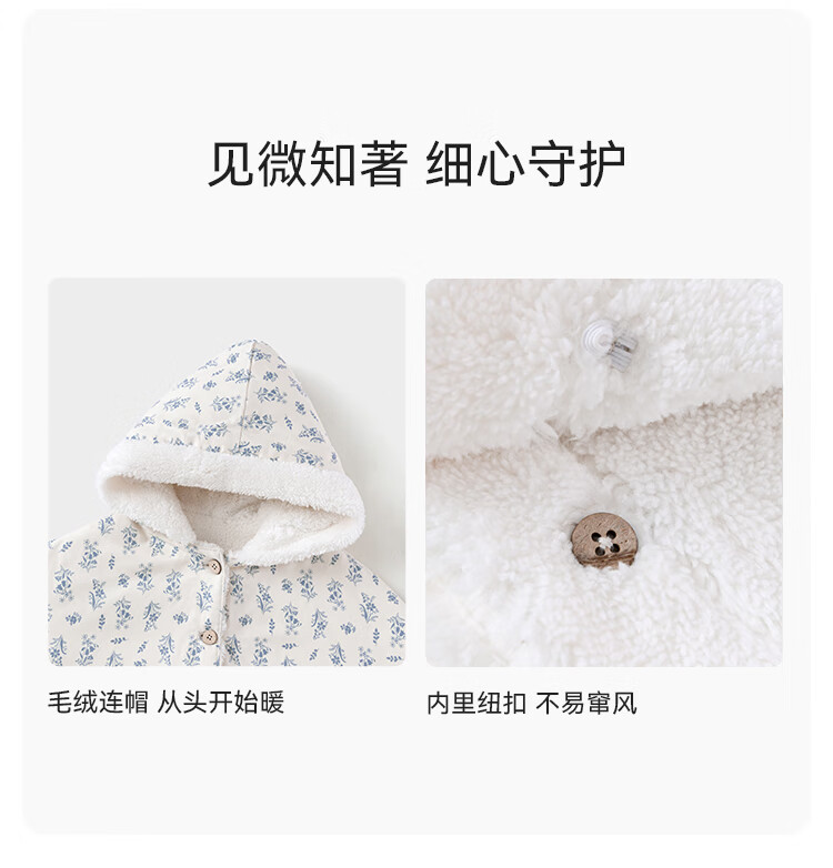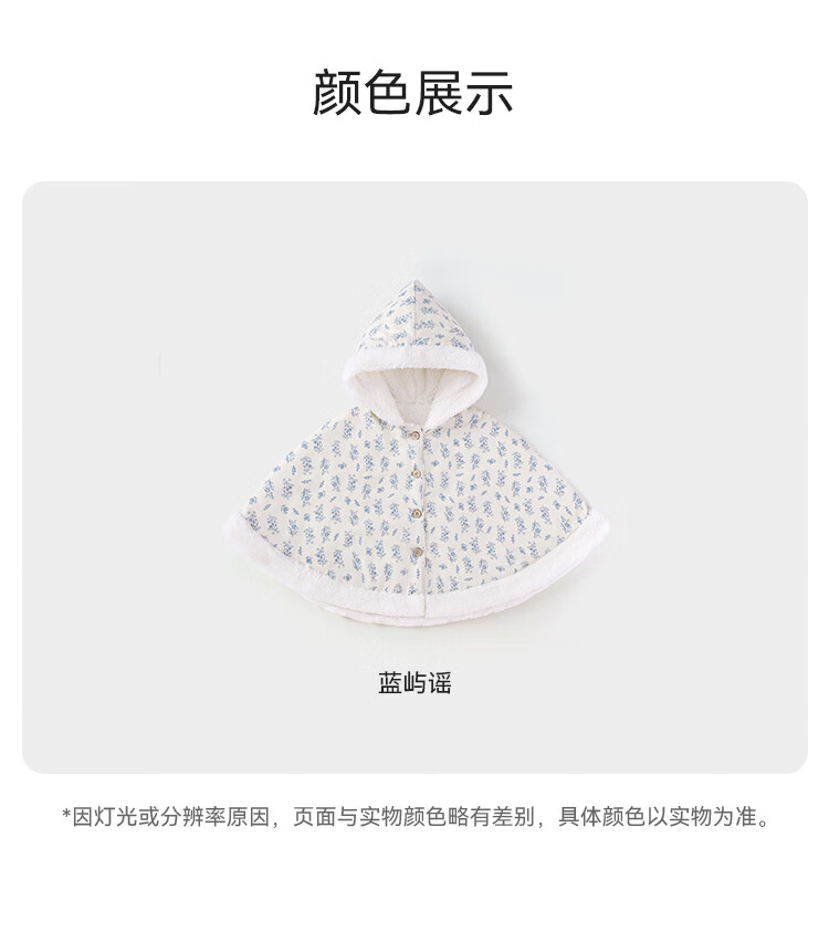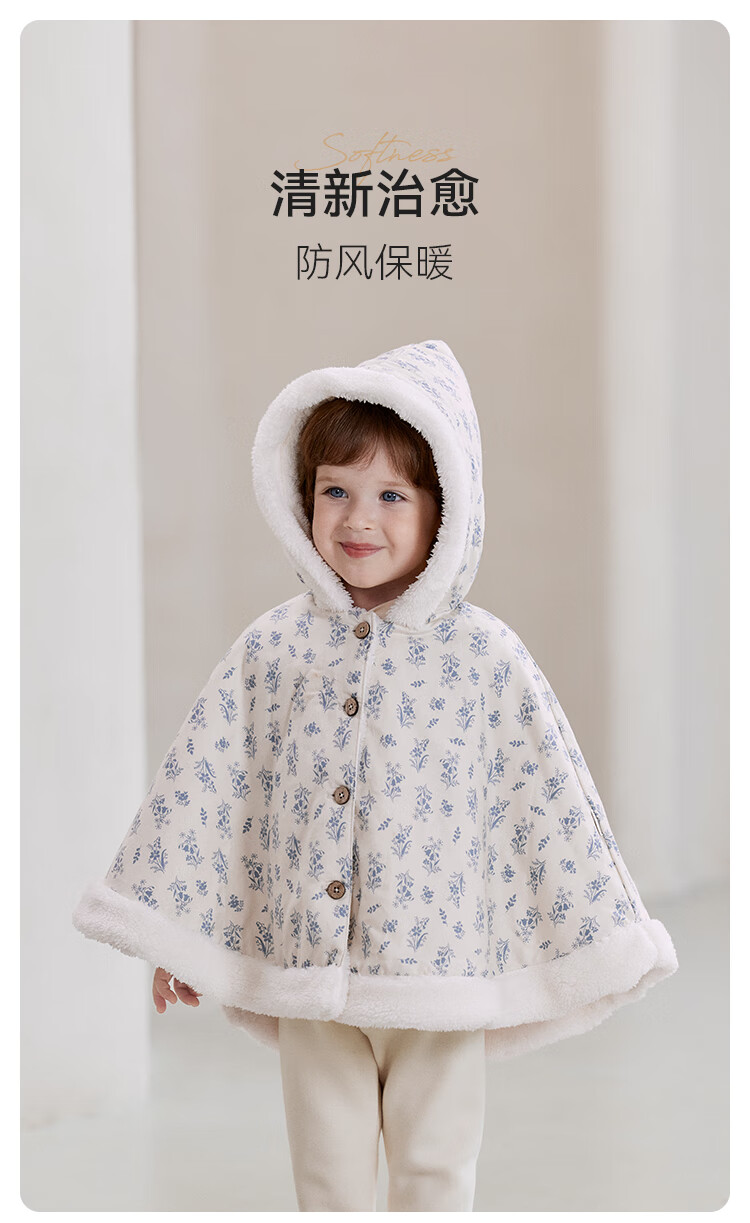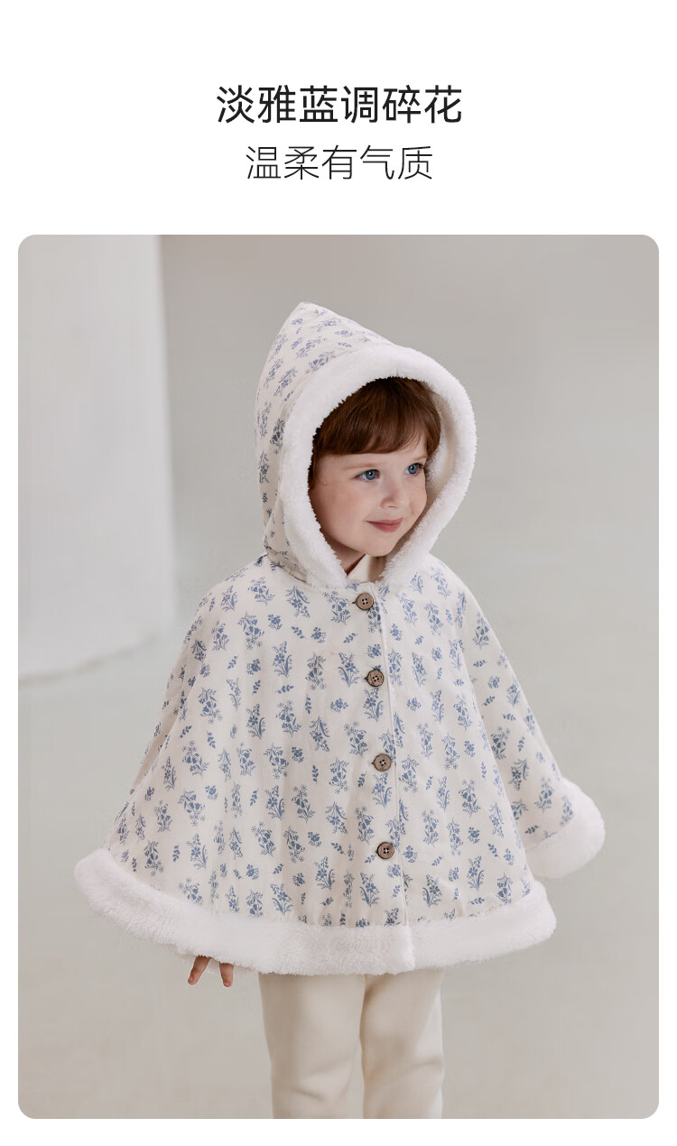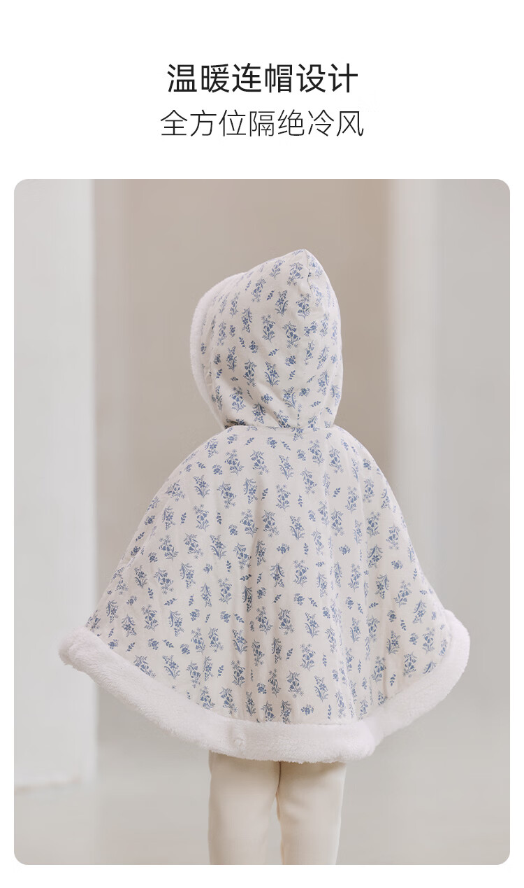 babylove【清仓】女宝宝加绒斗篷冬季保暖防风连帽披风婴幼儿法式碎花外套 蓝屿谣 均码 (尺寸40*71cm-建议0-3岁宝宝)