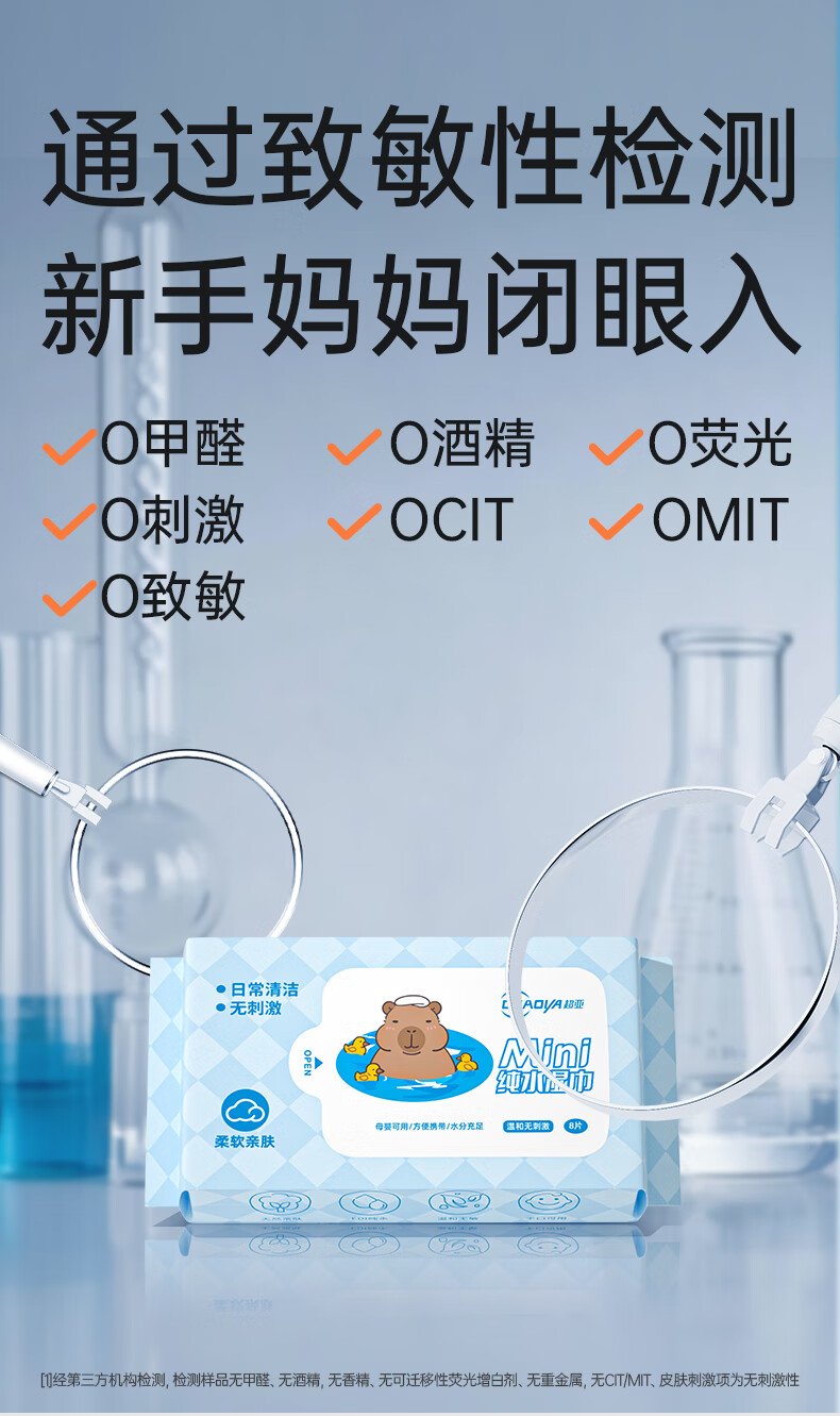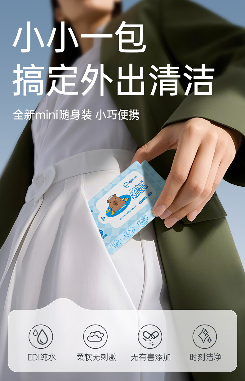 超亚迷你湿巾小包婴童便携湿纸巾婴儿手口专用新生儿小学生儿童随身装 Mini纯水湿巾 8抽 24包