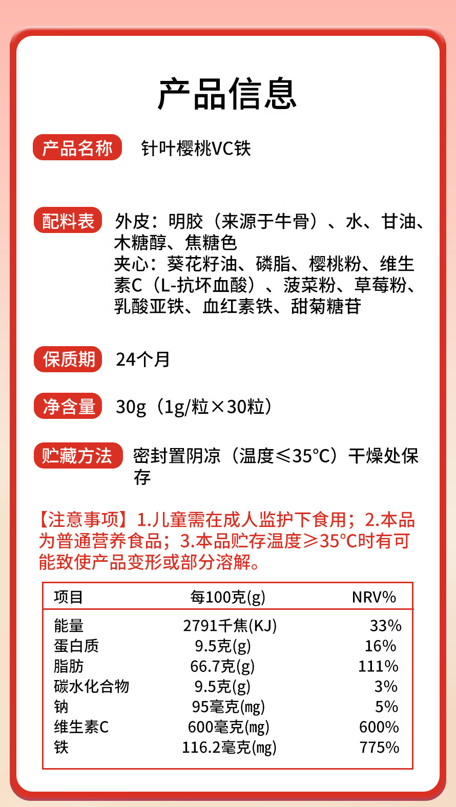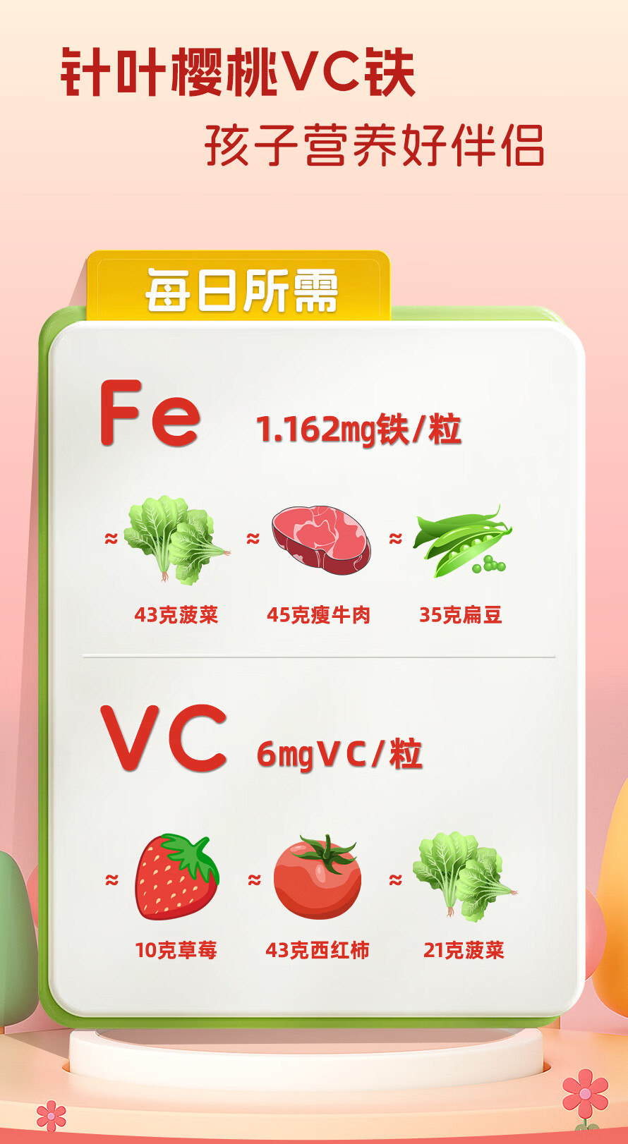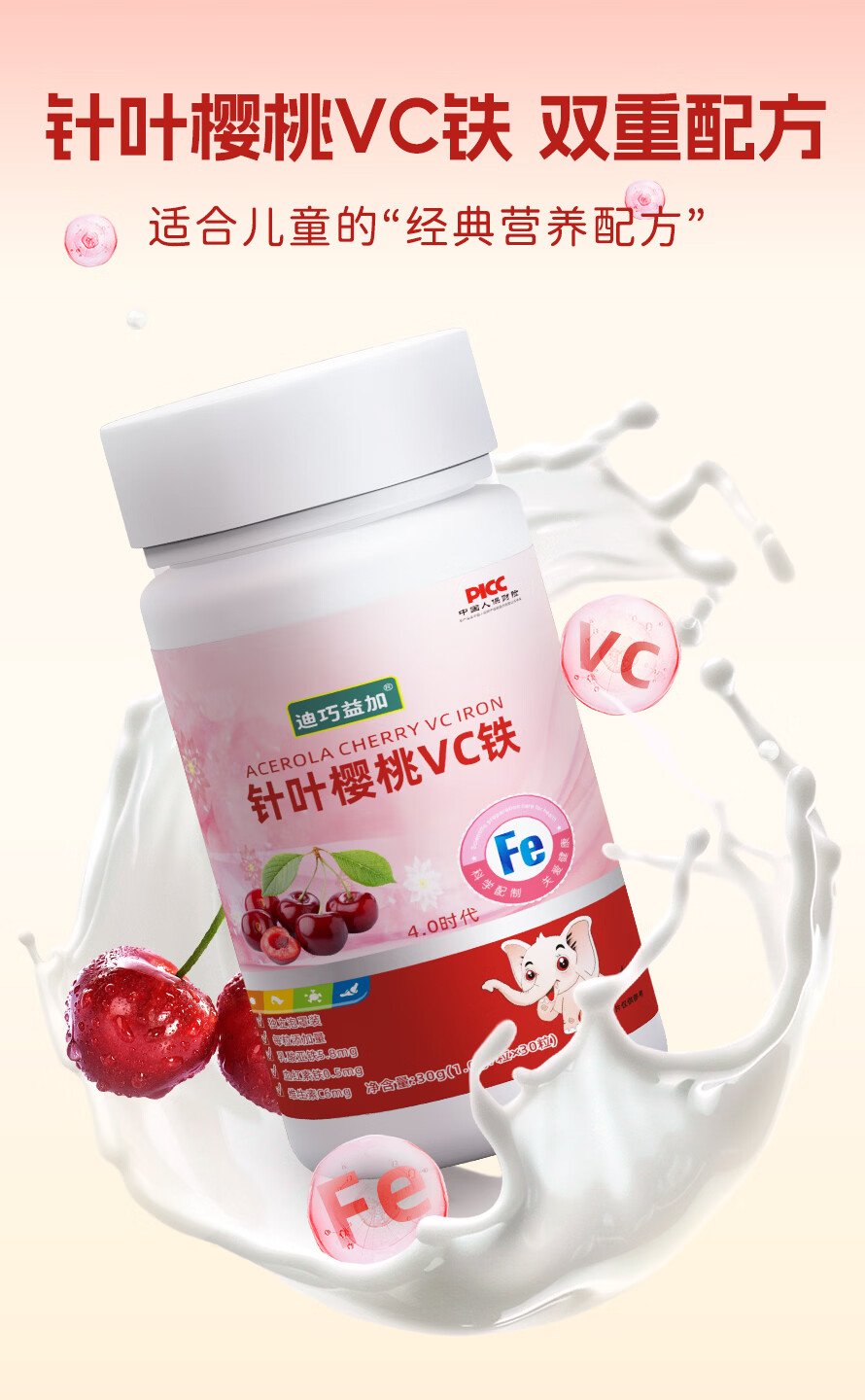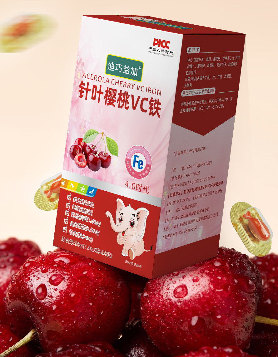 迪巧益加儿童补樱桃铁VC果蔬铁凝胶囊贫血缺血缺铁婴幼儿0-6岁补铁红元素 2盒60粒【没有铁锈味】