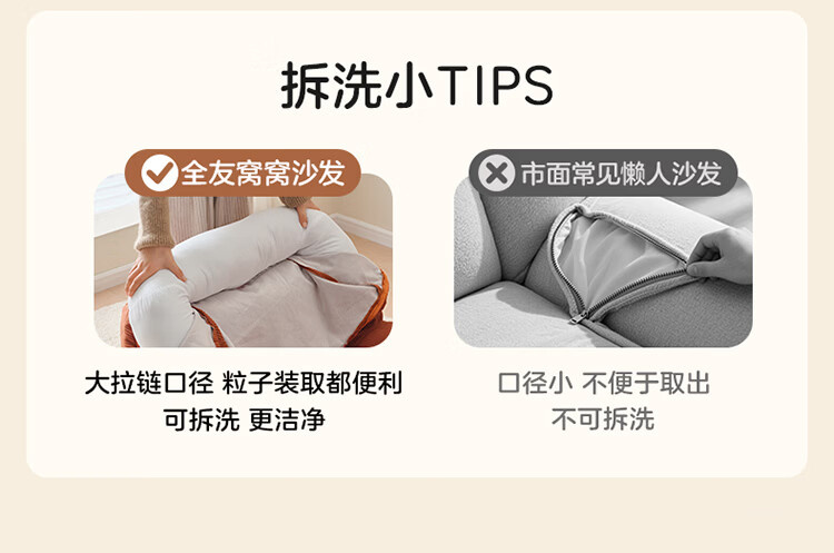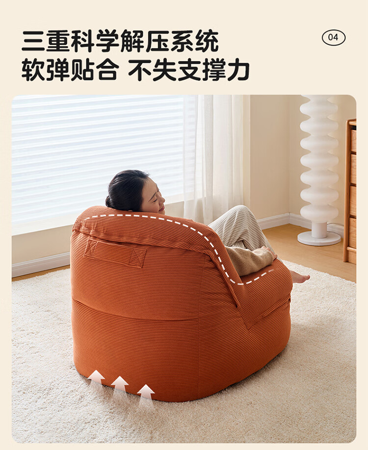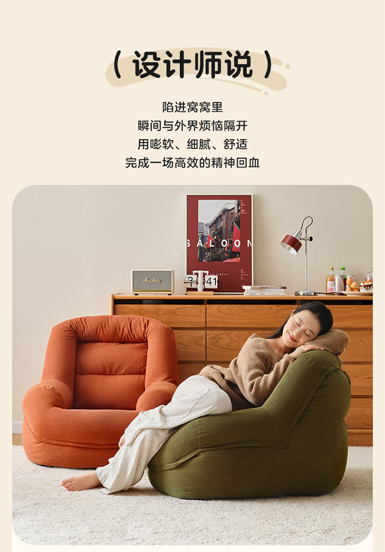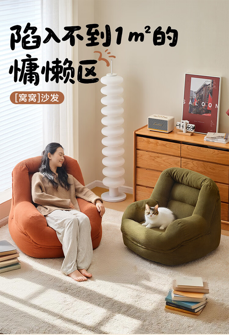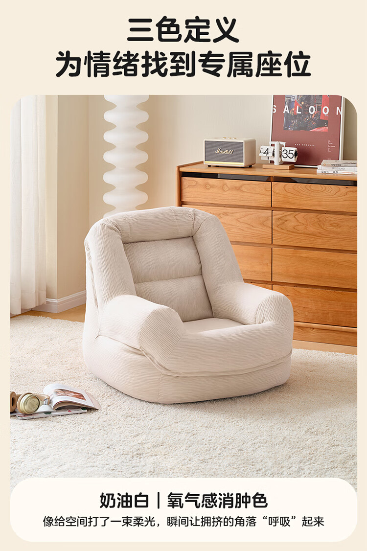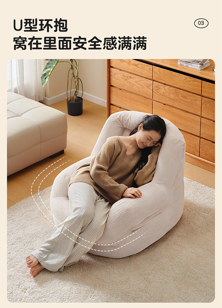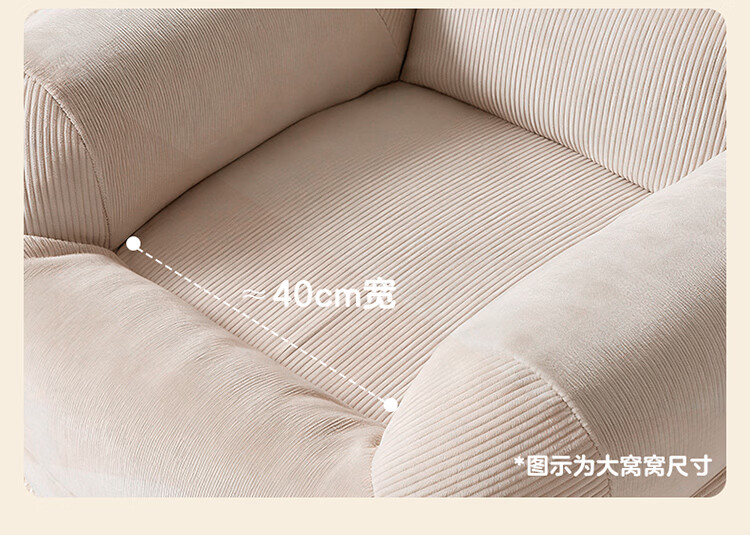 全友家居奶油风人类狗窝家用沙发躺椅狗窝式懒人沙发可拆洗单人沙发KS 【灯芯绒 | 奶油白】90cm大窝窝沙发