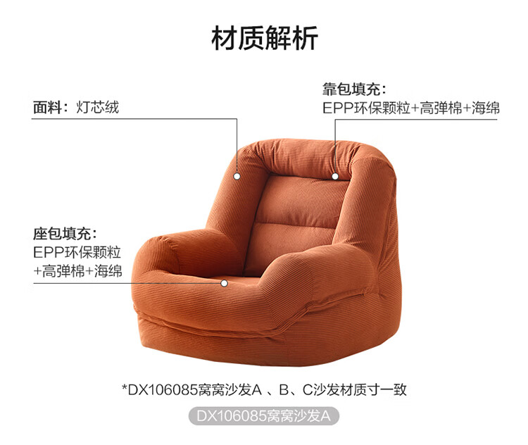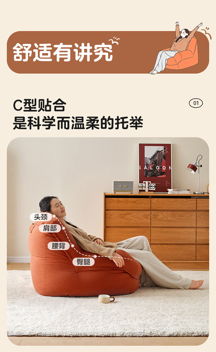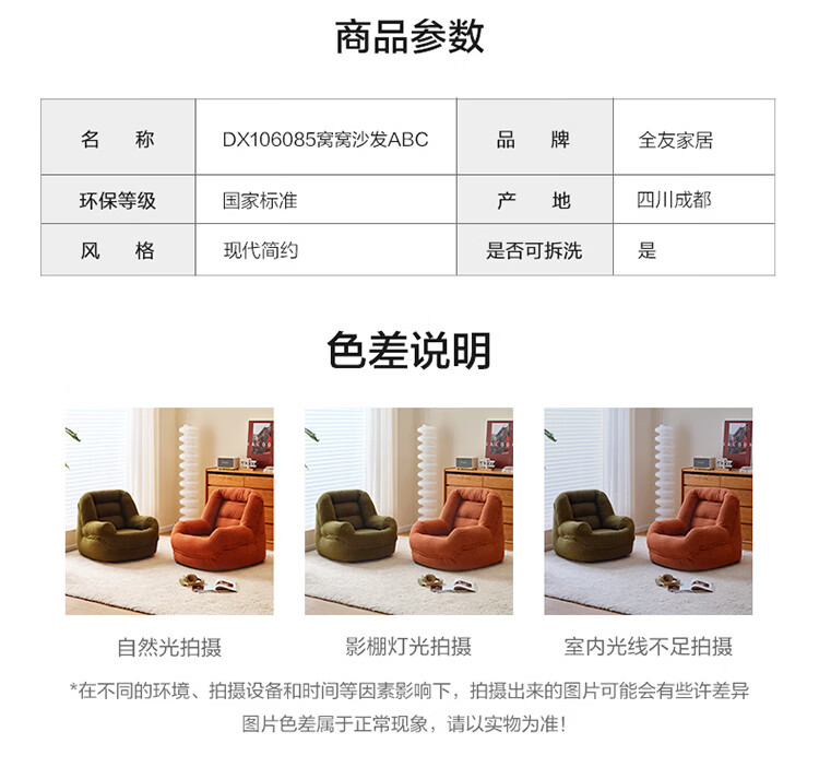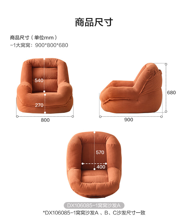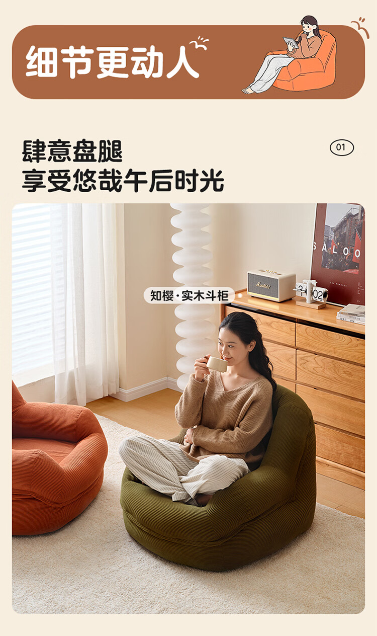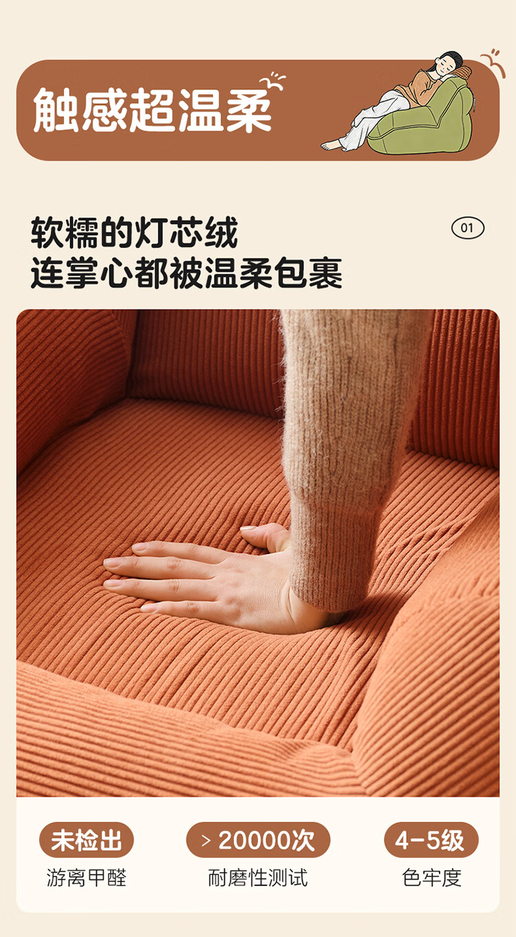 全友家居奶油风人类狗窝家用沙发躺椅狗窝式懒人沙发可拆洗单人沙发KS 【灯芯绒 | 奶油白】90cm大窝窝沙发