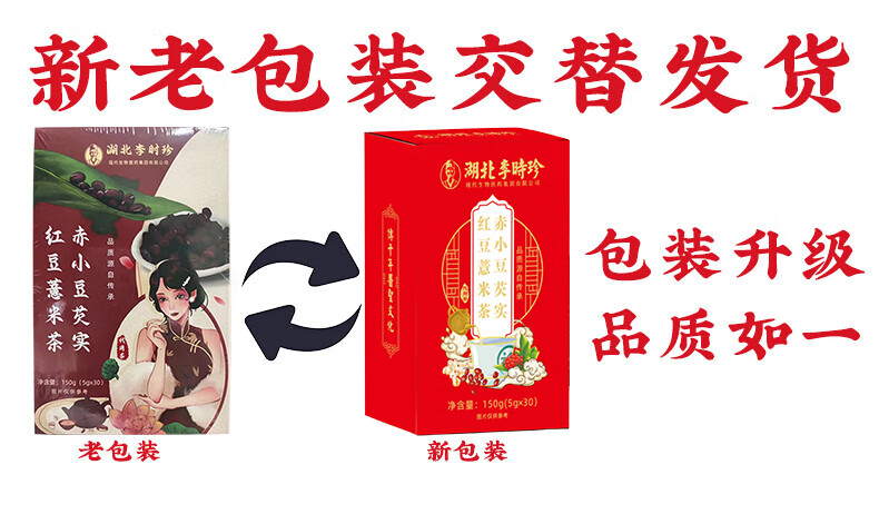 李时珍红豆薏米茶赤小豆脾胃湿气茶包去体内祛湿茶花草养生茶150g 三盒90包丨赤小豆薏米祛湿茶