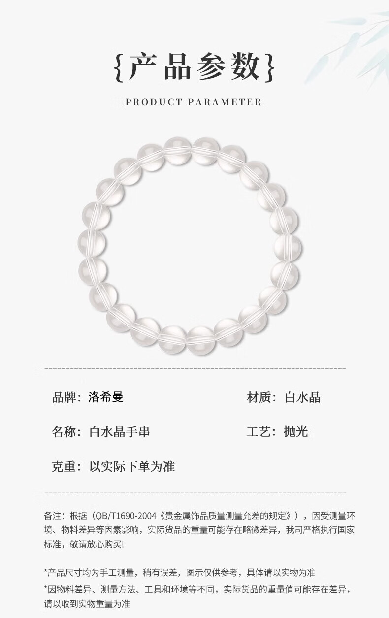 洛希曼收藏级天然巴西白水晶手链高端手串男女同款生日礼物送女友老婆 【证书】8mm珍藏级白水晶