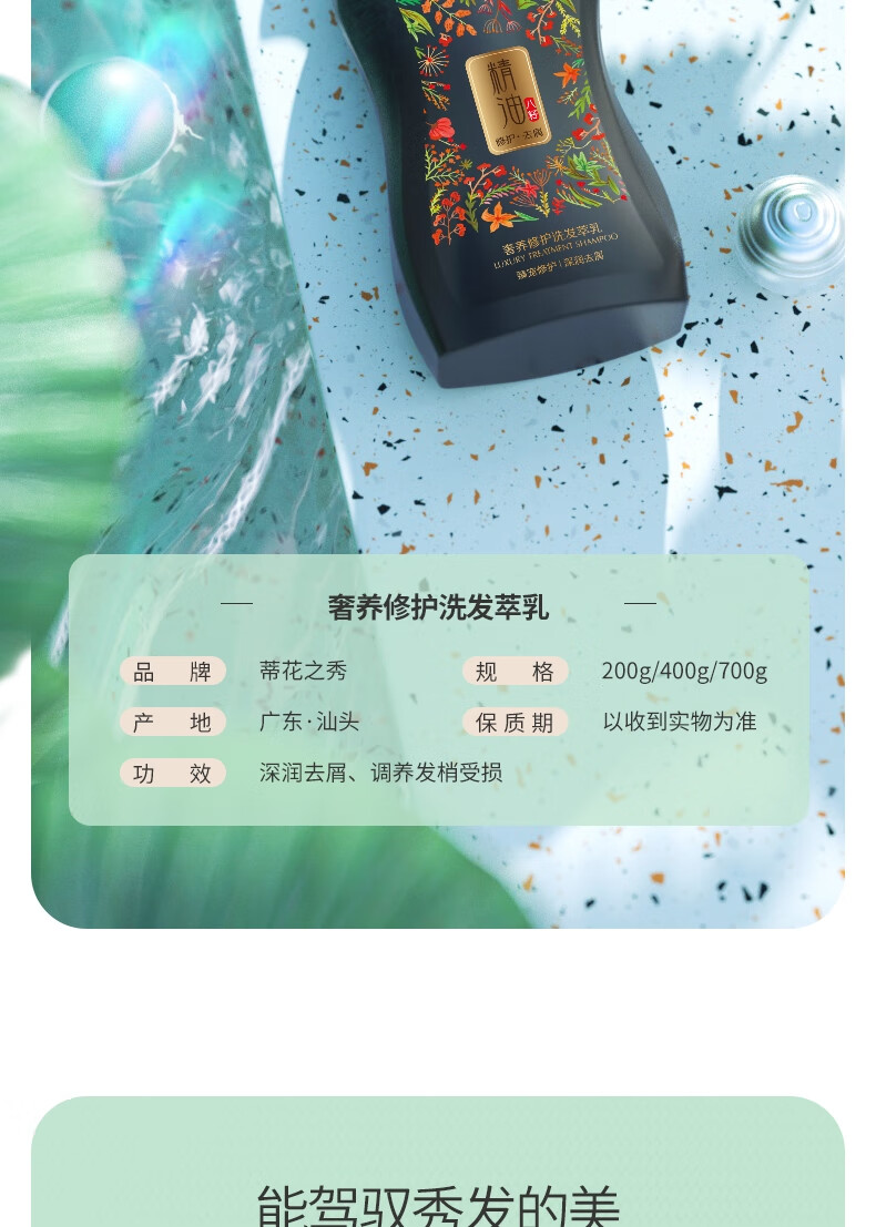 蒂花之秀精油洗发水露乳 深润柔韧丝滑柔顺亮泽柔顺洗发膏 深润去屑 到手2瓶【包装随机】