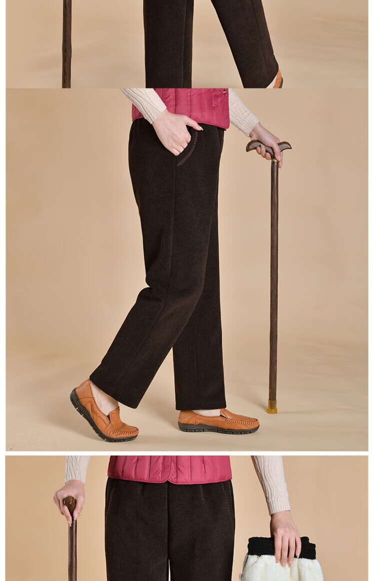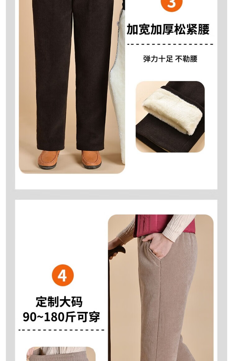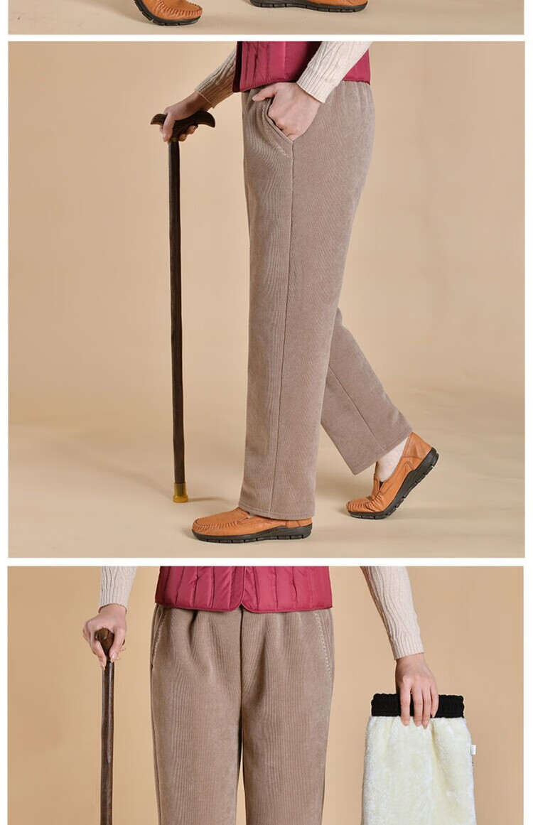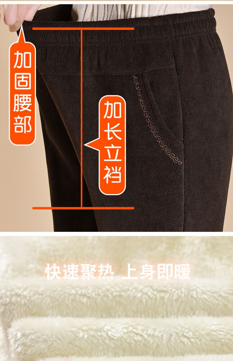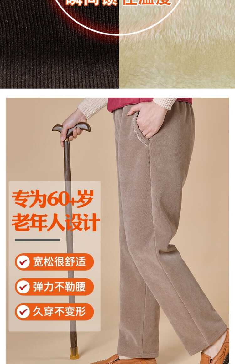 老年人加绒裤子妈妈灯芯绒棉裤冬季外穿老年女裤冬季老太太奶奶裤 咖啡-加绒冬款 5XL 推|荐150-165斤