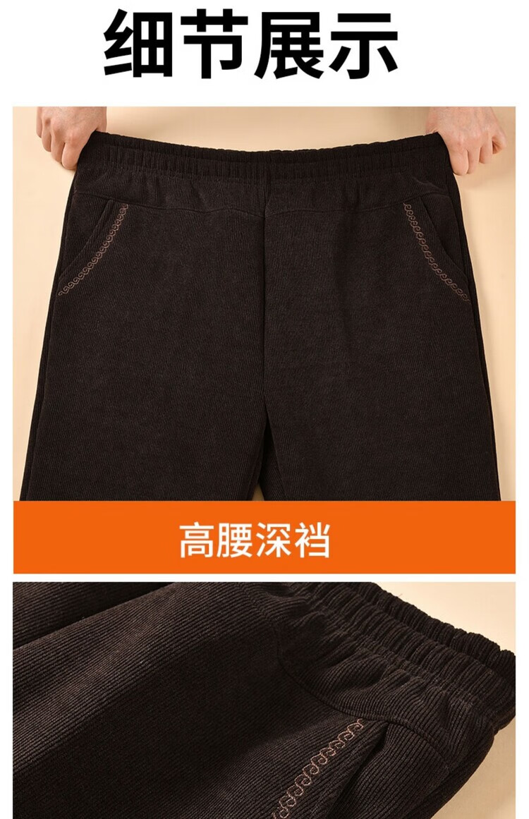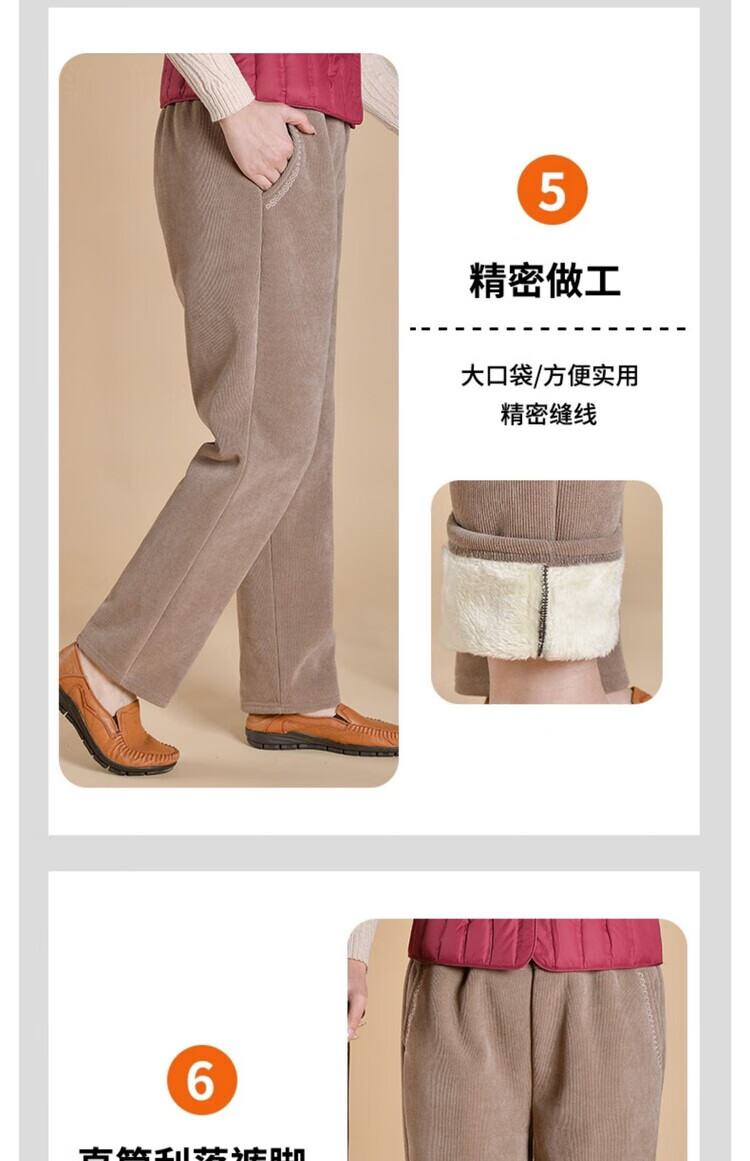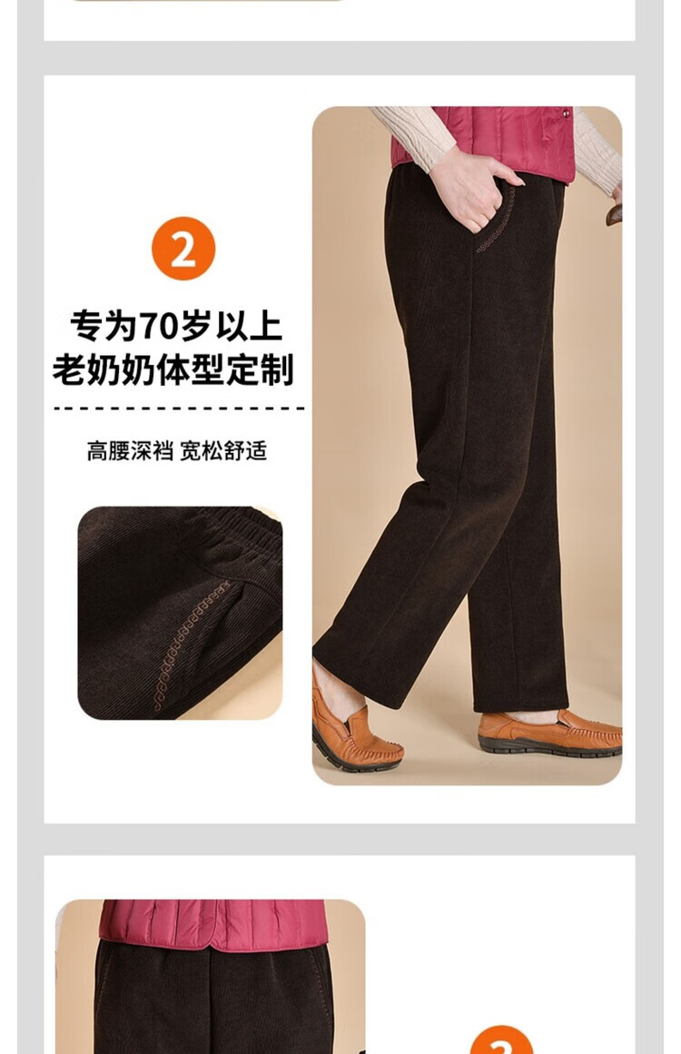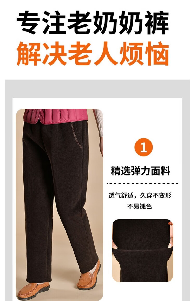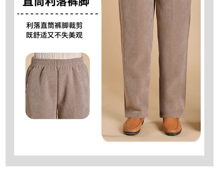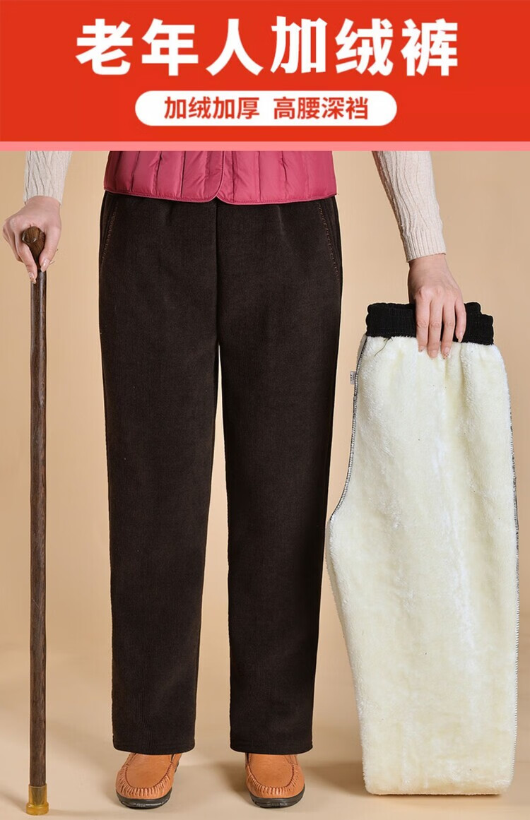 老年人加绒裤子妈妈灯芯绒棉裤冬季外穿老年女裤冬季老太太奶奶裤 咖啡-加绒冬款 5XL 推|荐150-165斤