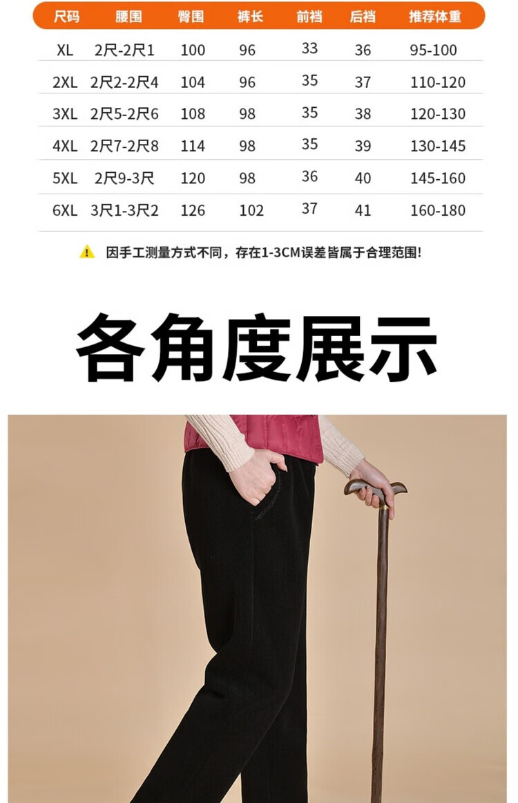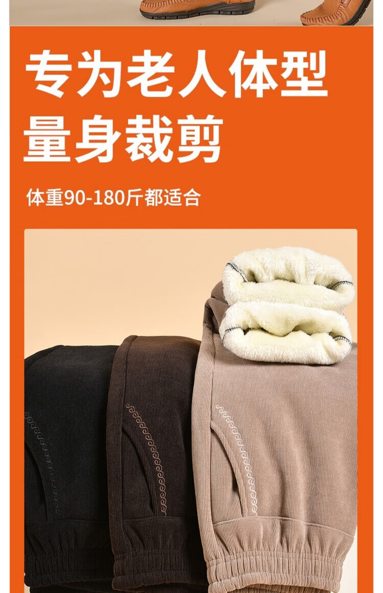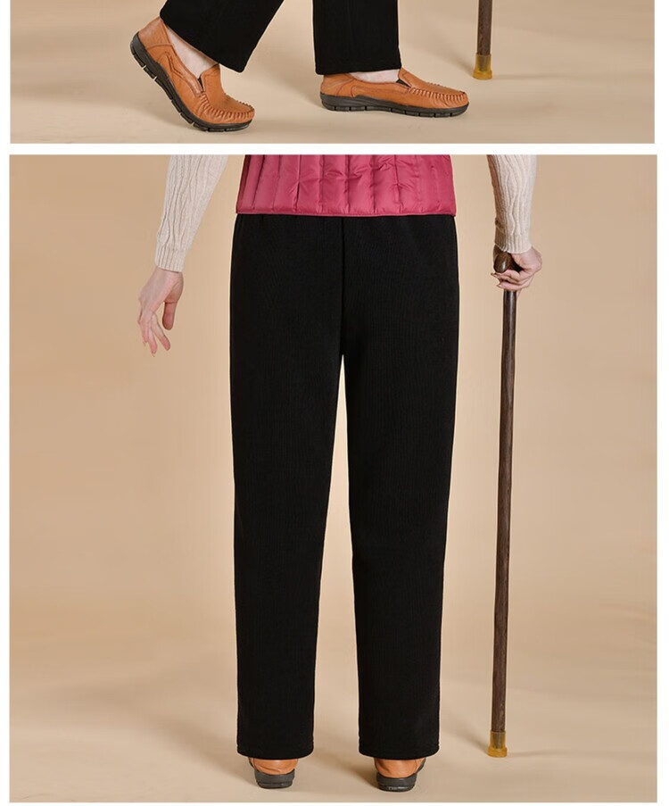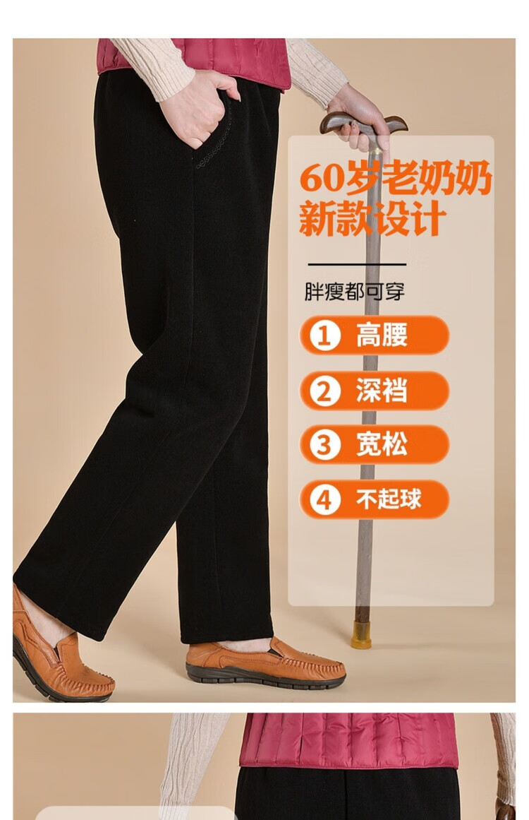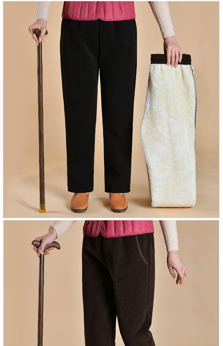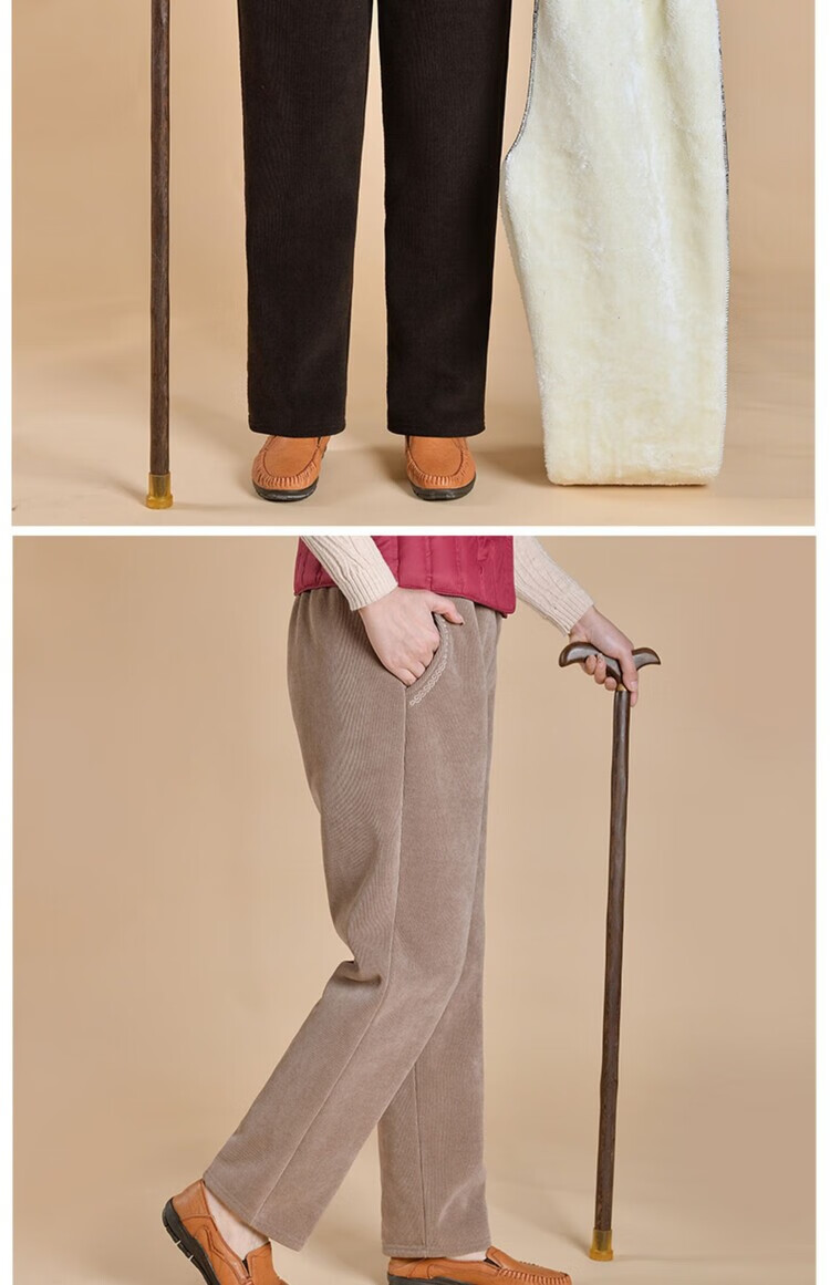 老年人加绒裤子妈妈灯芯绒棉裤冬季外穿老年女裤冬季老太太奶奶裤 咖啡-加绒冬款 5XL 推|荐150-165斤