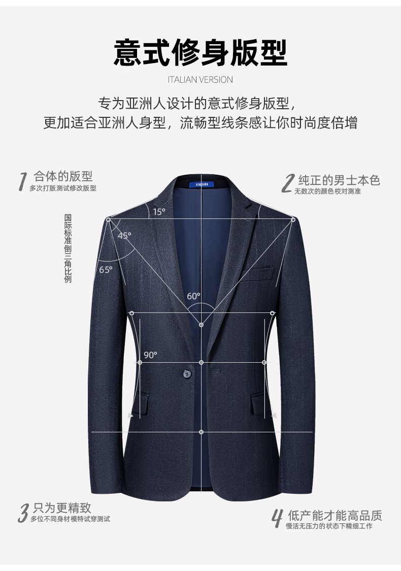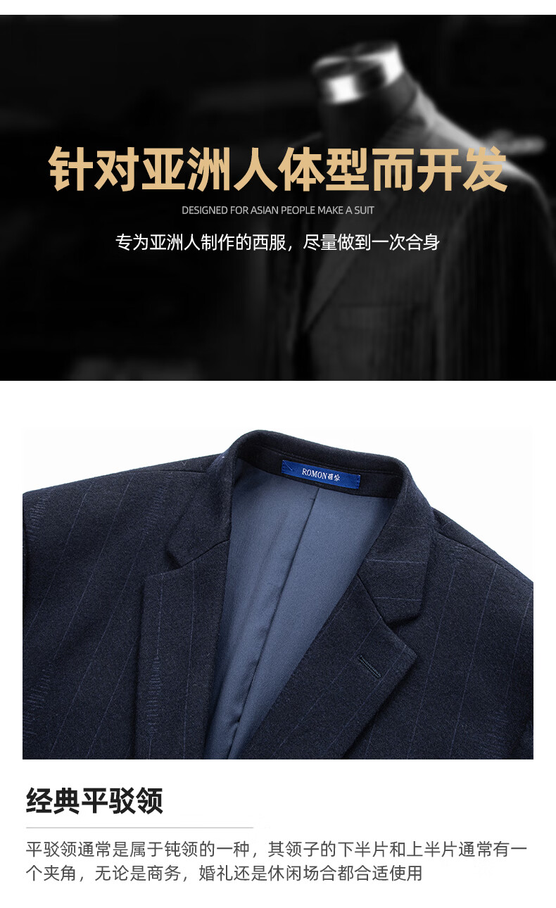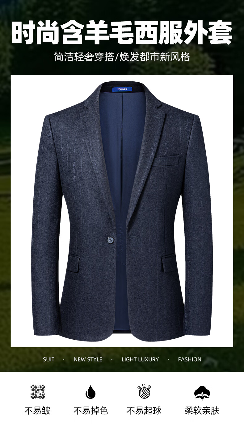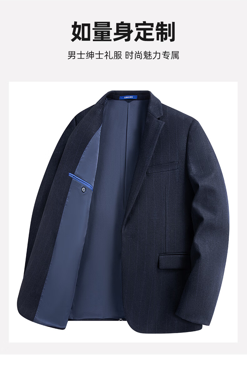 罗蒙休闲小西服男商务修身单西上衣中青年男士西装职业上班外套男 藏青 52 185/100A 【建议160-175斤】