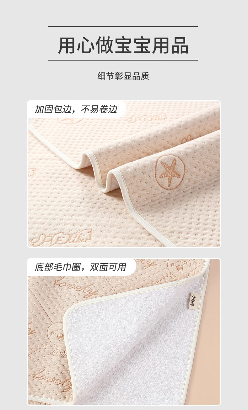 小白豚隔尿垫婴儿可洗床单大号幼儿园可机洗儿童可水洗彩棉小号透气防水 1条装健康宝宝(天然彩棉 升级10A抗菌) 50*70cm