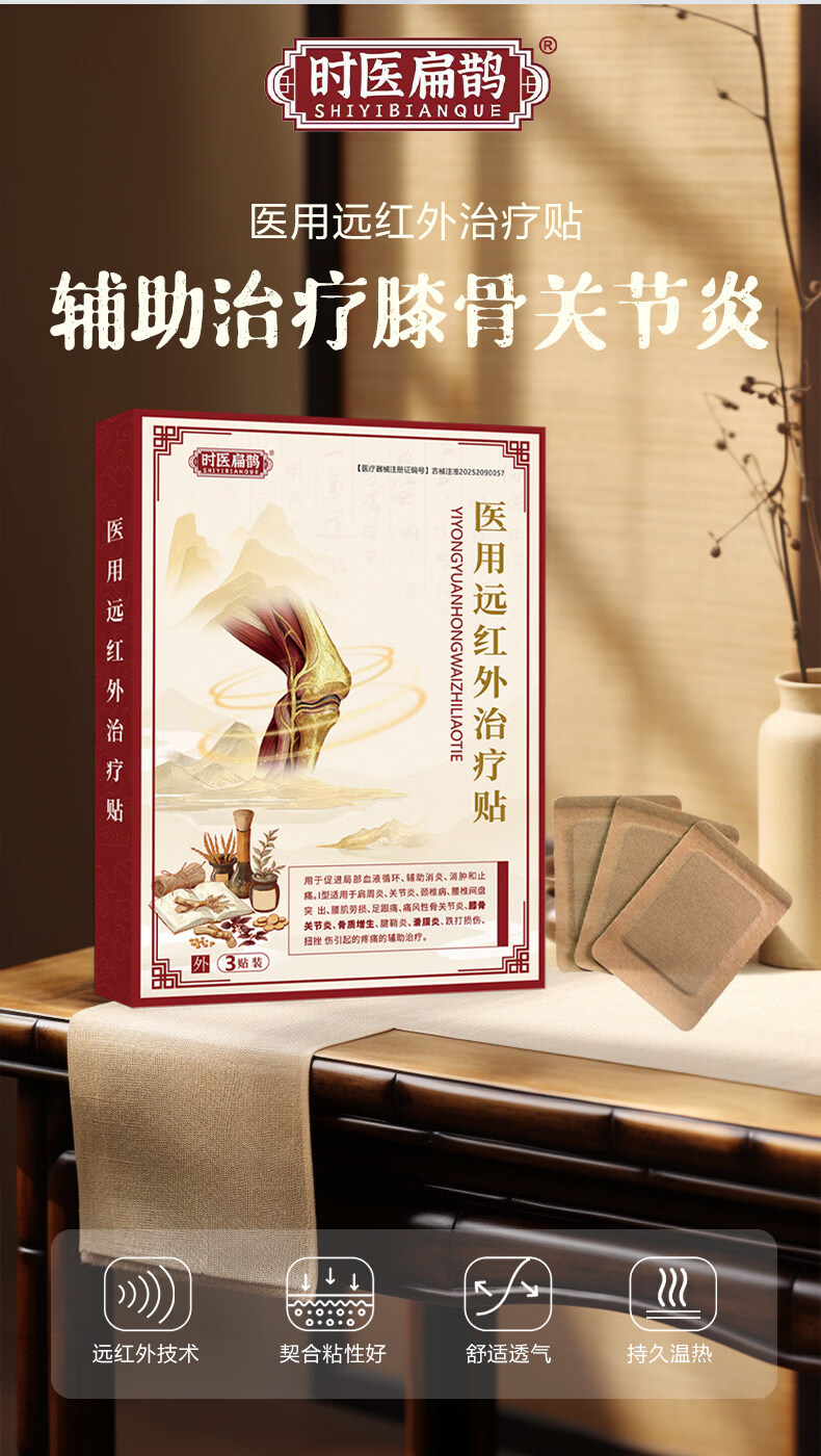 时医扁鹊远红外理疗贴半月板损伤专用贴膏膝盖滑膜炎膏药贴 五盒装