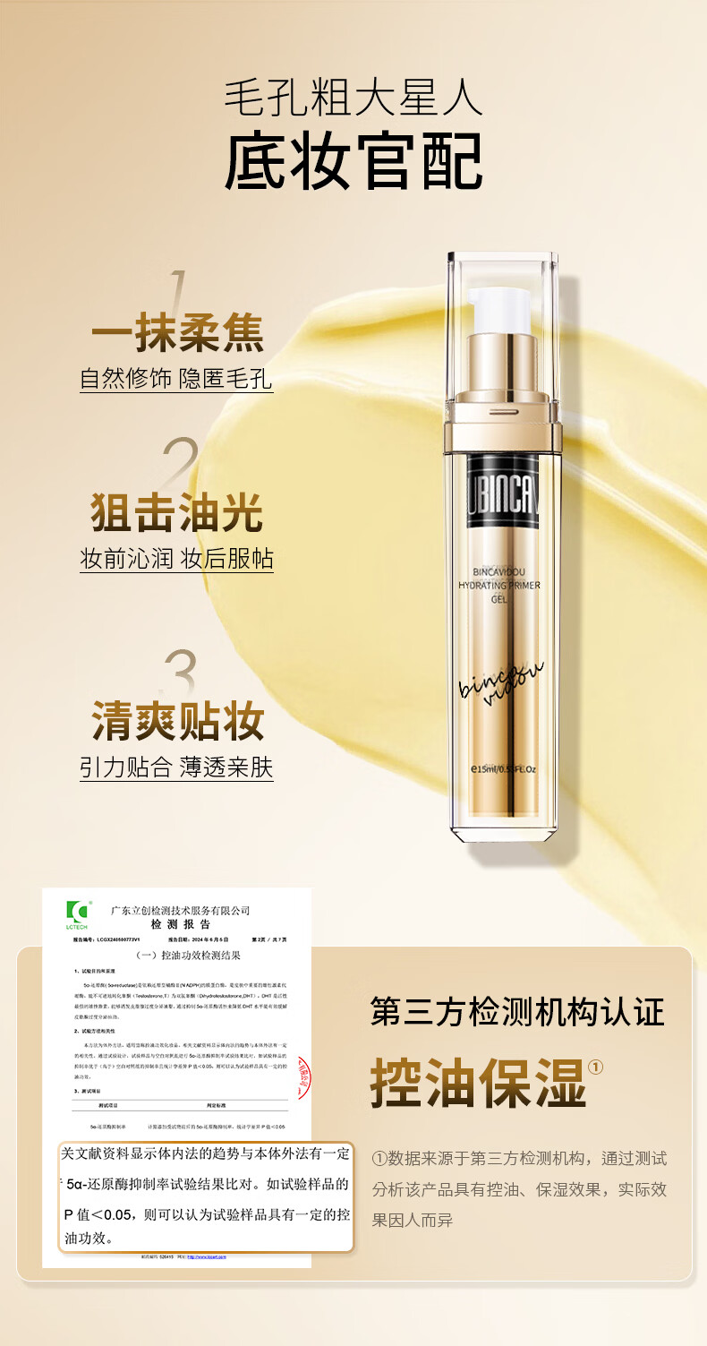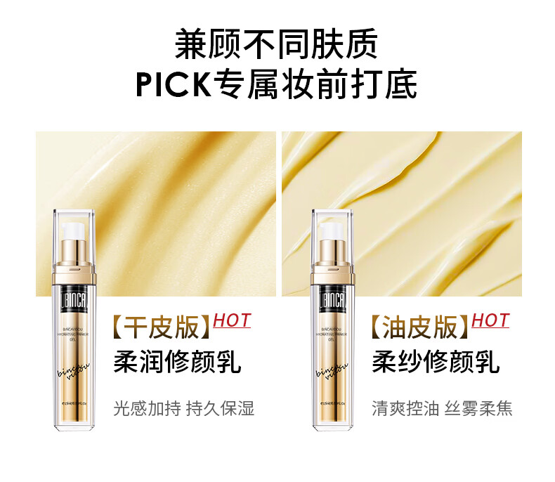 卞卡(BINCA VIDOU)柔纱修颜乳 清爽丝滑淡黄色妆前打底干皮油皮修颜液 新年礼物 卞卡柔纱修颜乳(油皮款)