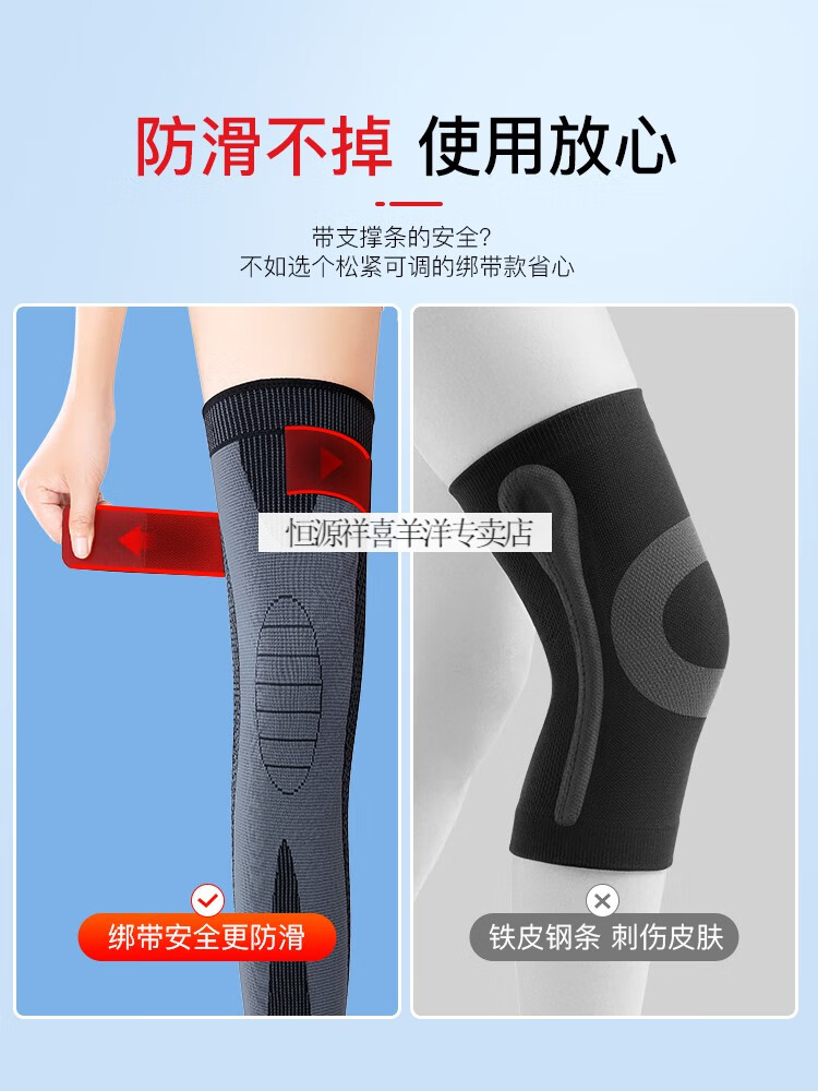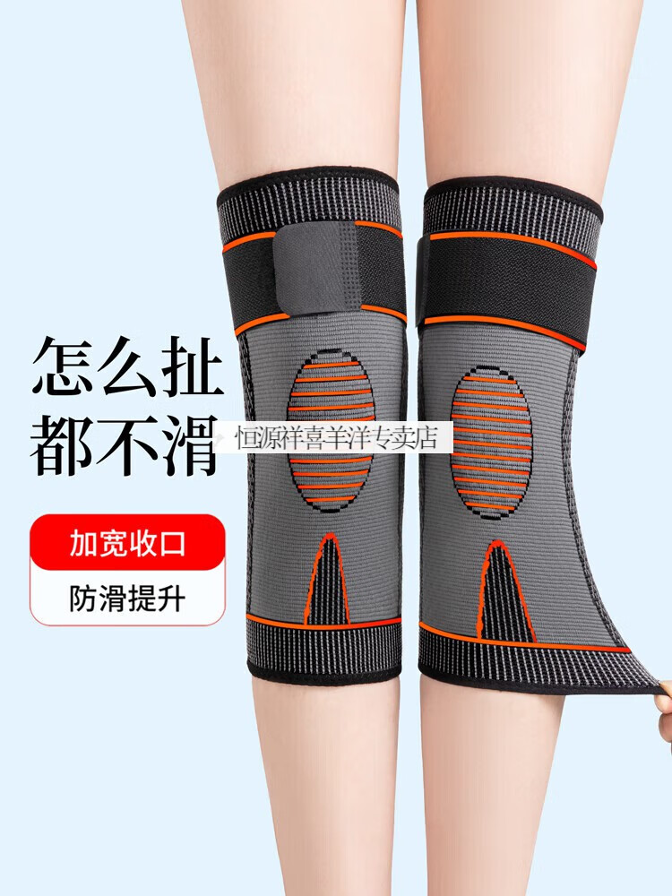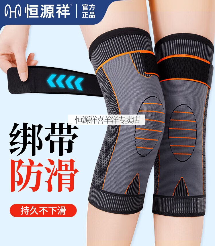 恒源祥夏季绑带护膝保暖膝盖运动护具跑步防下滑老年人男女膝关节 夏季短款-灰色 XL码 ( 140-160斤 )