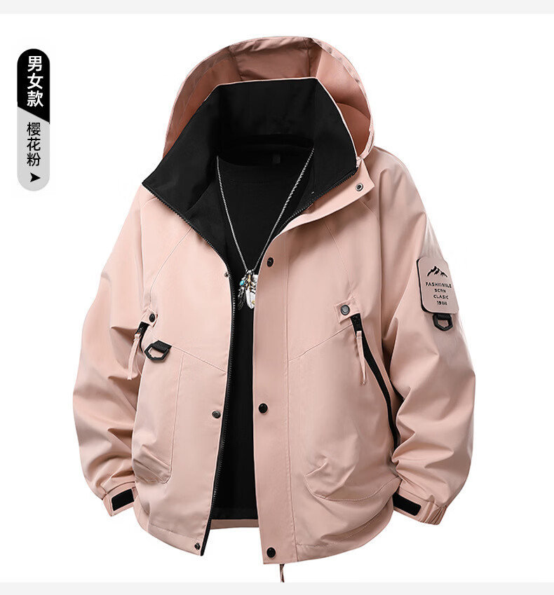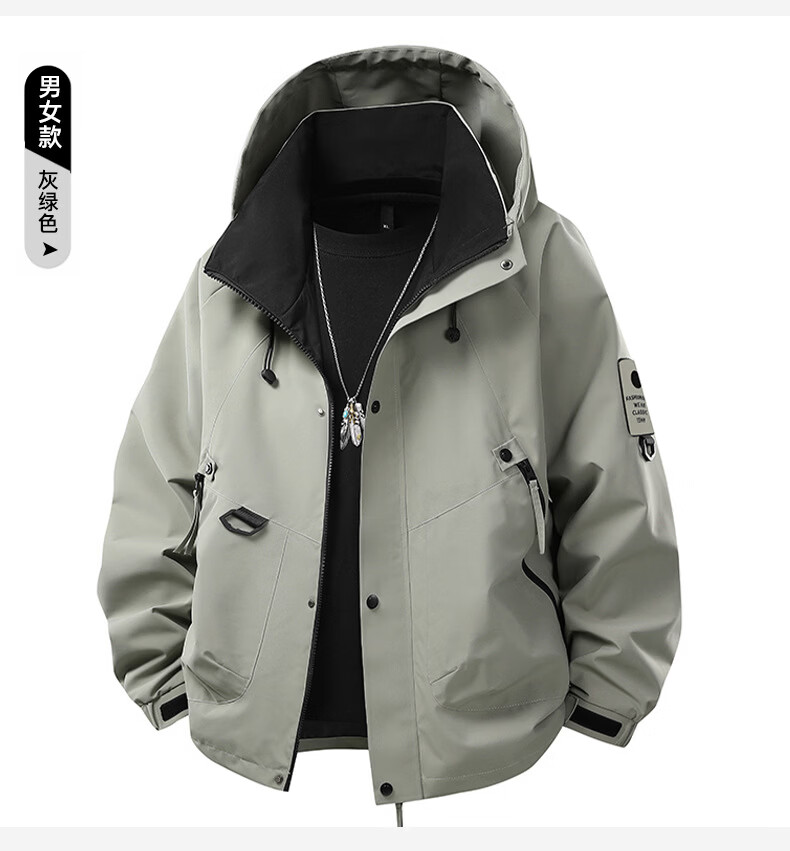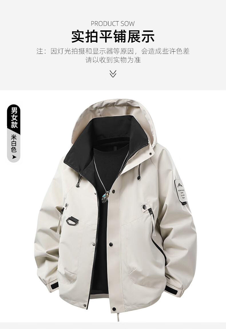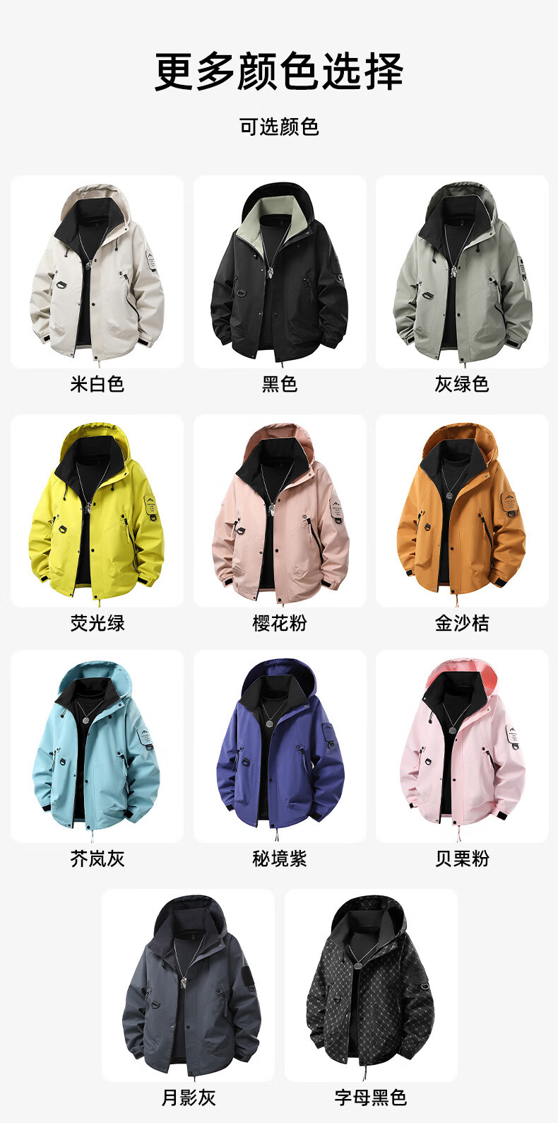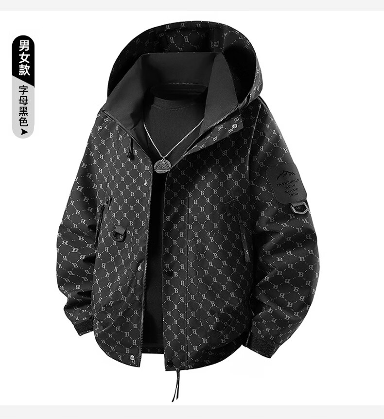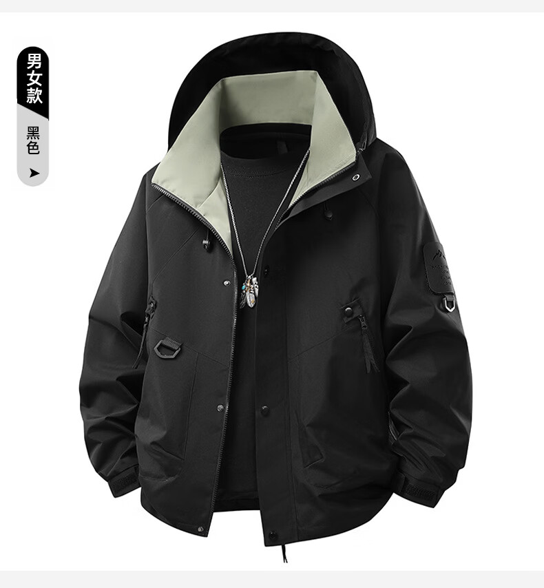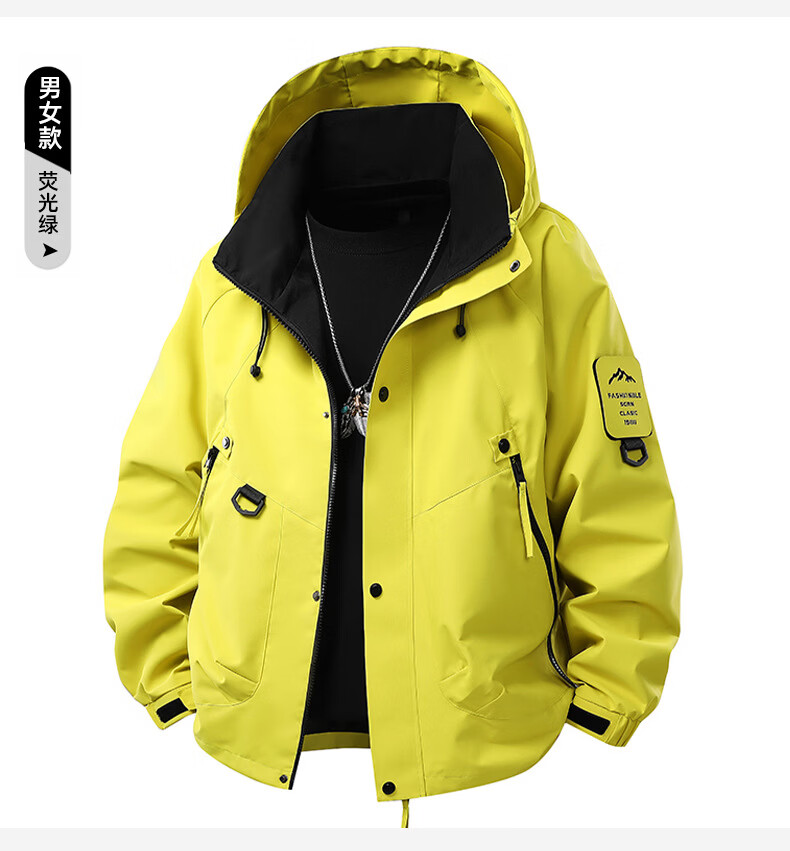 绿蜜蜂【多巴胺色系秋季男女同款美式宽松防风冲锋衣户外潮流外套805 字母黑 3XL 建议185-210斤