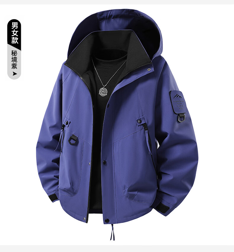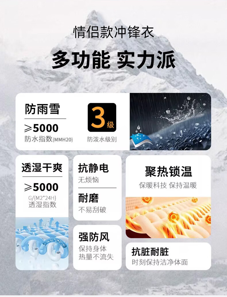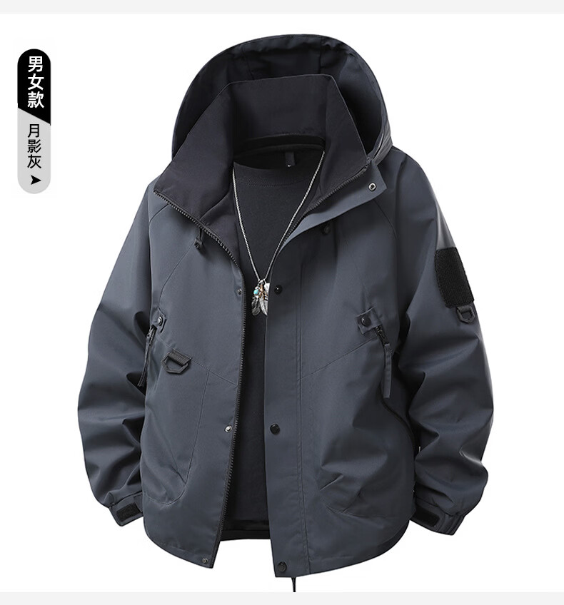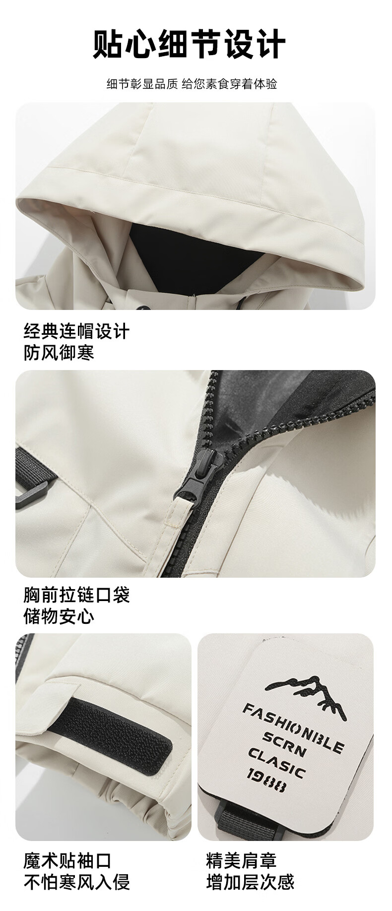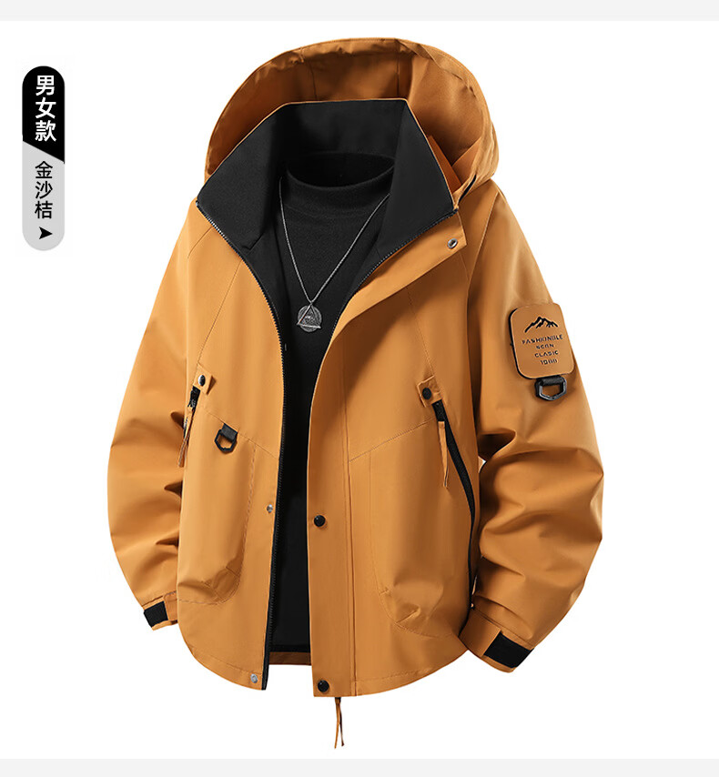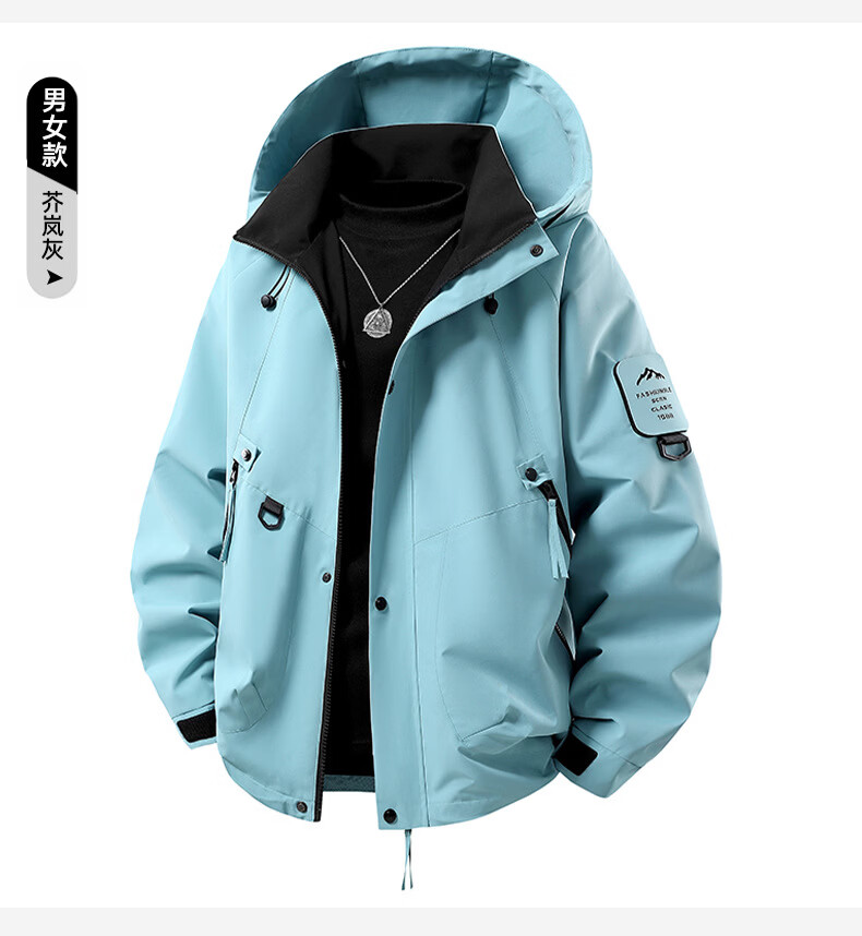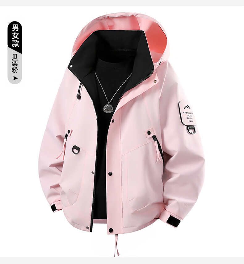 绿蜜蜂【多巴胺色系秋季男女同款美式宽松防风冲锋衣户外潮流外套805 字母黑 3XL 建议185-210斤