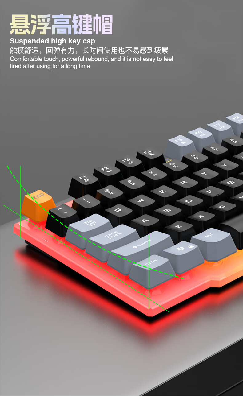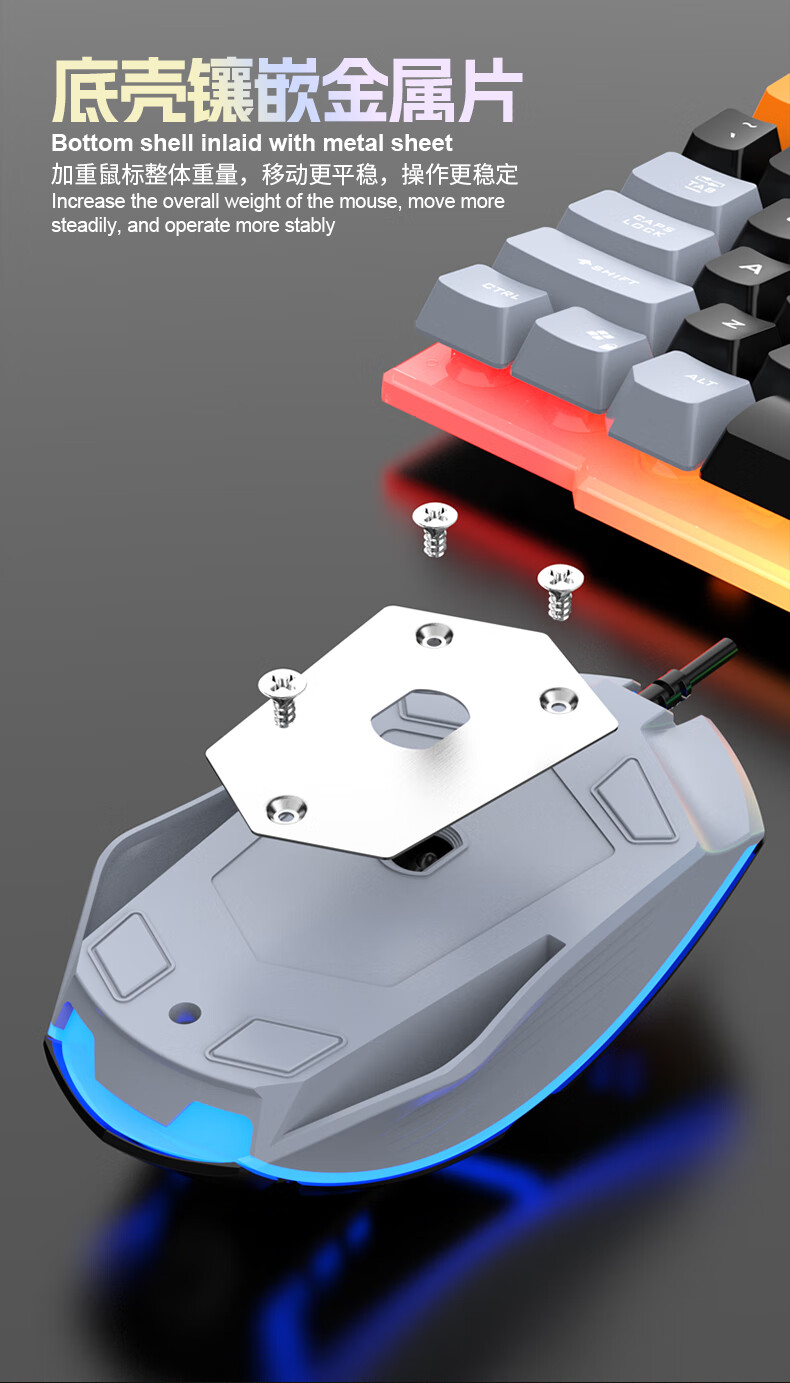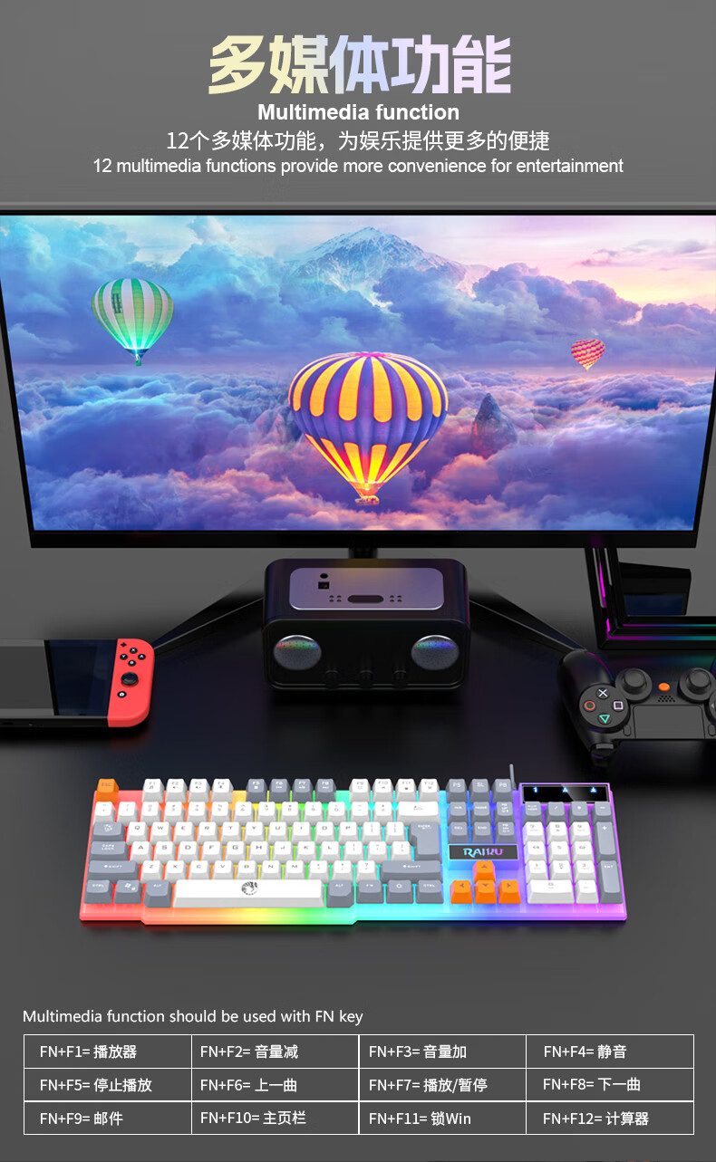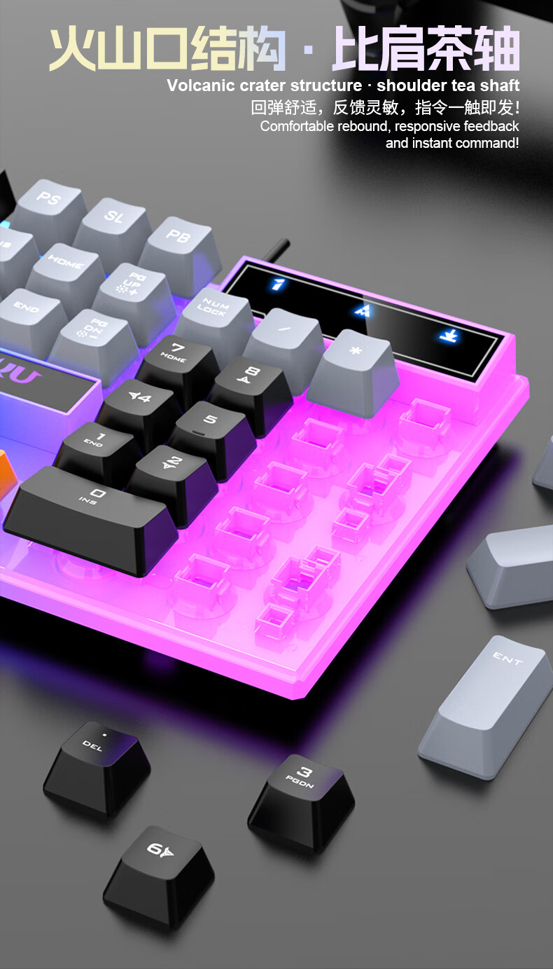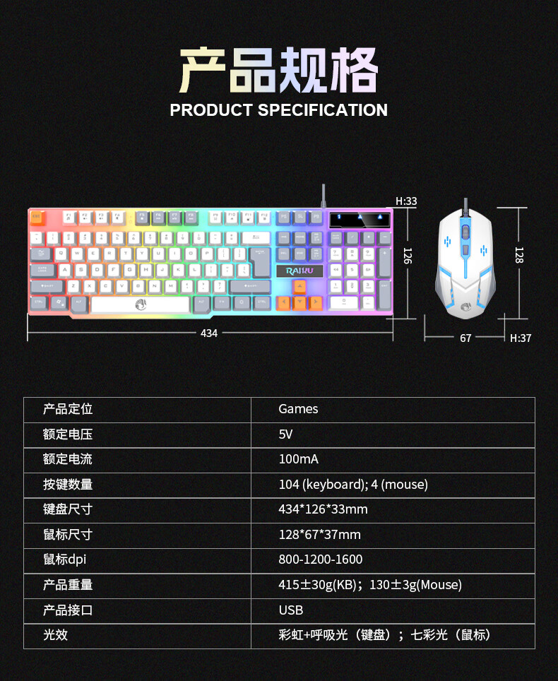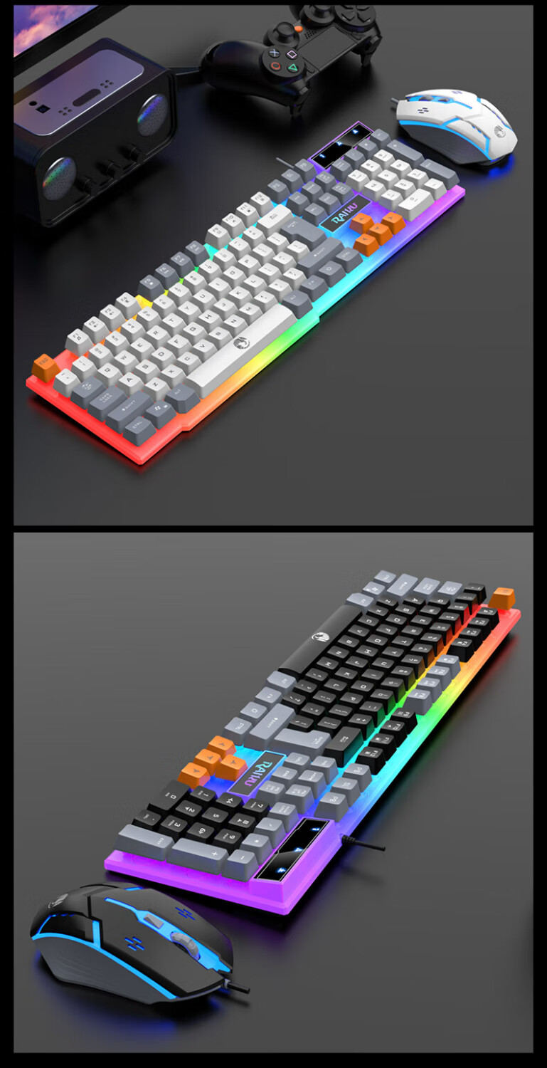 雷魁有线USB键盘鼠标套装游戏电竞笔记本电脑家用炫光时尚魅惑三拼色悬浮键帽多媒体按键机械手感雷魁 键鼠套装【机械手感三拼色背光】T26_黑灰