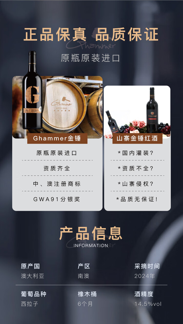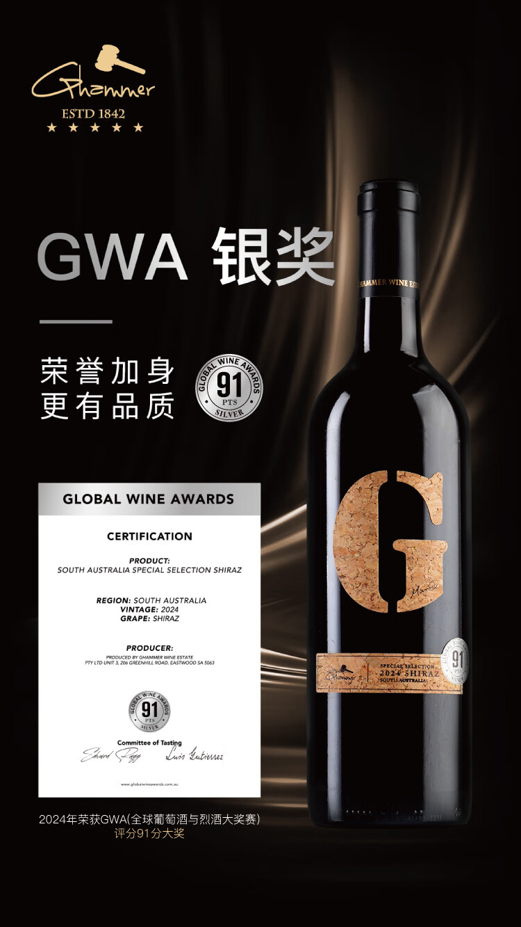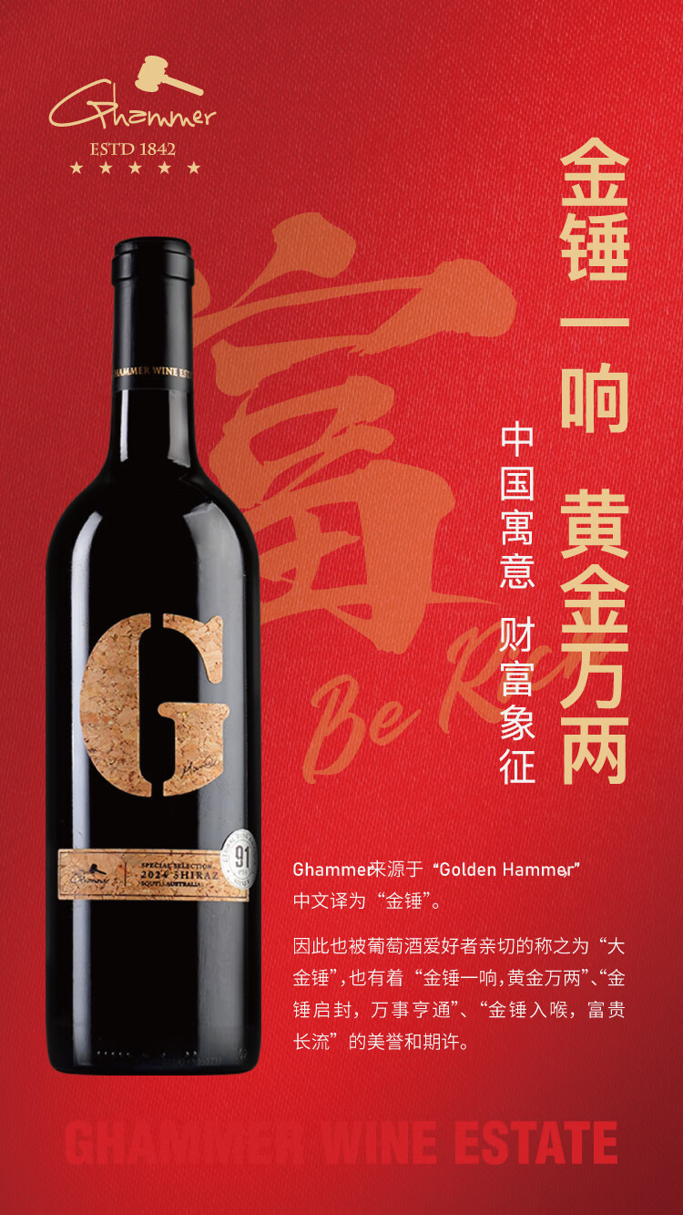 金锤大G干红葡萄酒澳大利亚原瓶进口高端红酒团圆聚会送礼礼盒整箱 单支礼袋/1瓶装