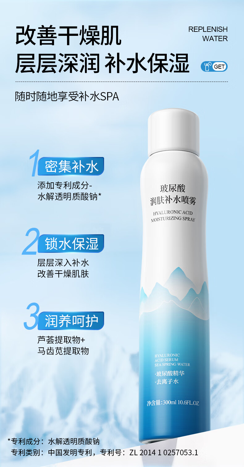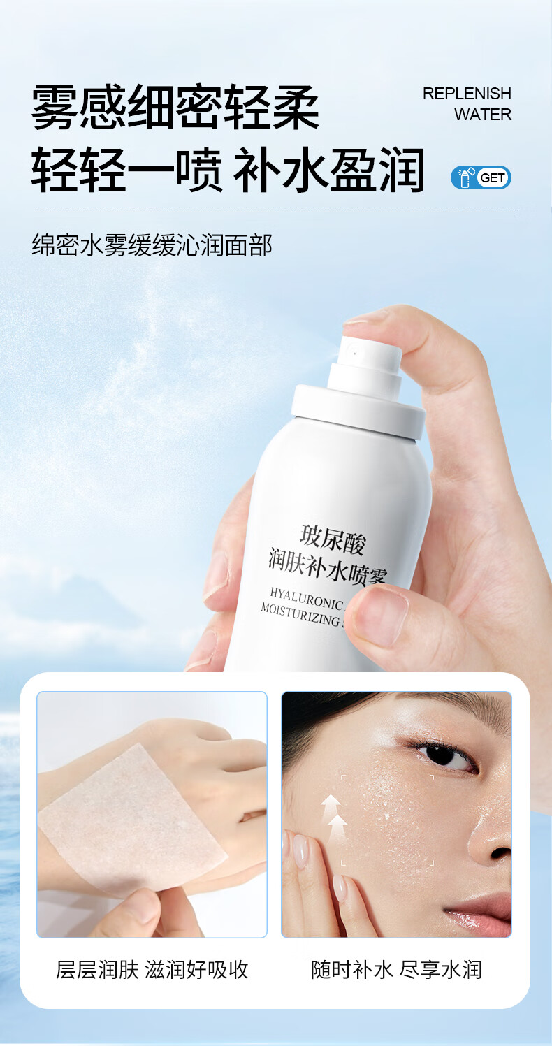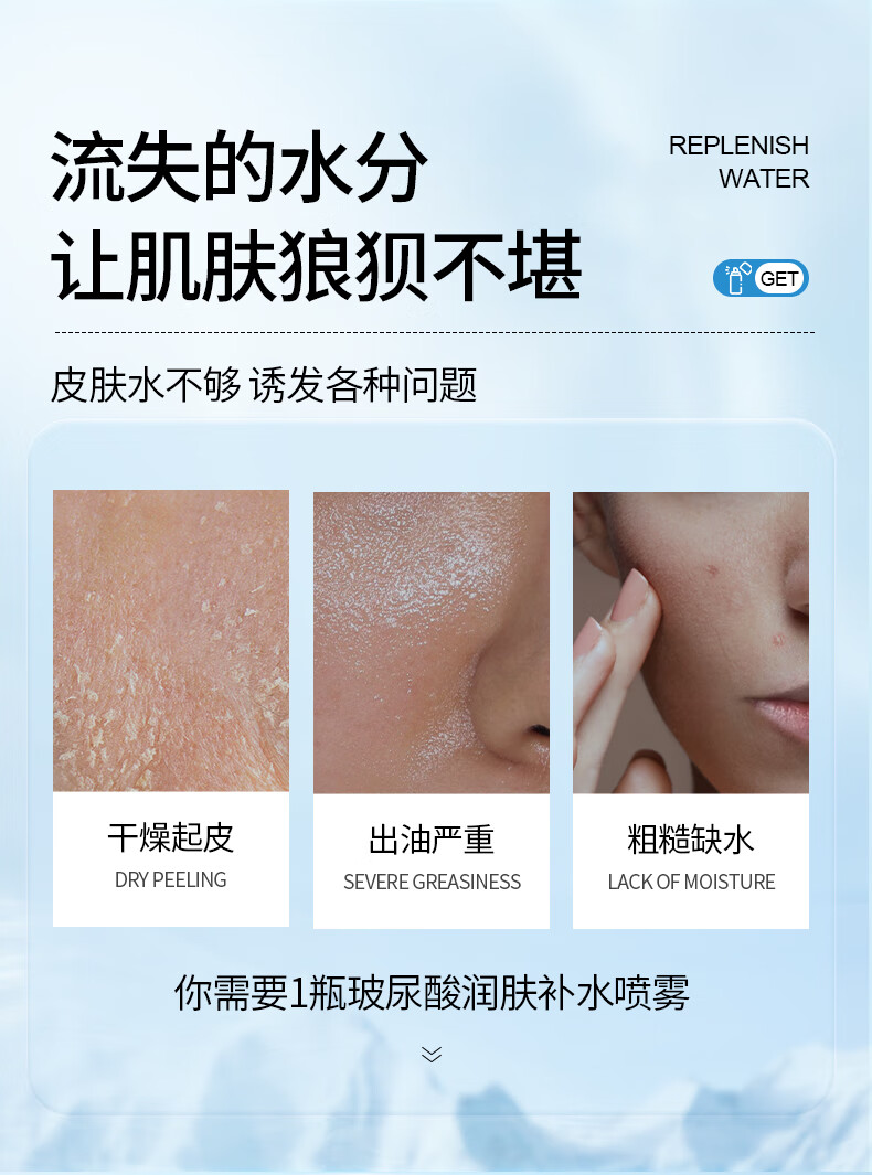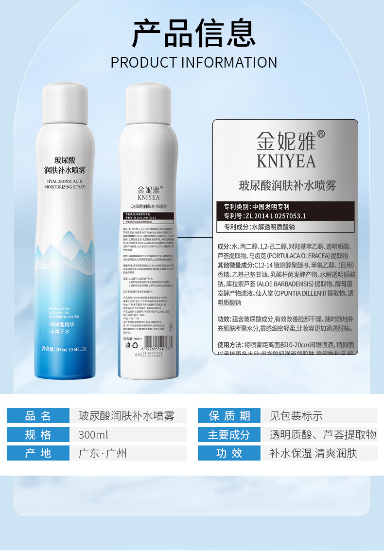 金妮雅(KNIYEA)玻尿酸补水喷雾保湿爽肤水滋润肌肤化妆水学生党男女通用护肤水 玻尿酸补水喷雾300mlX3瓶