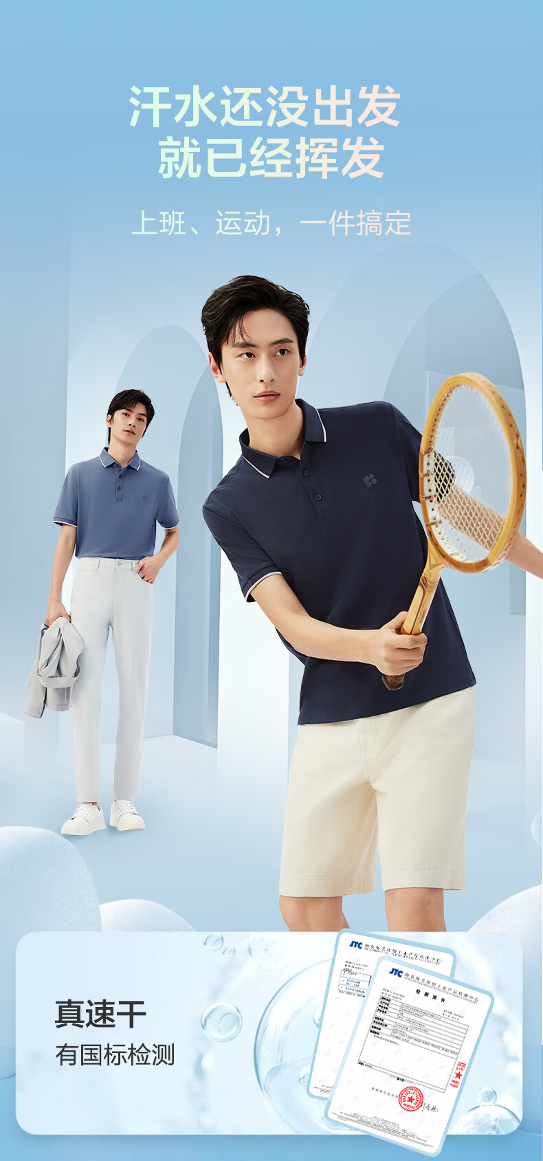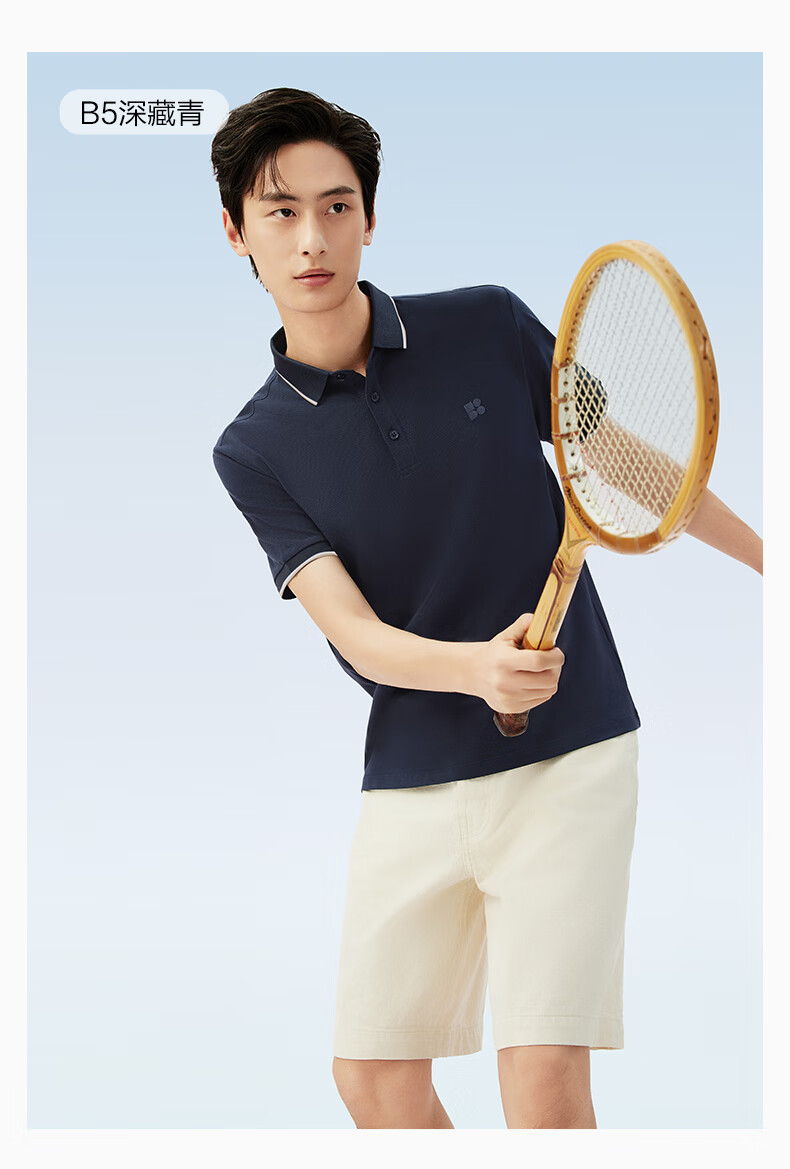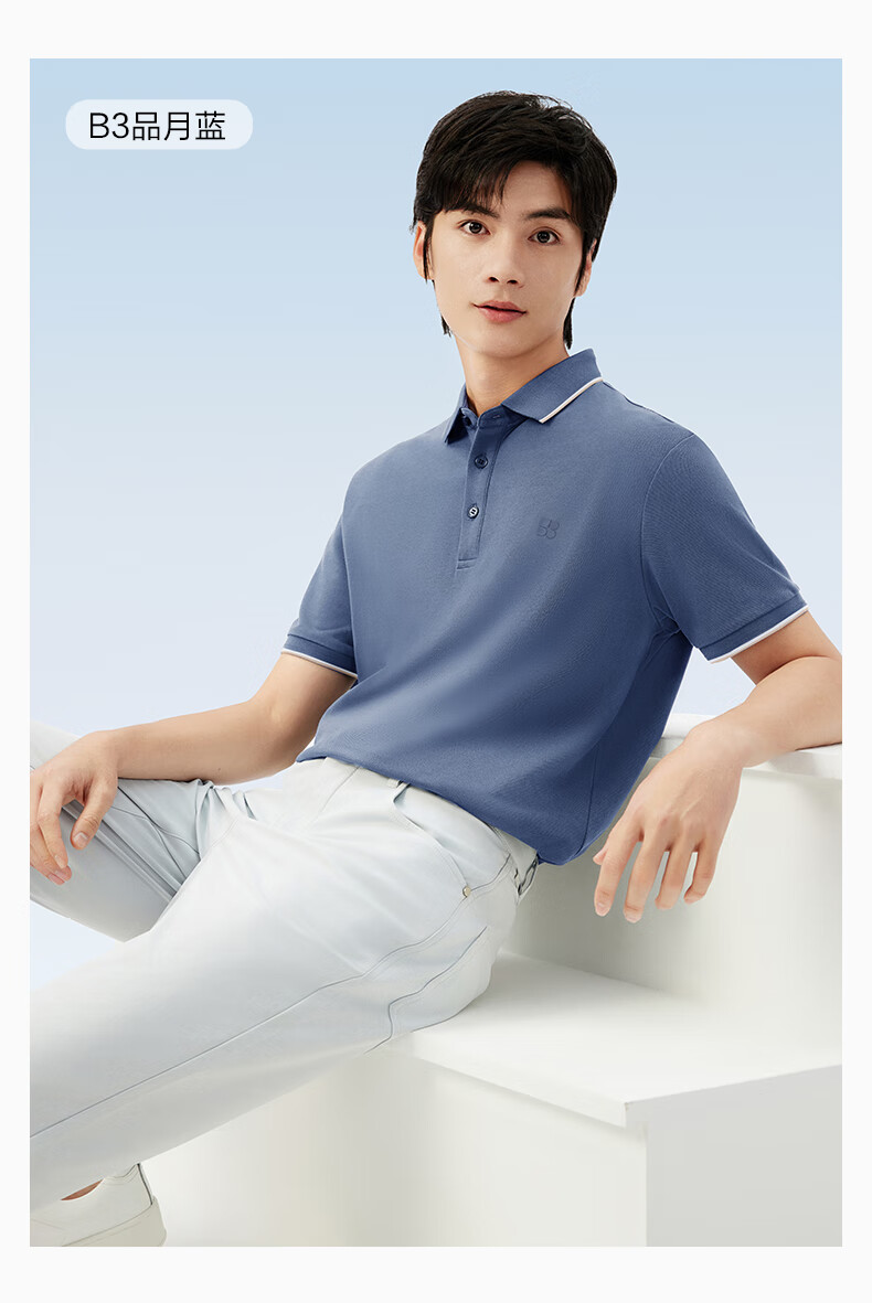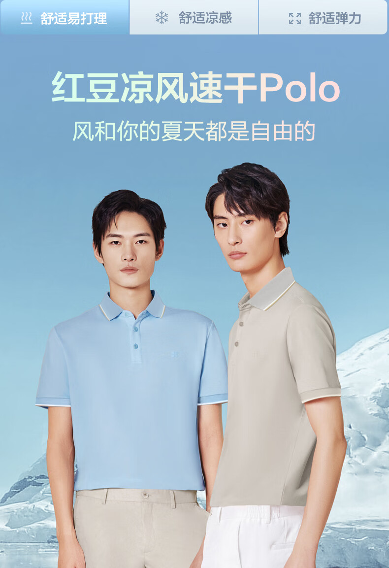 红豆短袖polo衫男【凉感吸湿速干】新品休闲polo短袖男翻领T恤送男友 A1晴山蓝 XL 180/100B (建议140-155斤)