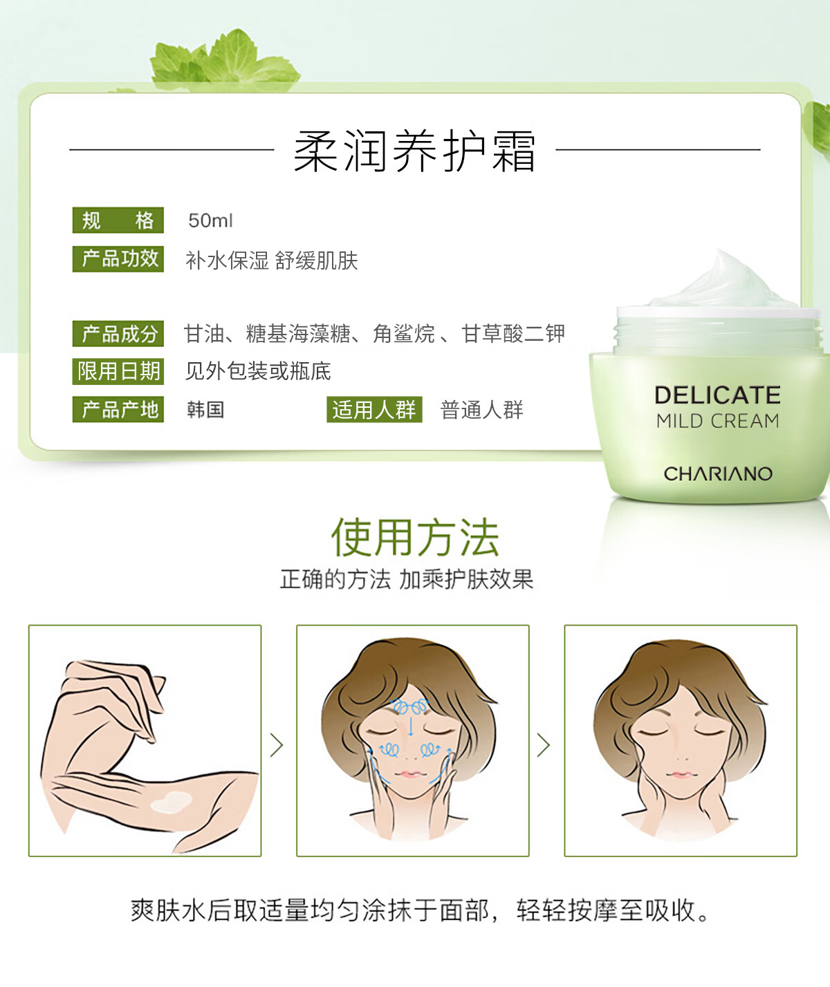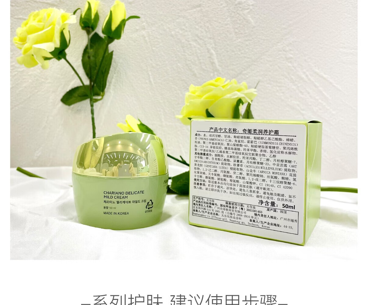 奇姬韩国柔润养护霜 舒缓肌肤保湿面霜夏季 舒缓养护霜 50ml