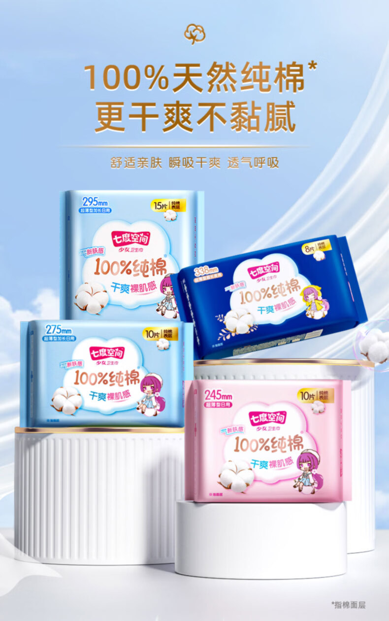 七度空间【任选10包】卫生巾少女薄纯棉卫生巾日用夜用组 优雅338mm4片