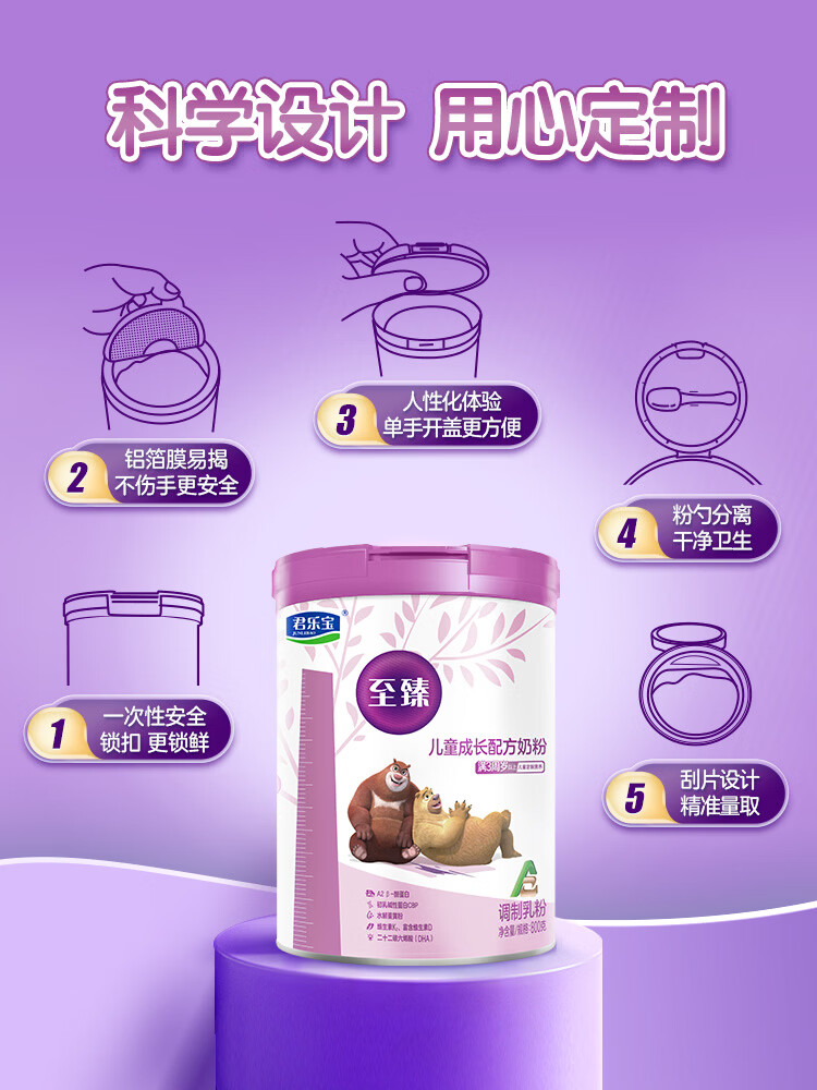 君乐宝奶粉至臻4段A2奶源儿童成长奶粉800克罐装 3周岁以上学生奶粉四段 至臻4段800克【a2奶源】