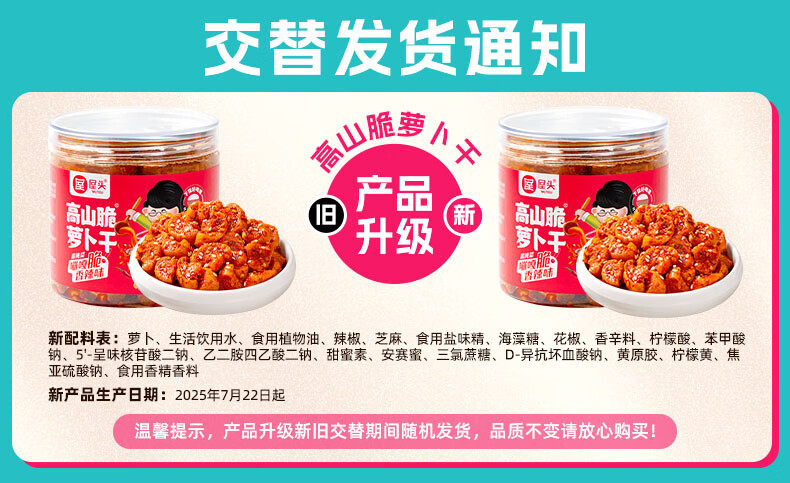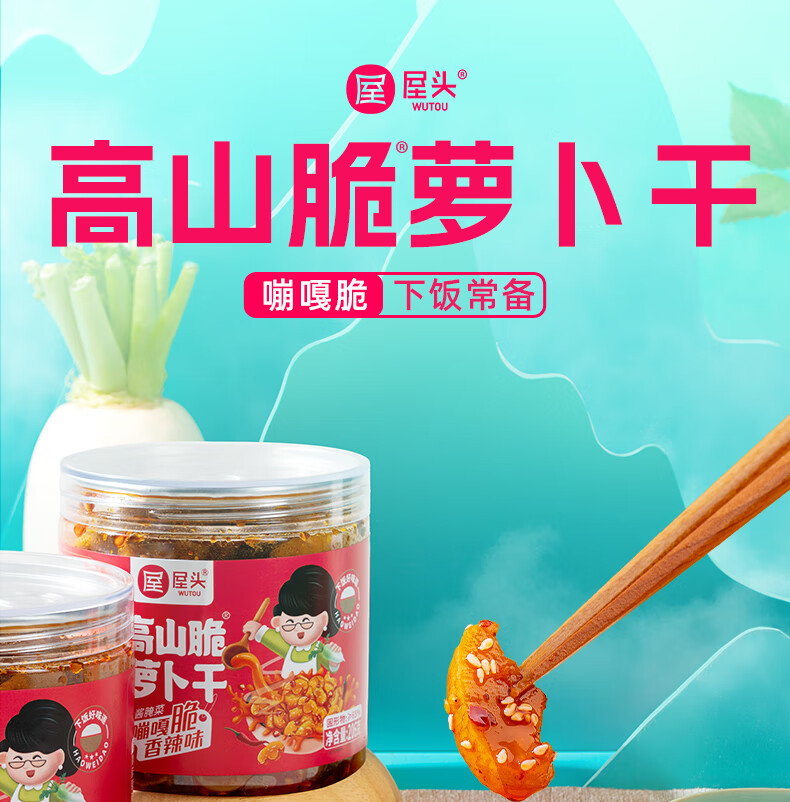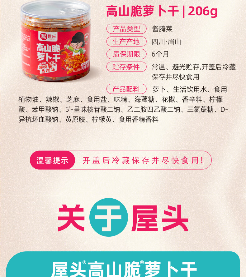 屋头高山脆萝卜干206g*1 香辣萝卜咸菜下饭菜拌饭拌面泡咸菜酱腌菜