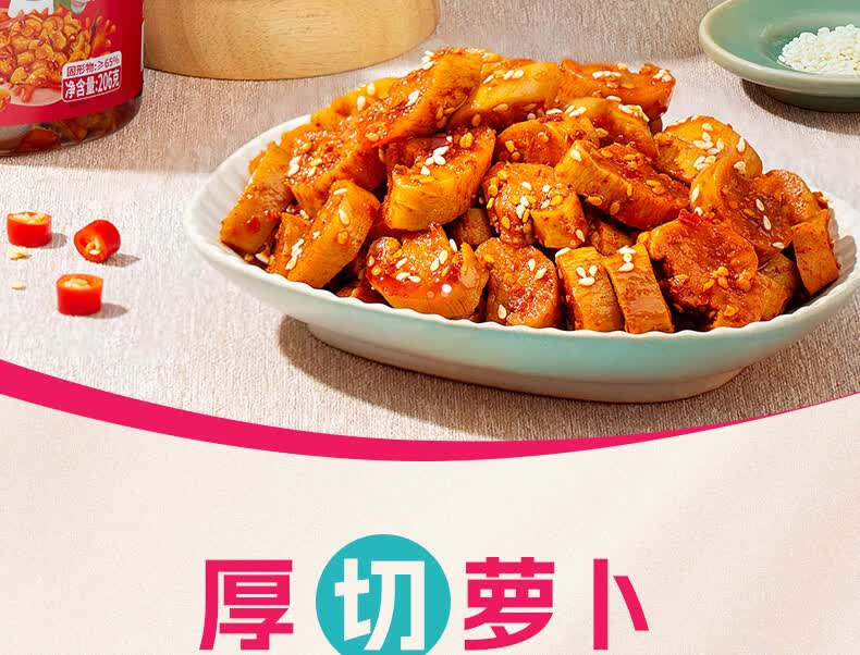 农乡临麻辣萝卜228g山东萝卜腌制开胃下饭酱菜萝卜干开罐即食 麻辣萝卜干罐装【228g*2】