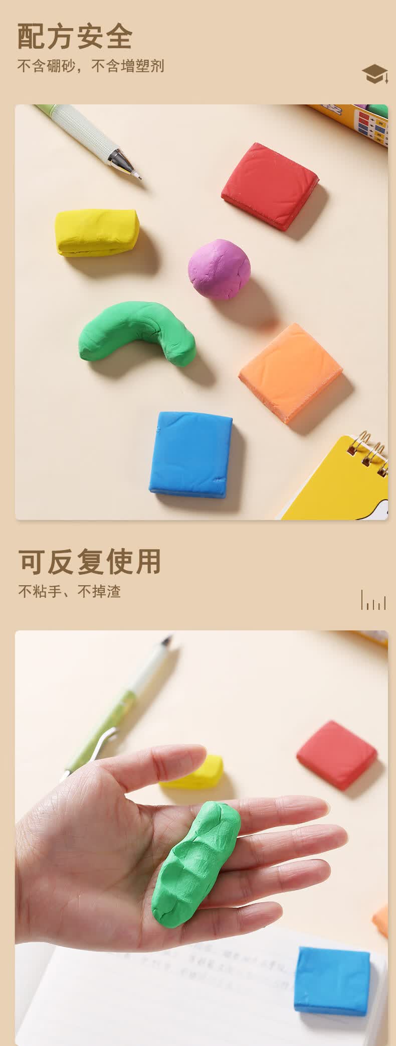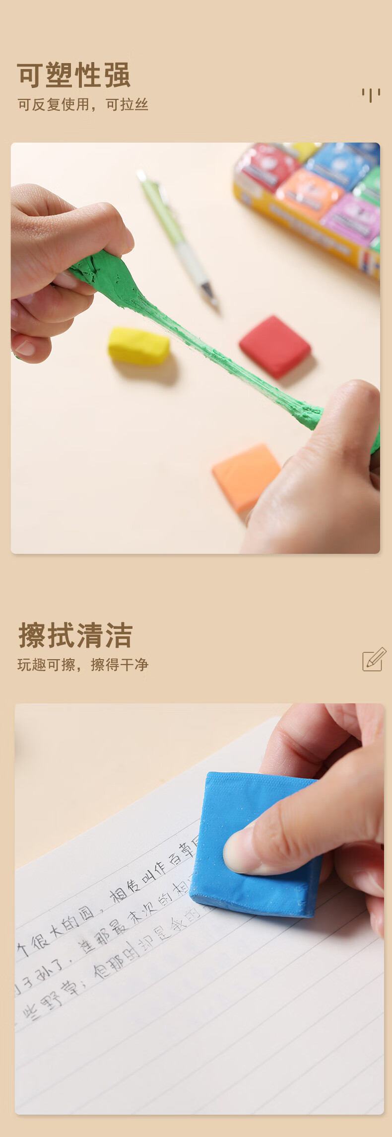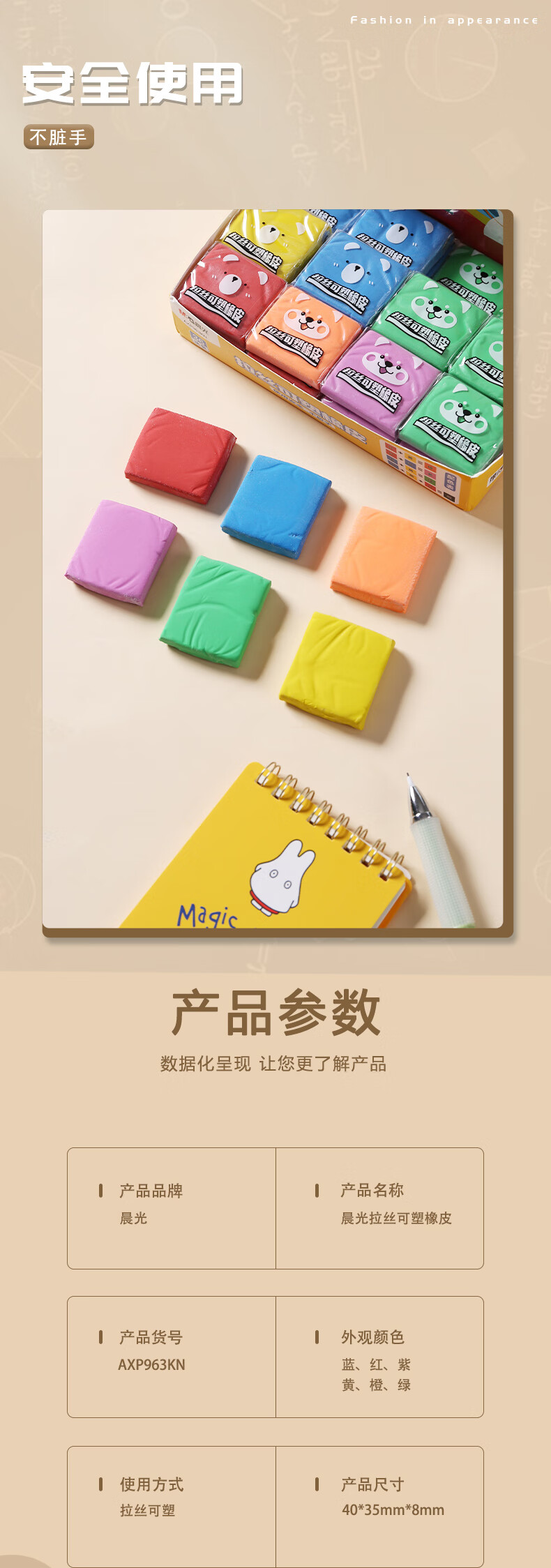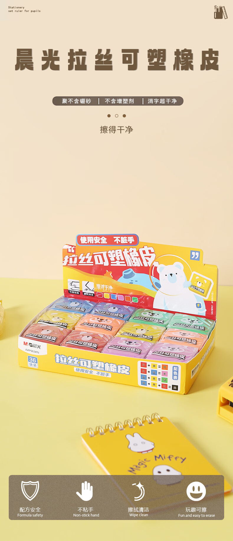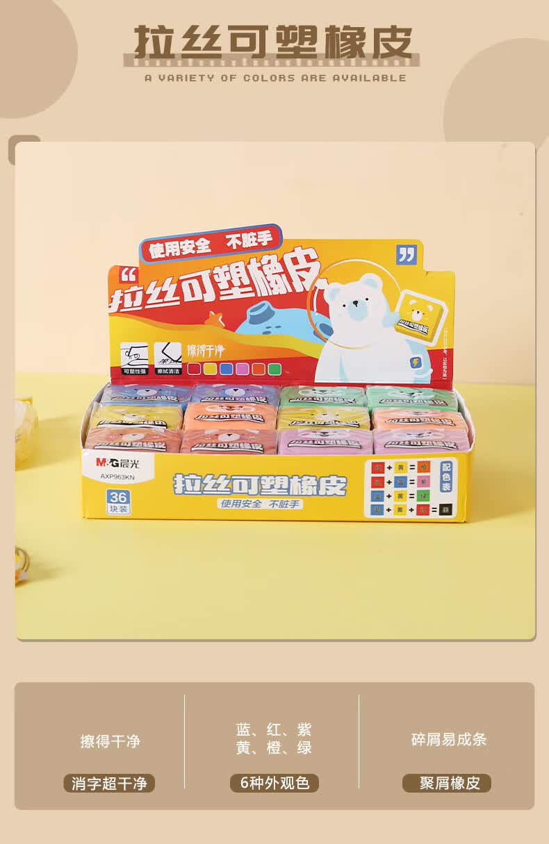 晨光(M&G)拉丝可塑橡皮擦学生擦的干净绘图橡皮不易留痕少屑橡皮颜色随机AXP963KN 6个装