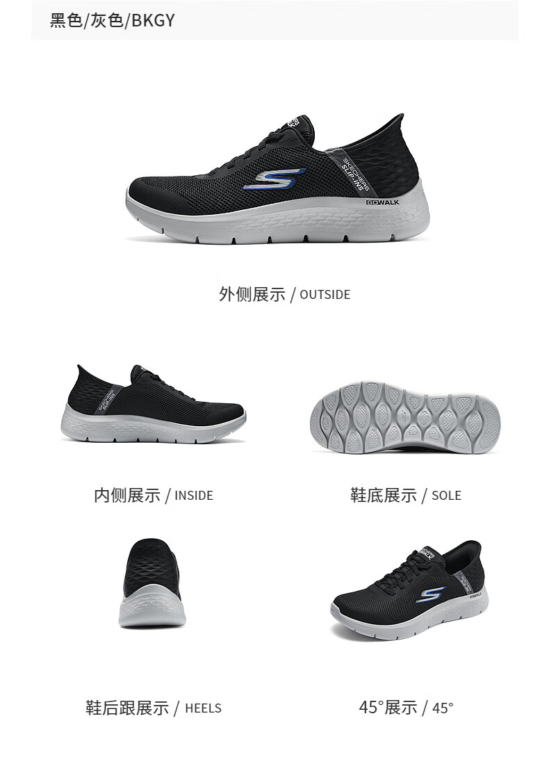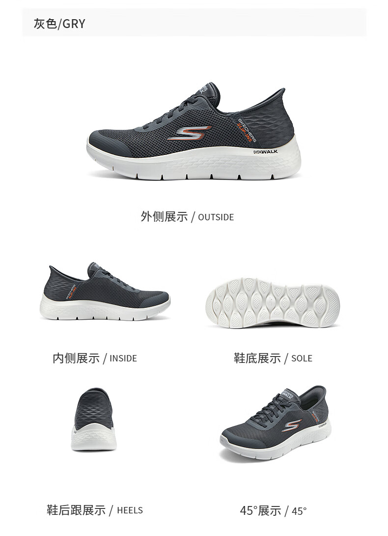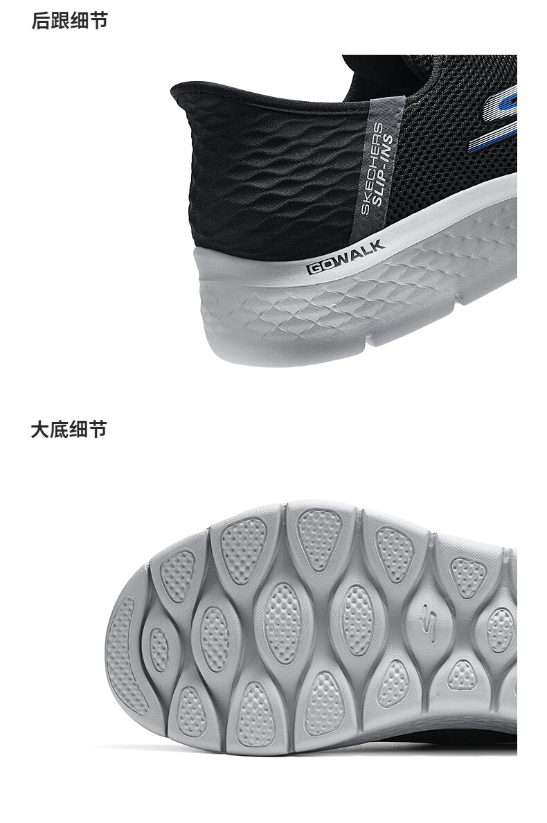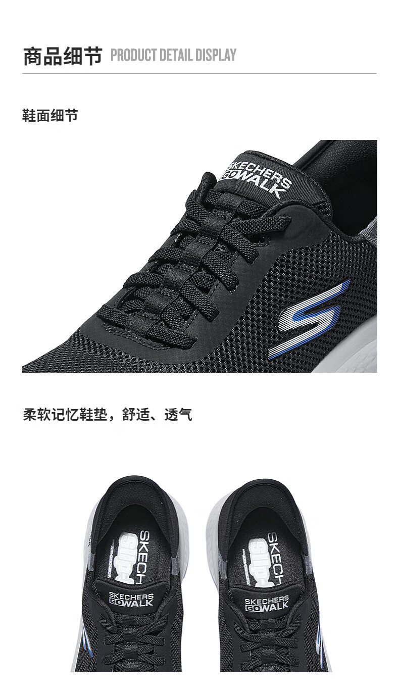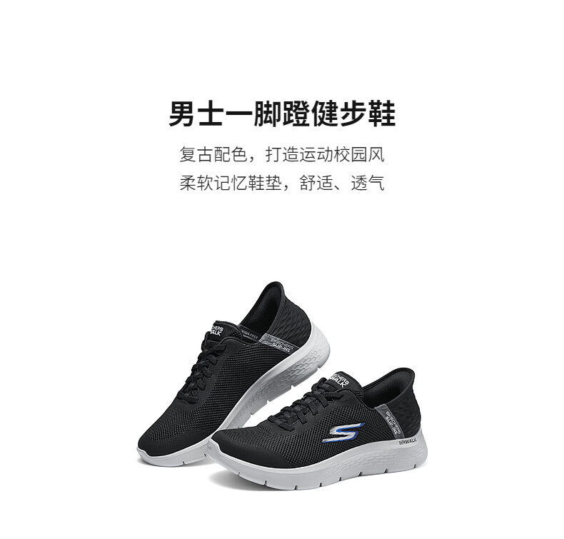 斯凯奇(Skechers)男士闪穿鞋透气网面健步鞋软底运动鞋一脚蹬休闲鞋216324