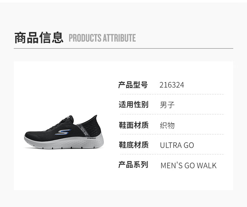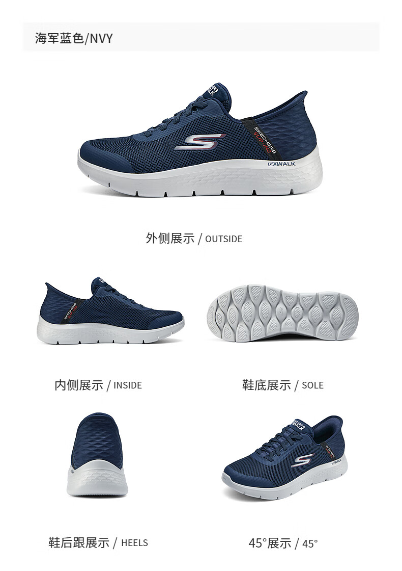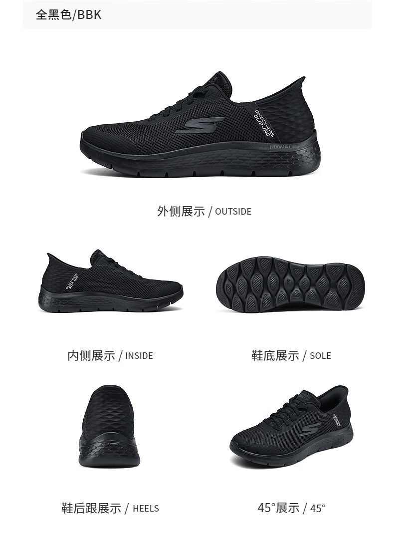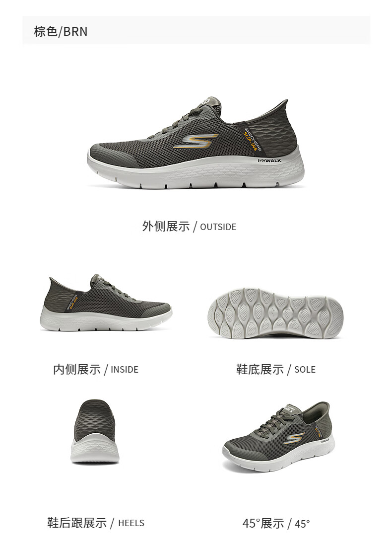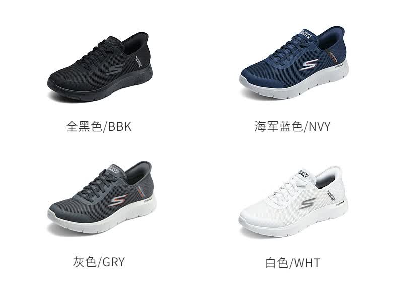 斯凯奇(Skechers)男士闪穿鞋透气网面健步鞋软底运动鞋一脚蹬休闲鞋216324