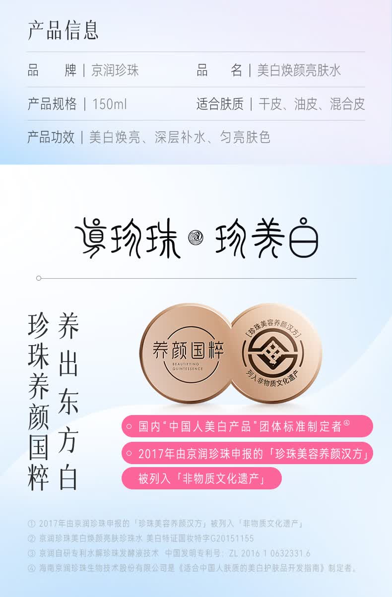 京润珍珠(gNPearl)美白焕颜亮肤水150ml柔肤水爽肤水保湿补水 提亮美白焕颜养白 美白焕颜亮肤水150ml