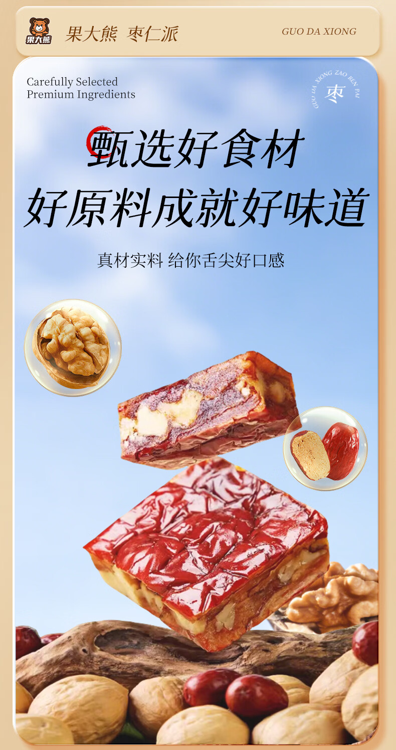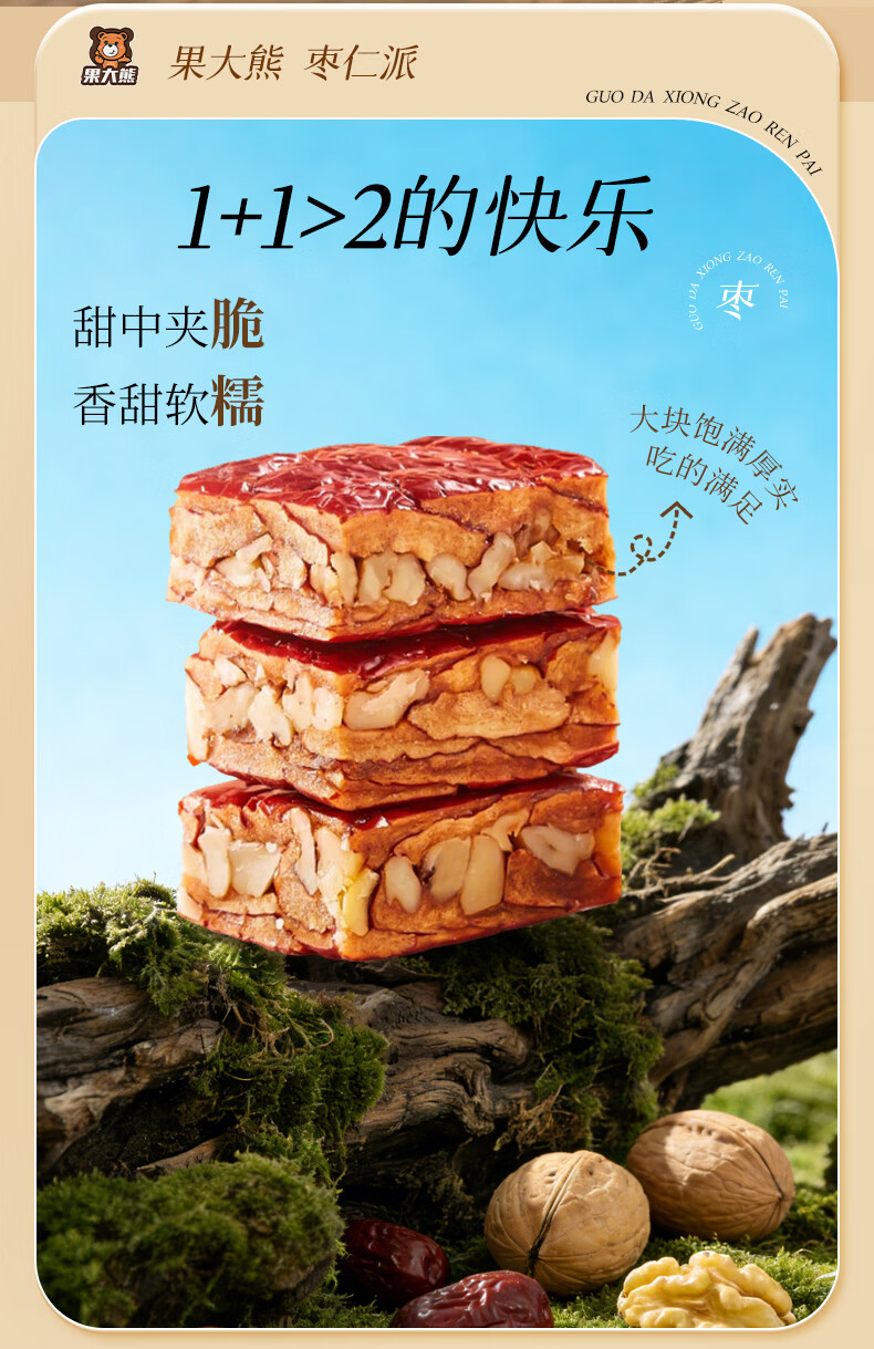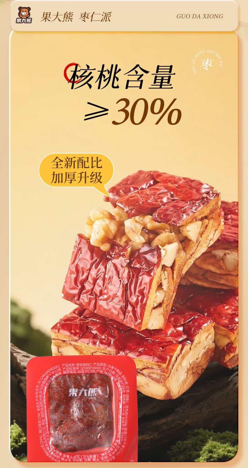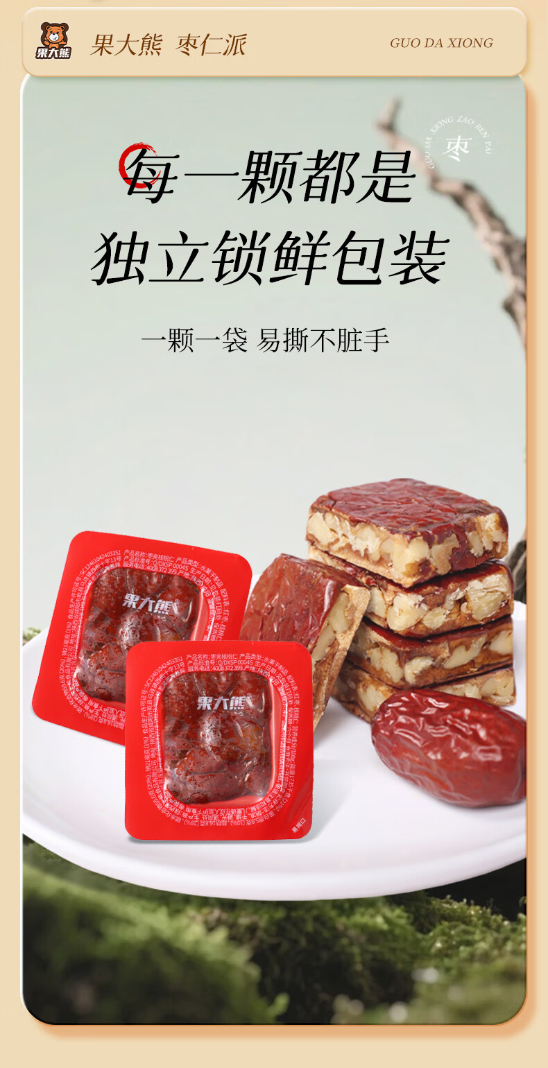 果大熊原味枣仁派新疆红枣独立包装解馋代餐营养休闲小零食春游露营 750g(3袋超值装)