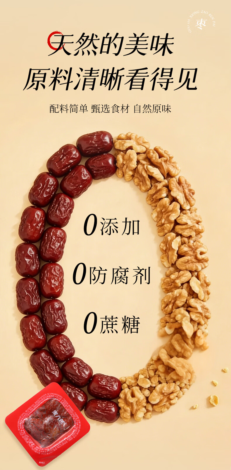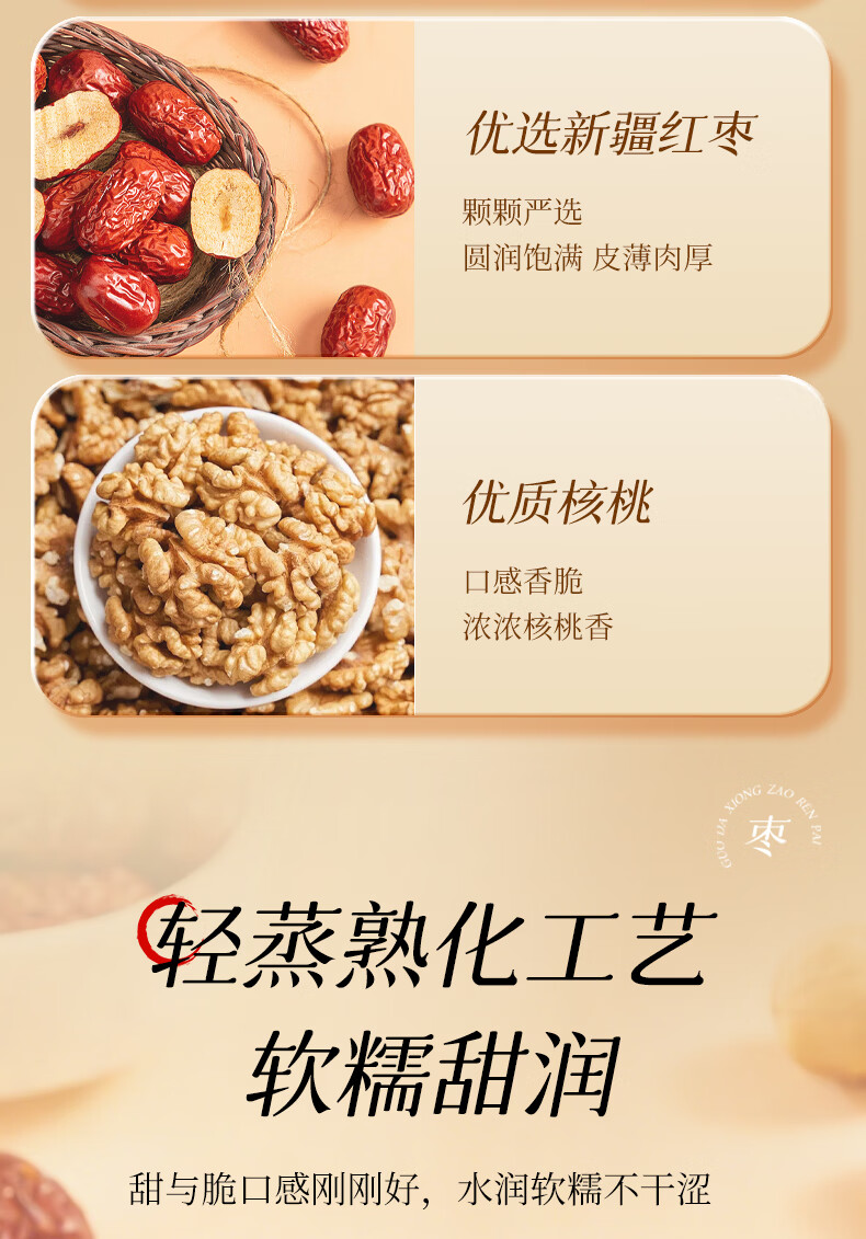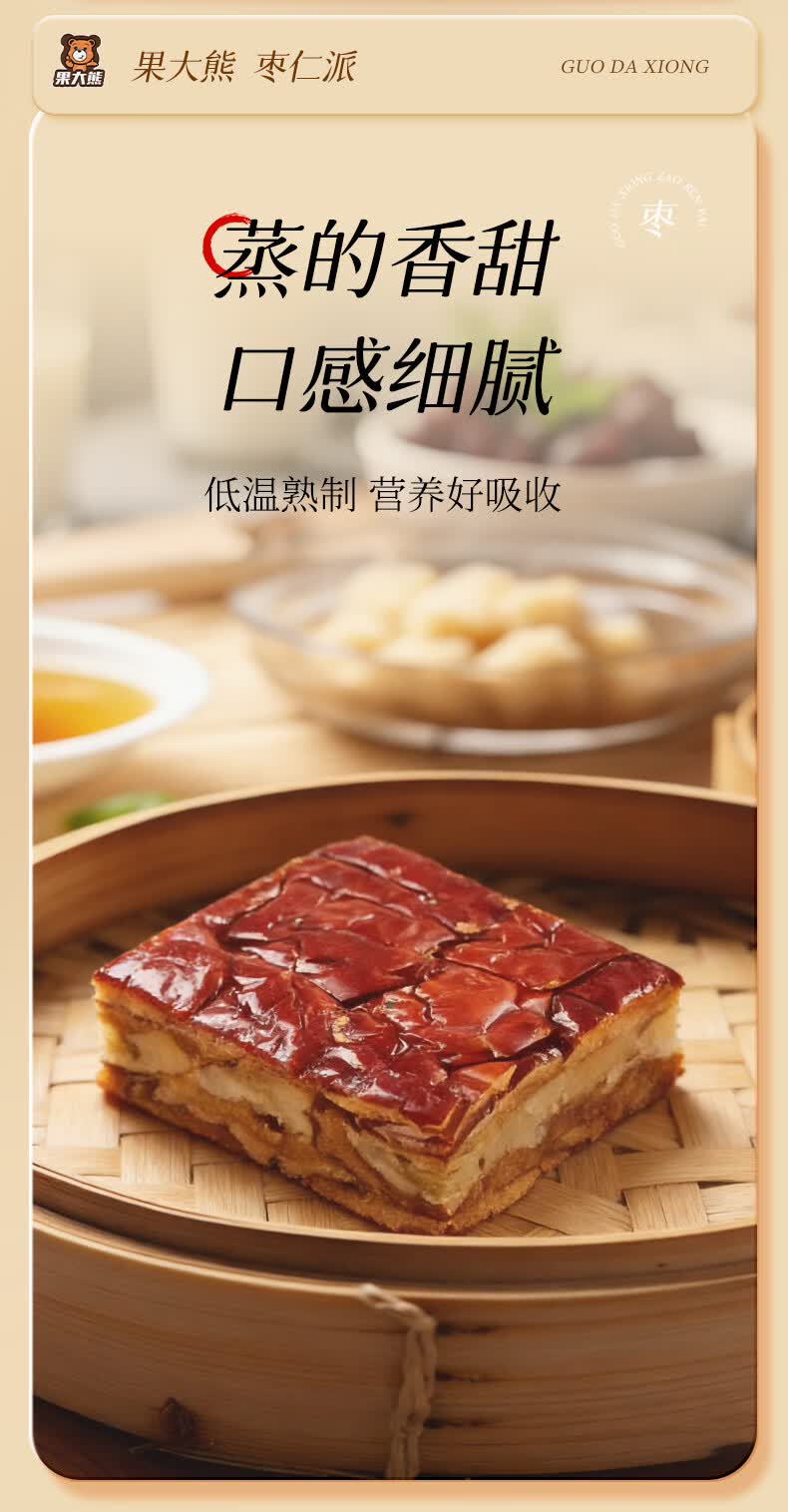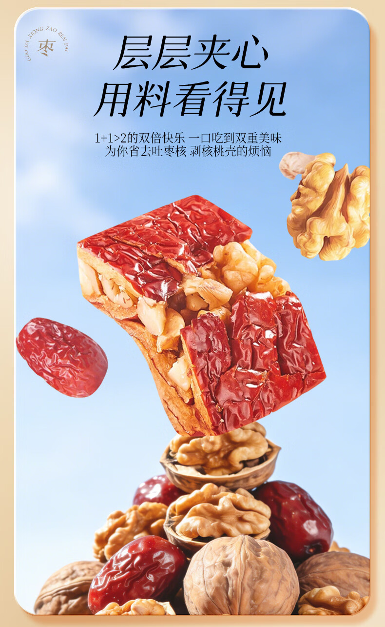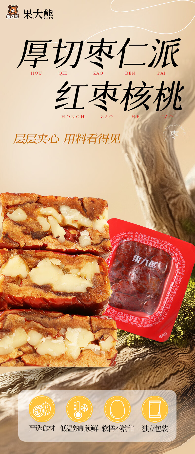 果大熊原味枣仁派新疆红枣独立包装解馋代餐营养休闲小零食春游露营 750g(3袋超值装)
