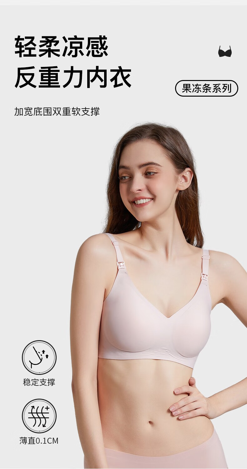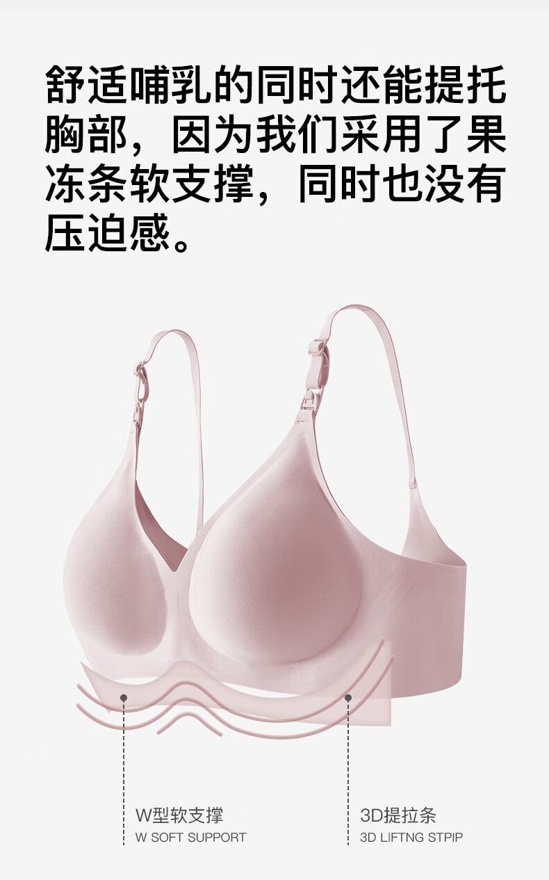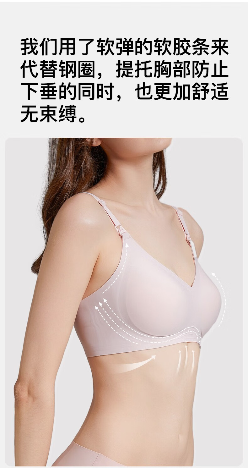 ROVO孕妇哺乳内衣无痕舒适亲肤喂奶内衣聚拢怀孕期专用文胸罩 轻雾粉 M