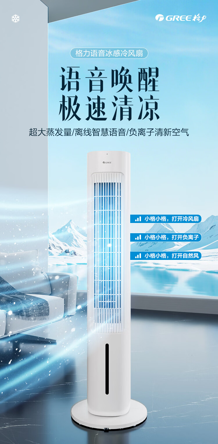 格力【重磅新品/智能语音】家用空调扇冷风扇 负离子净化遥控移动加湿水冷塔扇冷风机冷气扇KS-04X88Dg