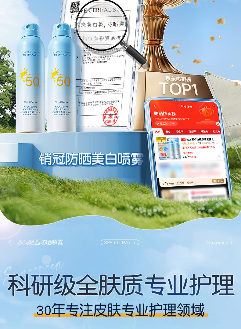 韩方五谷防晒喷雾霜乳男女士高倍防晒防水防汗持久紫外线可上飞机排榜第一