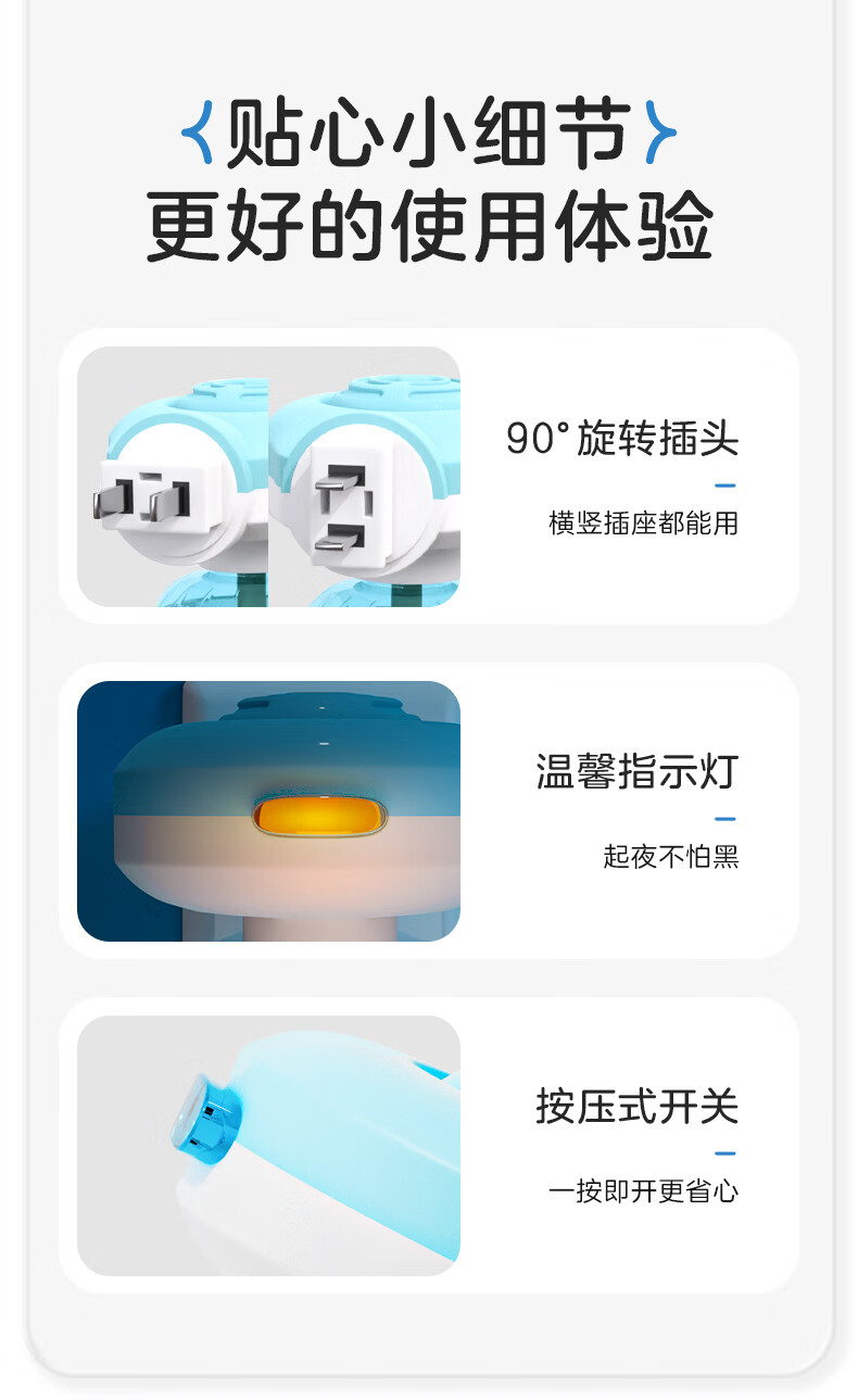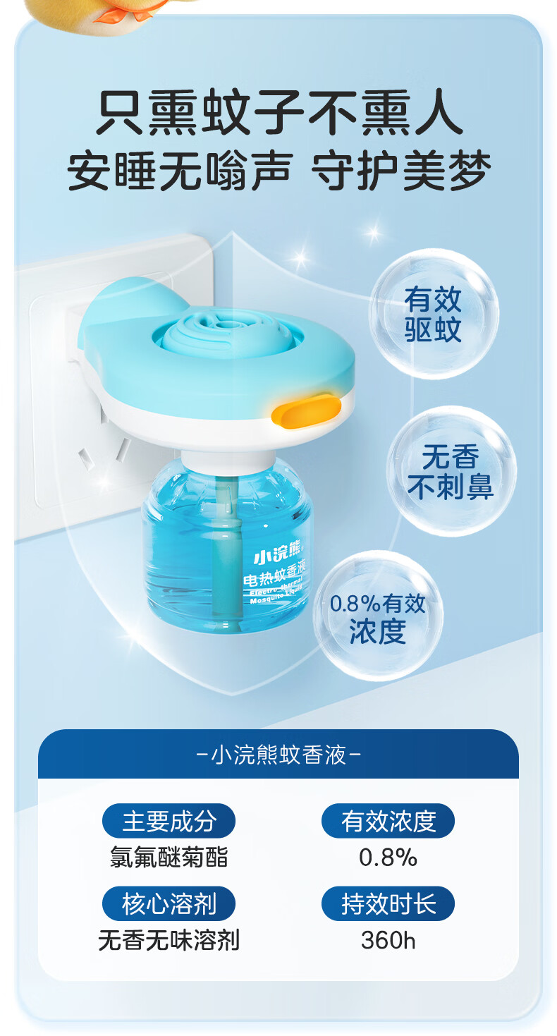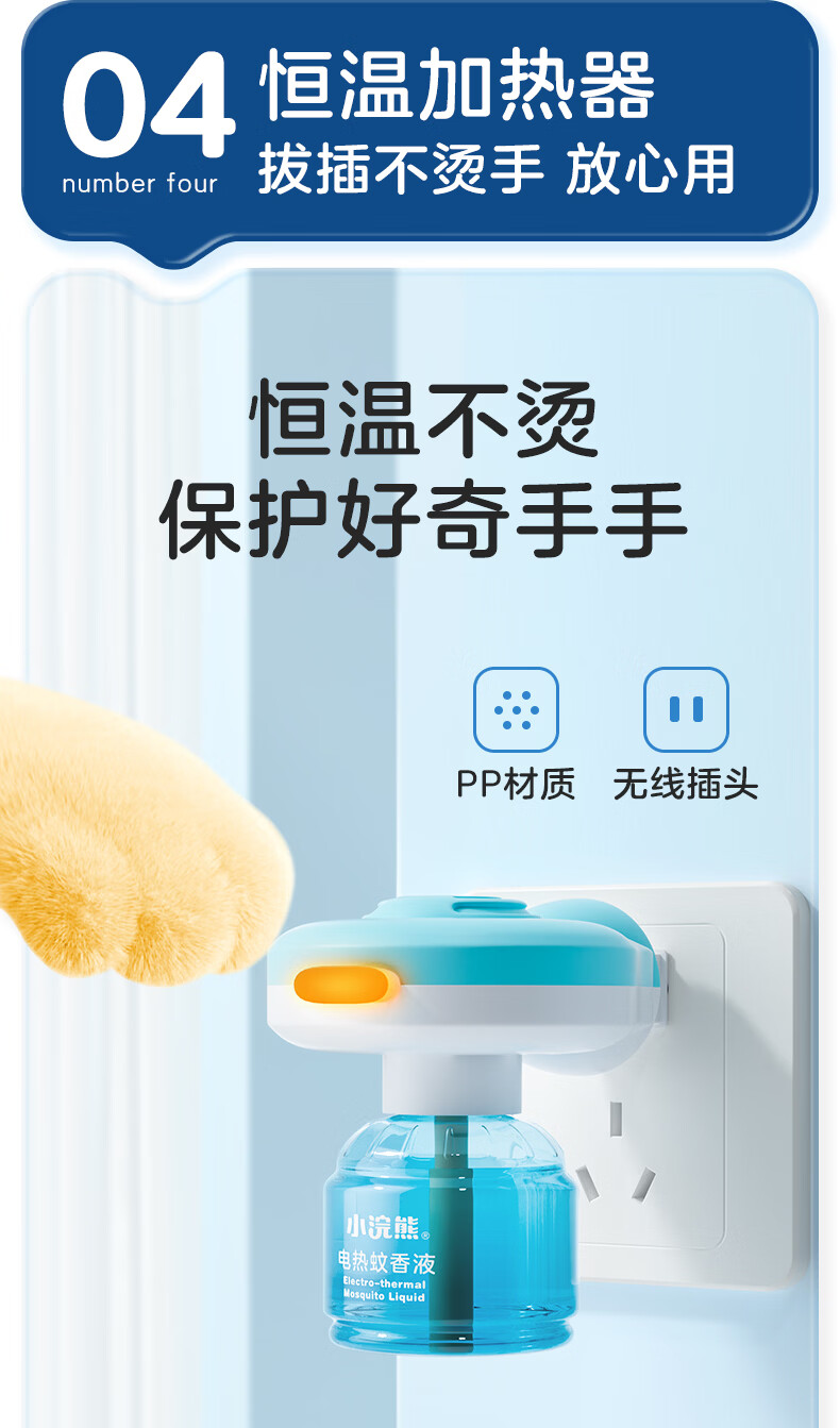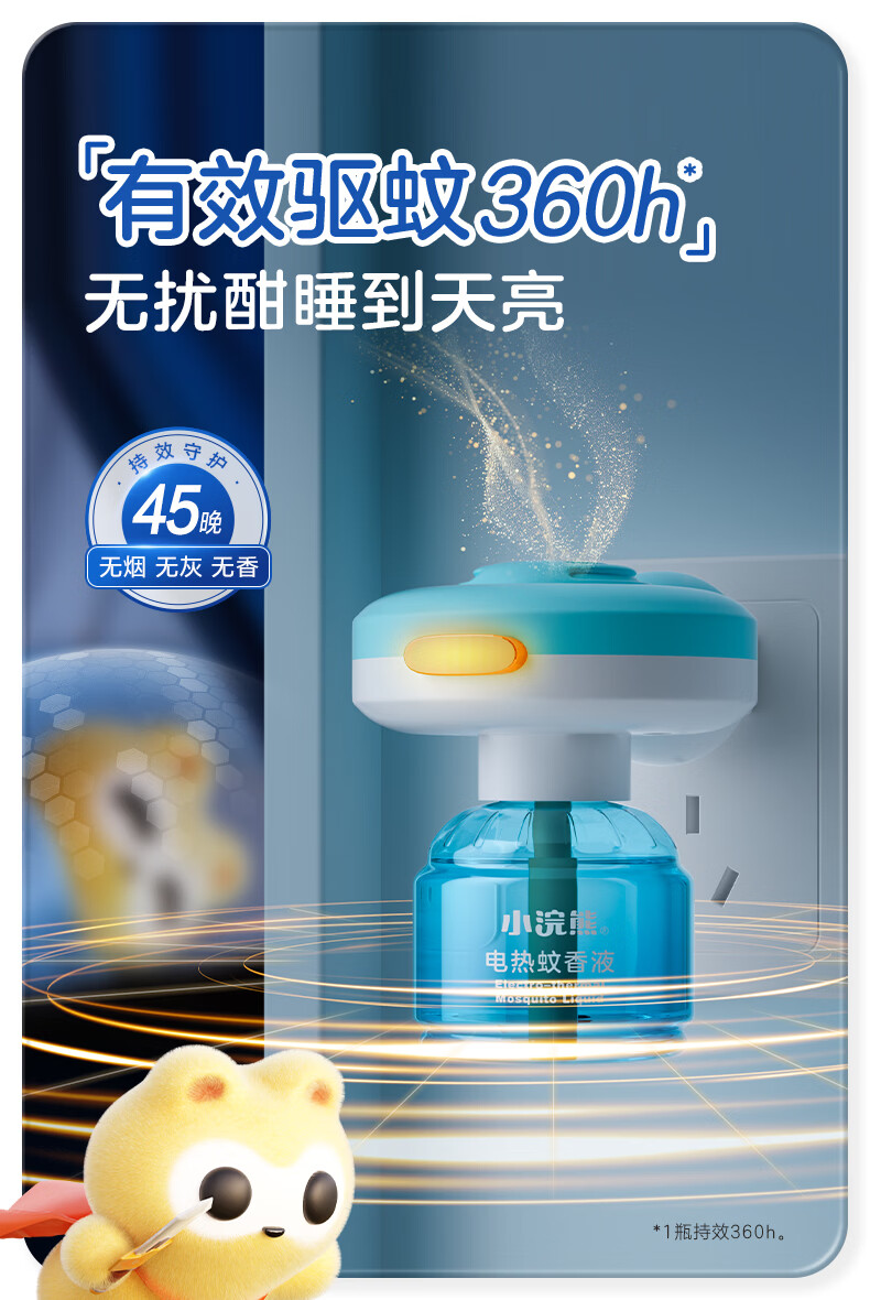 小浣熊电热蚊香液加热器套装无烟无香电蚊香驱蚊器补充装驱蚊液 【4液1器】有效驱蚊